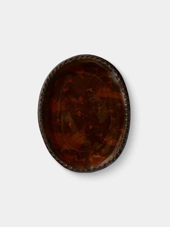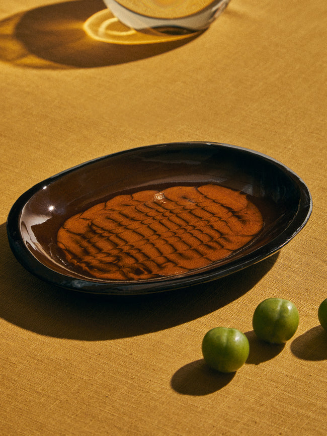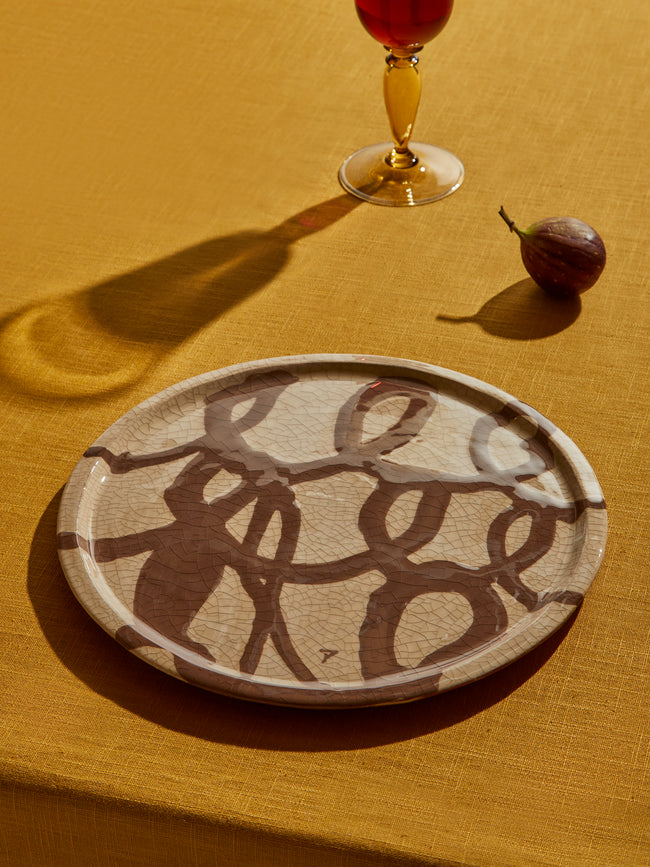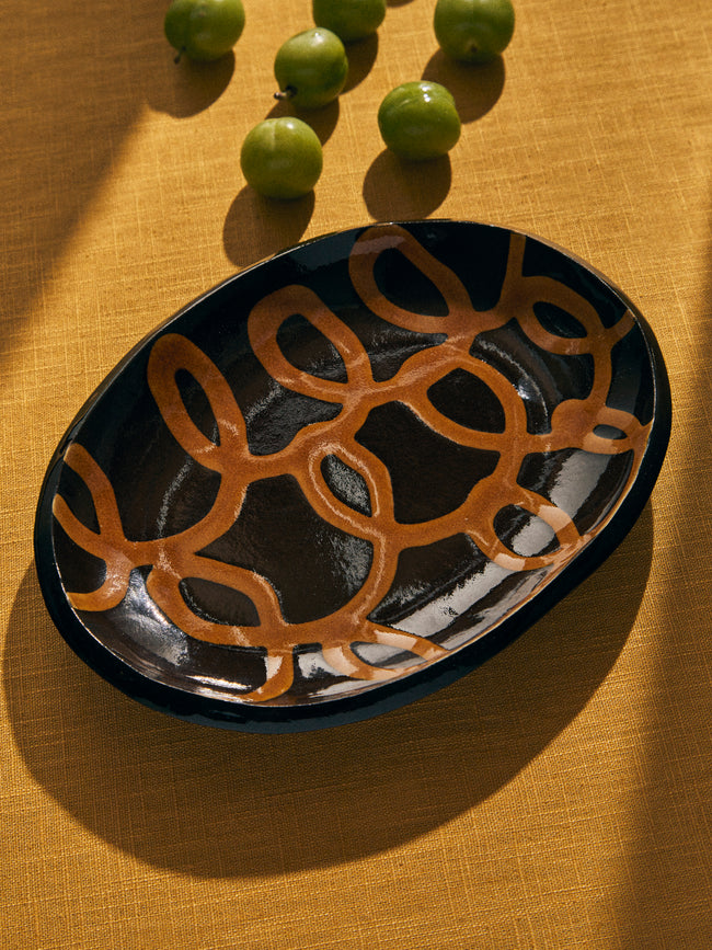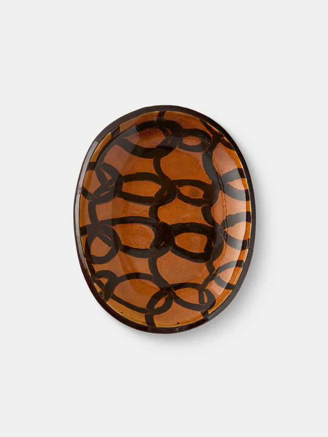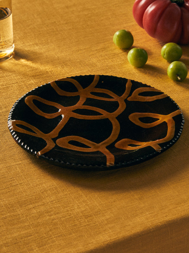 Originally from the Japanese island of Shikoku, Brighton-based ceramicist Hiroko Aono-Billson began working with clay over 30 years ago while studying at Morley College in London. Influenced by her mother’s collection of Japanese ceramics and the Mingei movement, which translates to ‘folk craft’, her work blends terracotta earthenware with the sgraffito technique, where hand-built forms are finished with decorative slips. Her signature motif, the Harmony Bird, has long woven through her creative life, appearing on everything from her daughter’s T-shirts to embroidered handbags—and now, on her distinctive slipware pottery.
