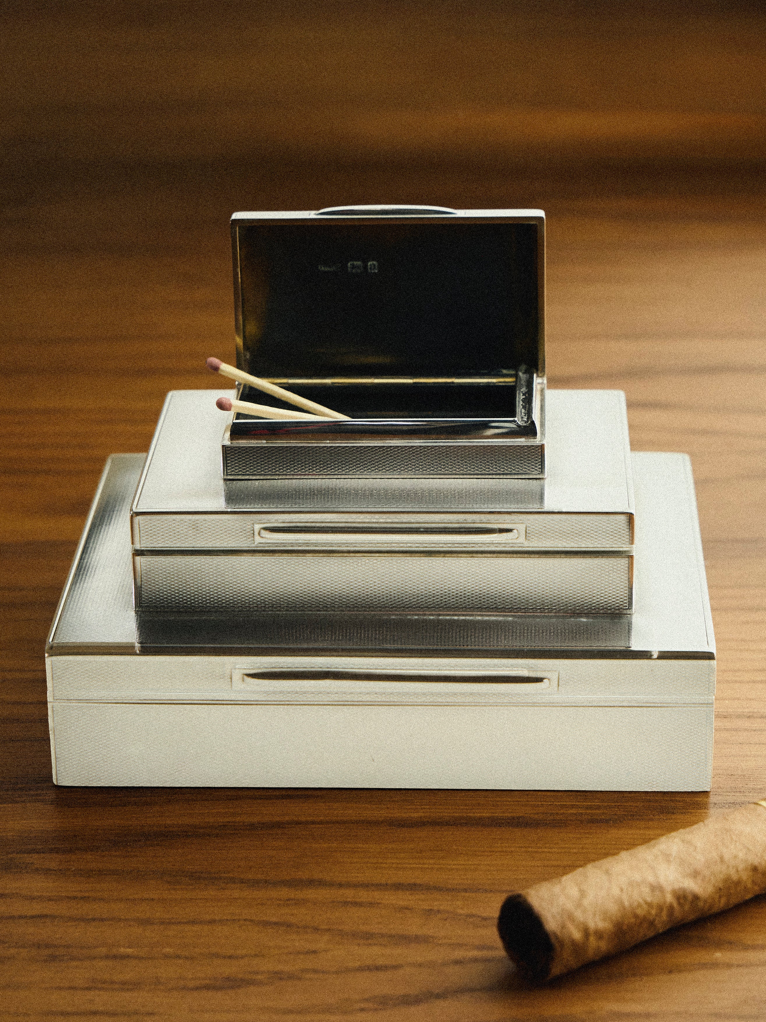 Antique and Vintage 1950s Three-Tier Sterling Silver Cigar and Cigarette Box