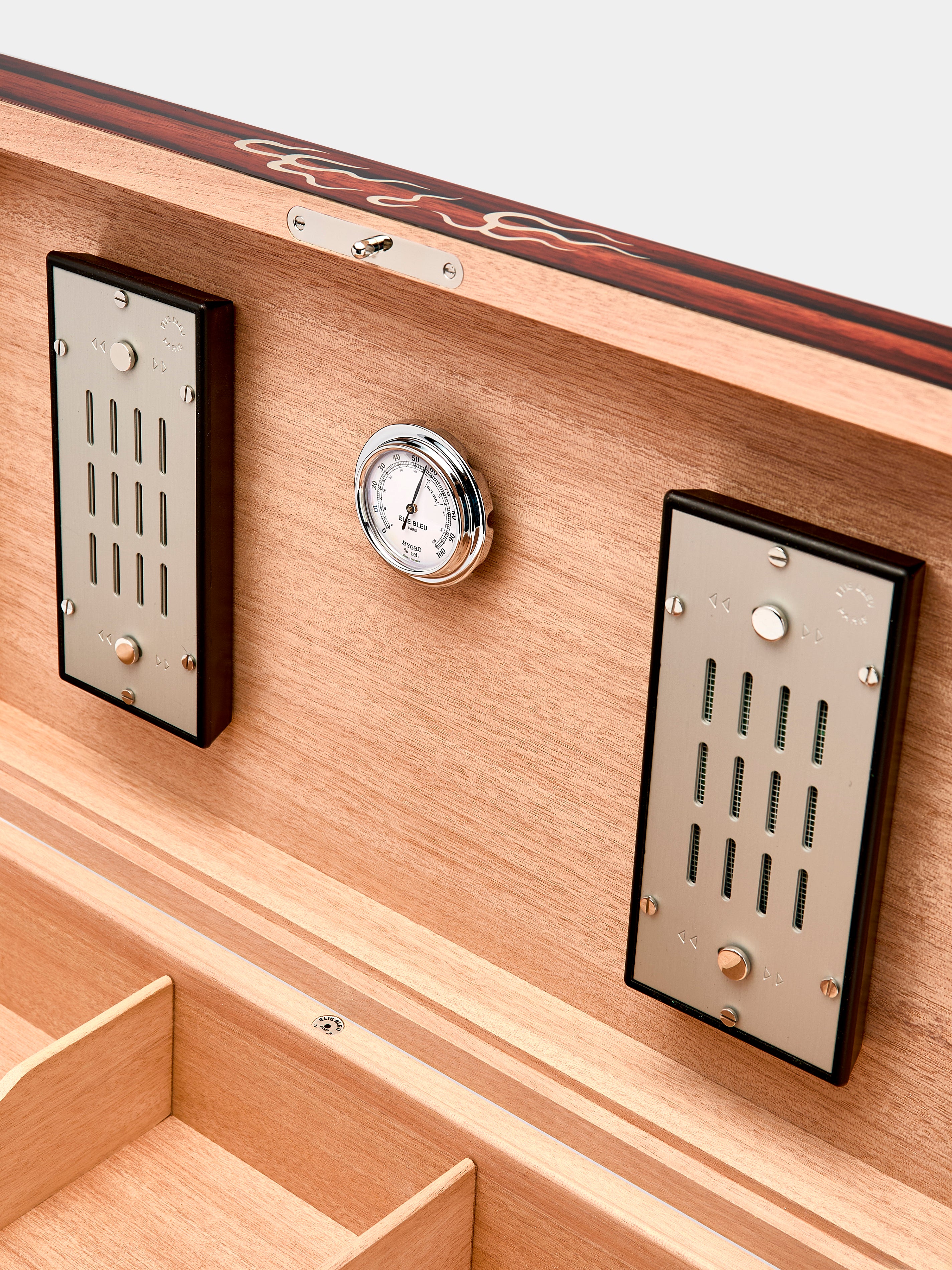 Elie Bleu is a household name for its humidors, but they aren’t the only field of expertise for this maker. No matter what its boxes are guarding – from jewellery and watches to poker and pens – they’re always handmade to exacting standards, taking four to six months to come to fruition. Every story starts with a mass cut of timber that’s sourced from across the globe, before expert craftspeople have their way with it in the workshop just outside of Paris; perhaps they’re lacquering it by hand, or maybe they’re piecing it together via Boulle marquetry. Whatever they’re rustling up, rest assured that the final result will be a product of expert savoir-faire, as has been the case since its founding in 1976.