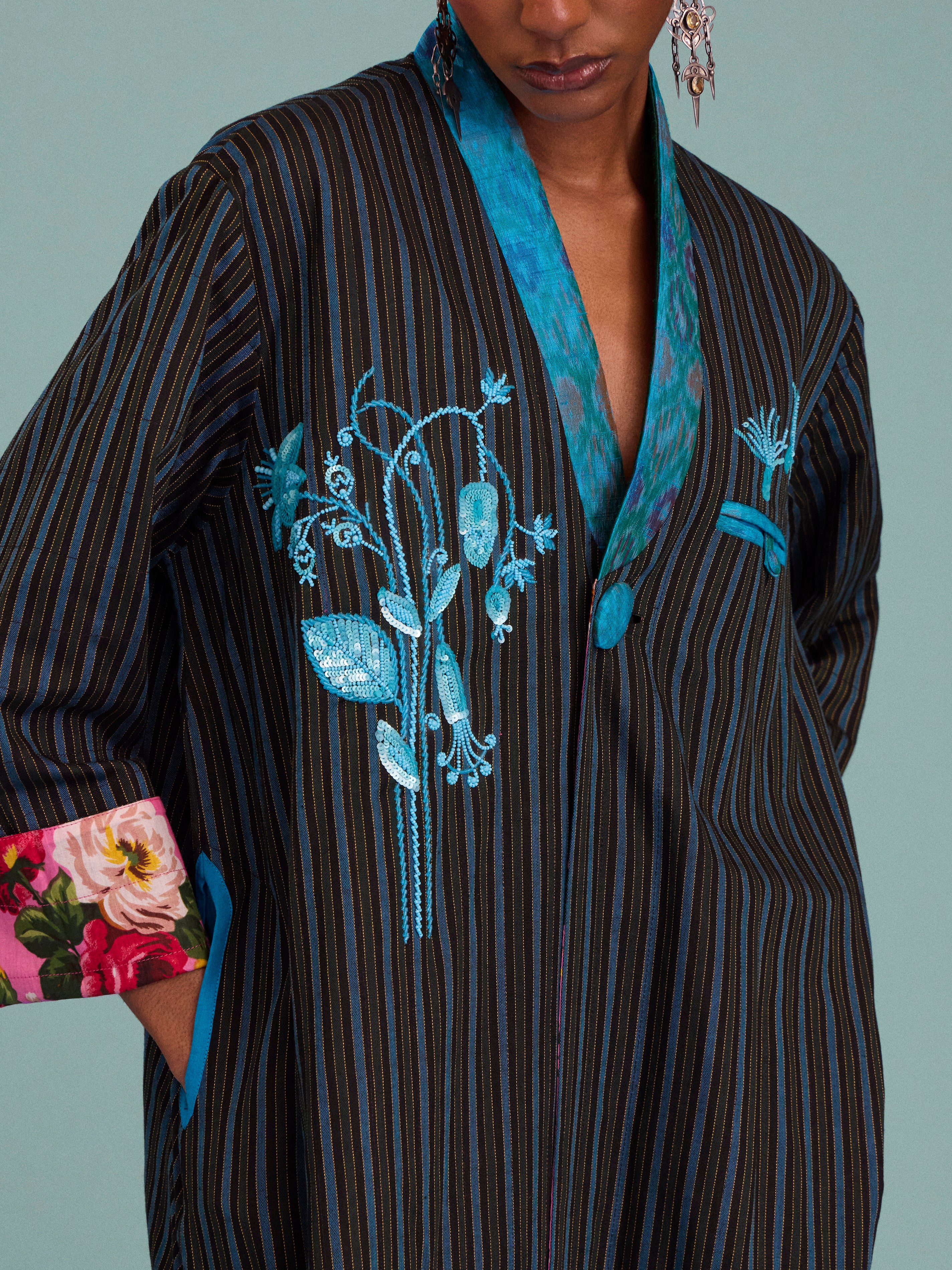 Nazzy Beglari Hand-Loomed Ikat Cotton Reversible Chapan-Style Robe | One Size
