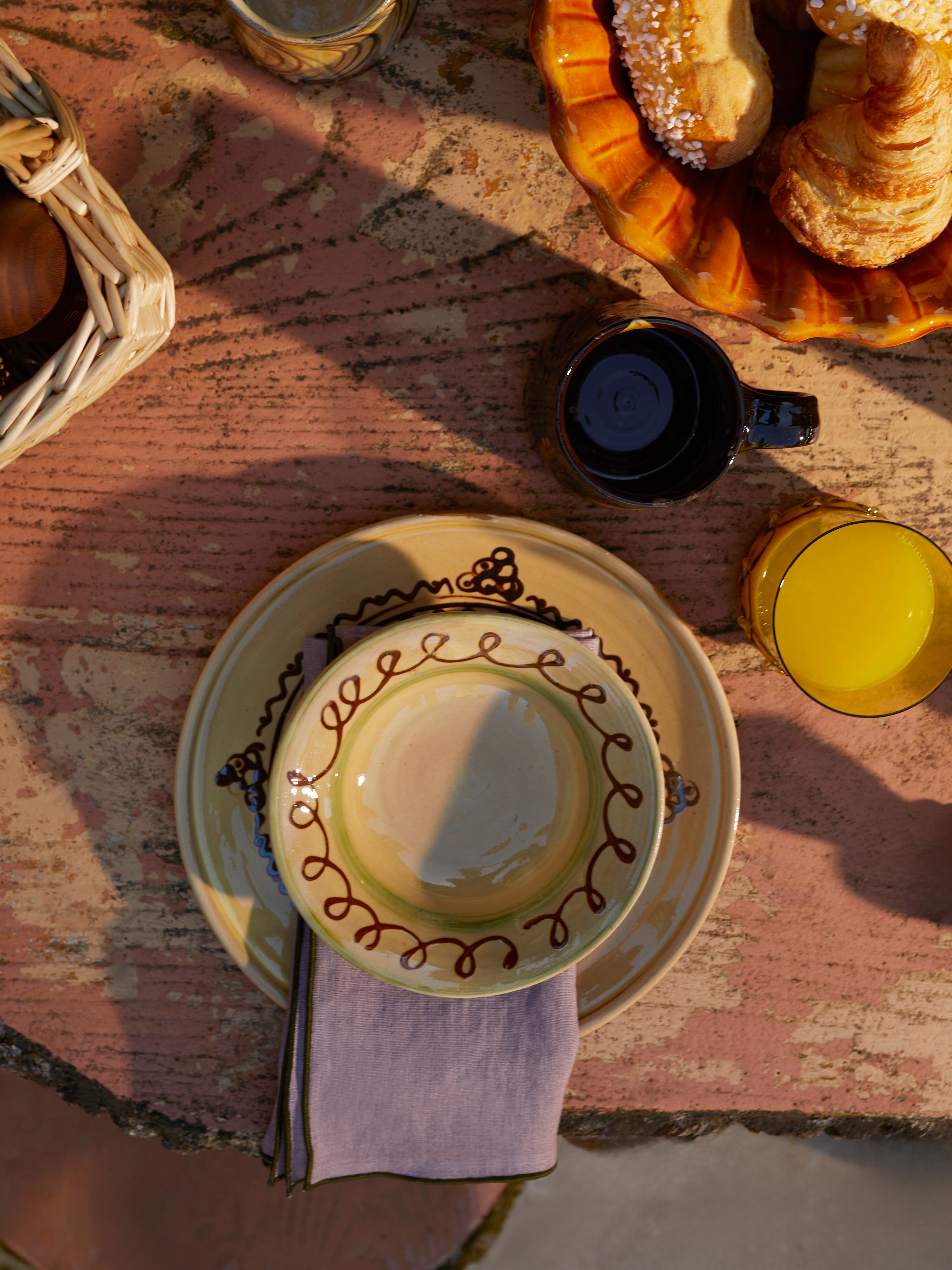 Poterie de Cliousclat was founded by Marius Anjaleras in 1903 when he gathered all the potters of the village – around 100, who were all working at home – in one atelier. He proposed the creation of a more modern building in which to create functional dairy pots. Cliousclat is known for its clay quality, which is extracted from a quarry a few hundred metres away – when villagers work in their garden, they often find shards of pottery in the ground. At its heart is the oven that dates back to 1903, which is 20m² with the capacity to fire up to 2,000 pieces at once. Poterie de Cliousclat’s signature five-colour palette of green, honey, straw, red and black offers an inspirational framework to those creating today's pottery.