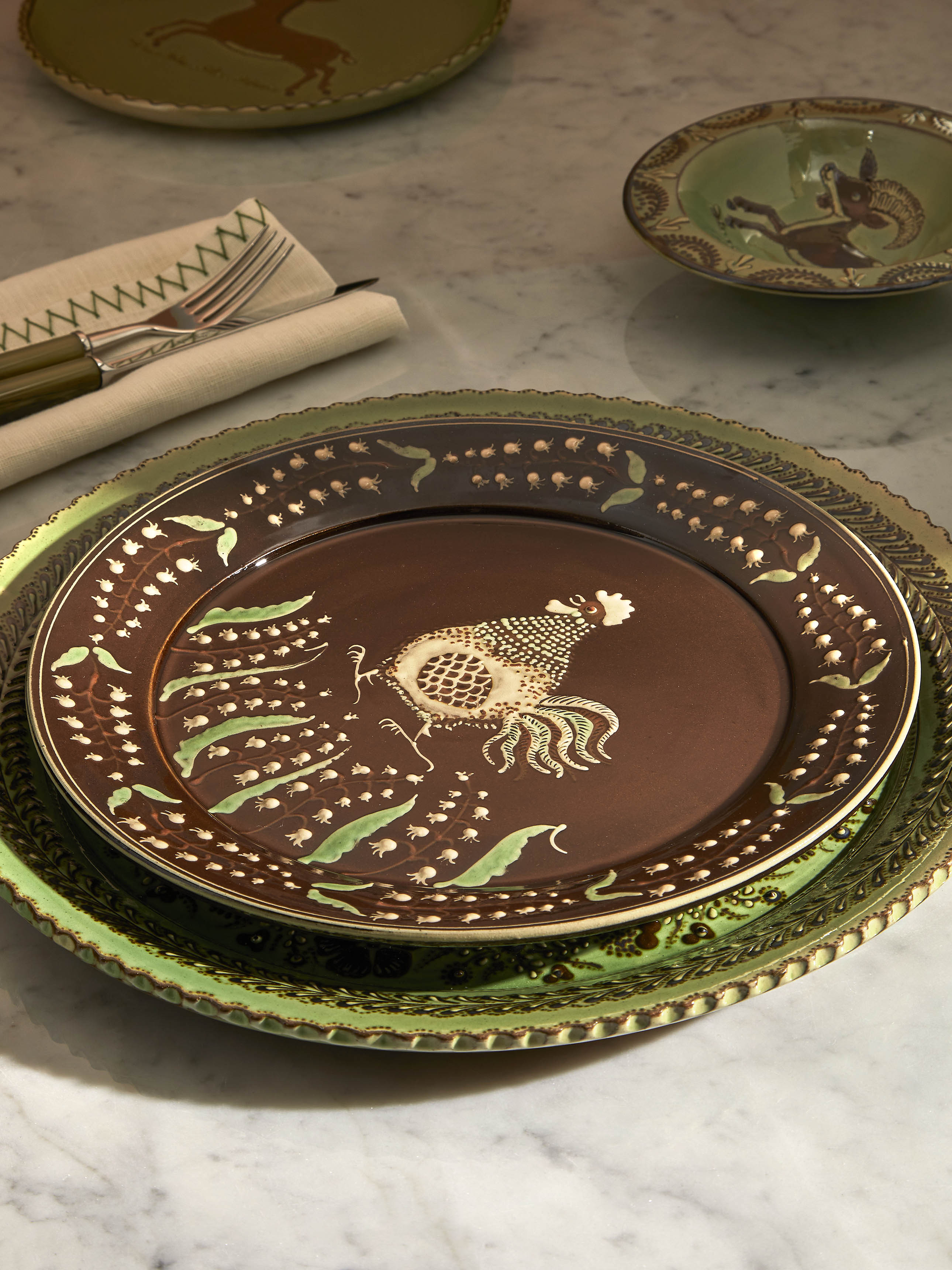 Poterie d’Évires Chickens Hand-Painted Ceramic Round Platter