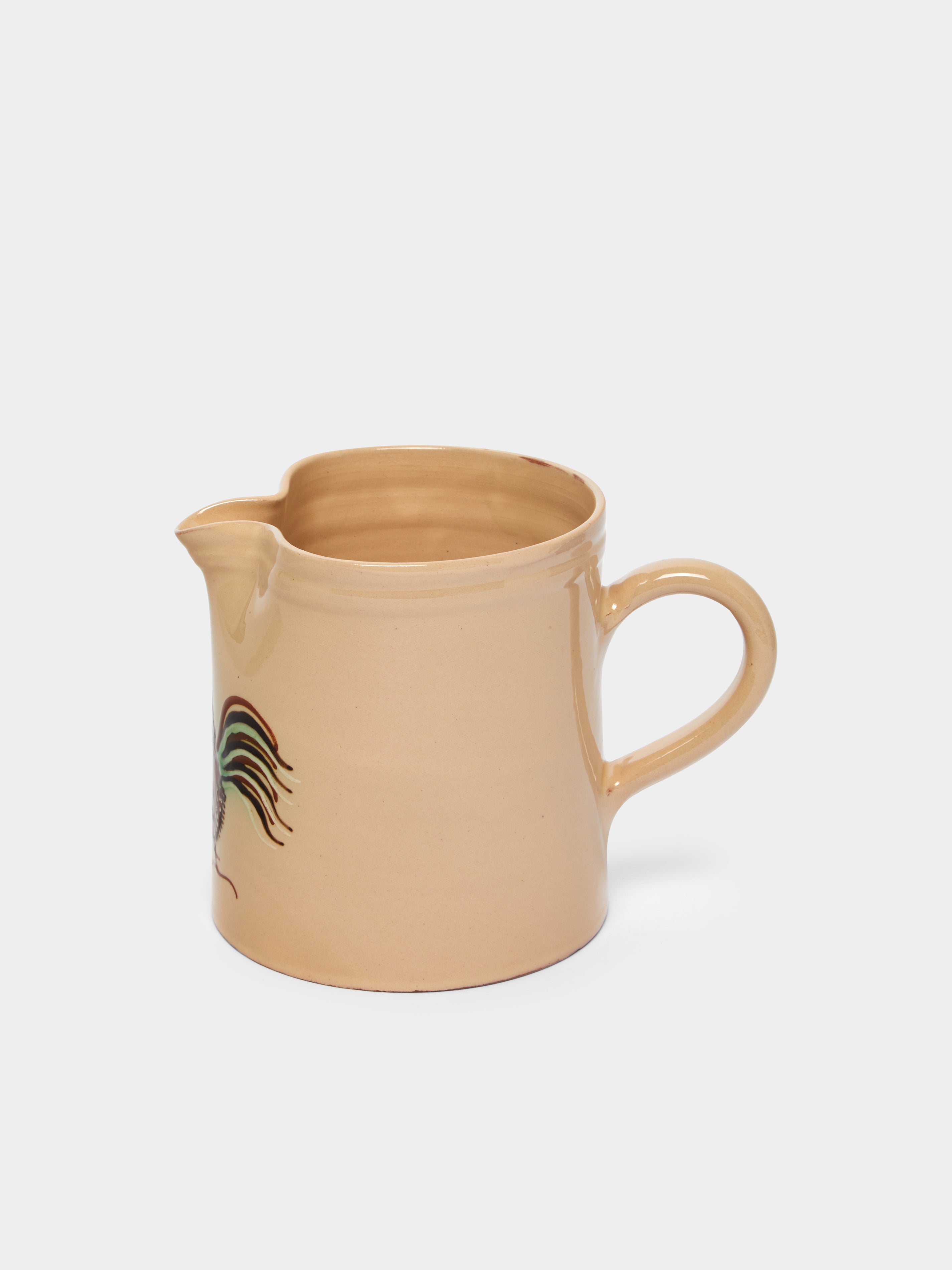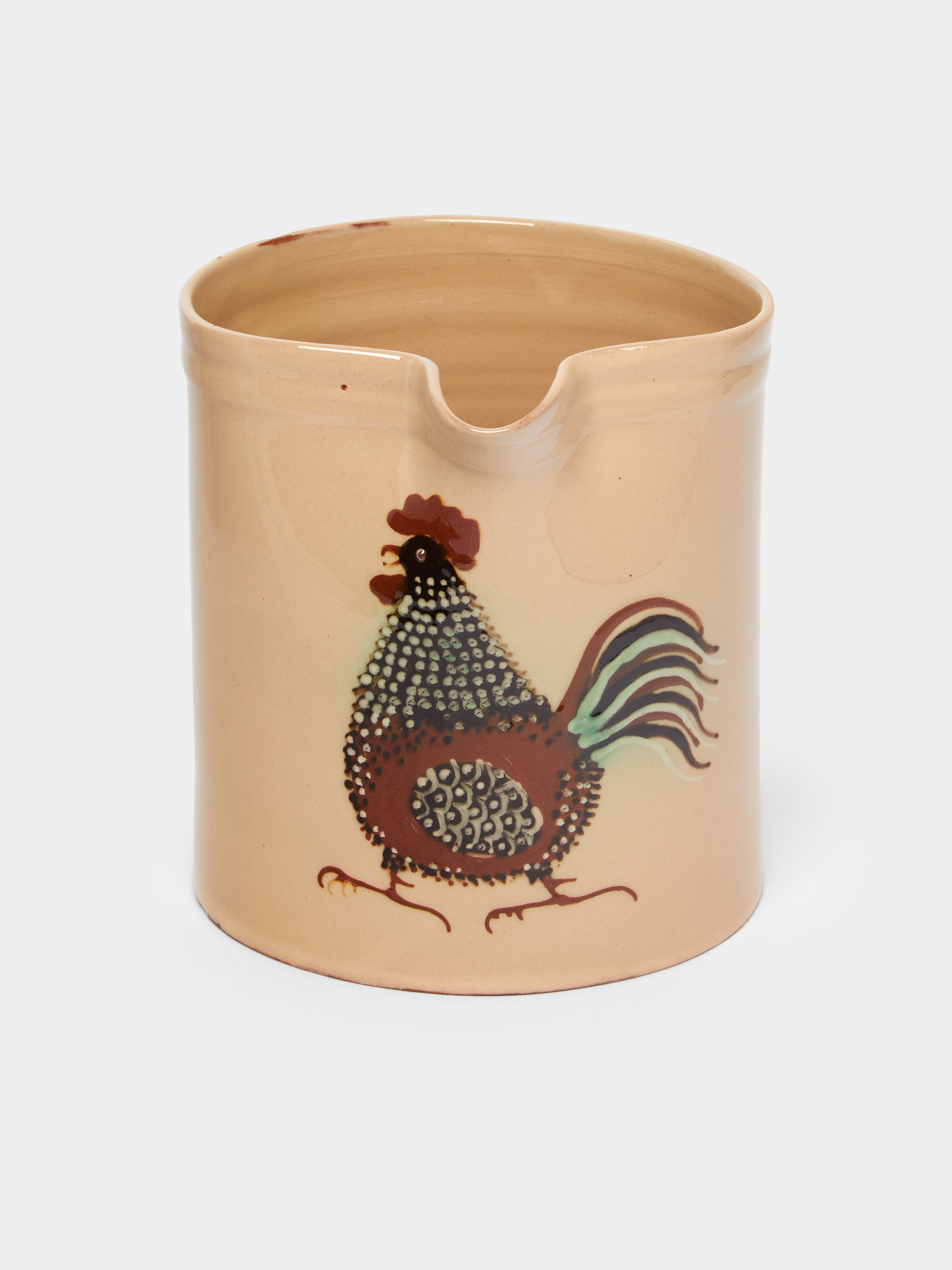 Poterie d’Évires Chickens Hand-Painted Ceramic Straight-Edge Jug
