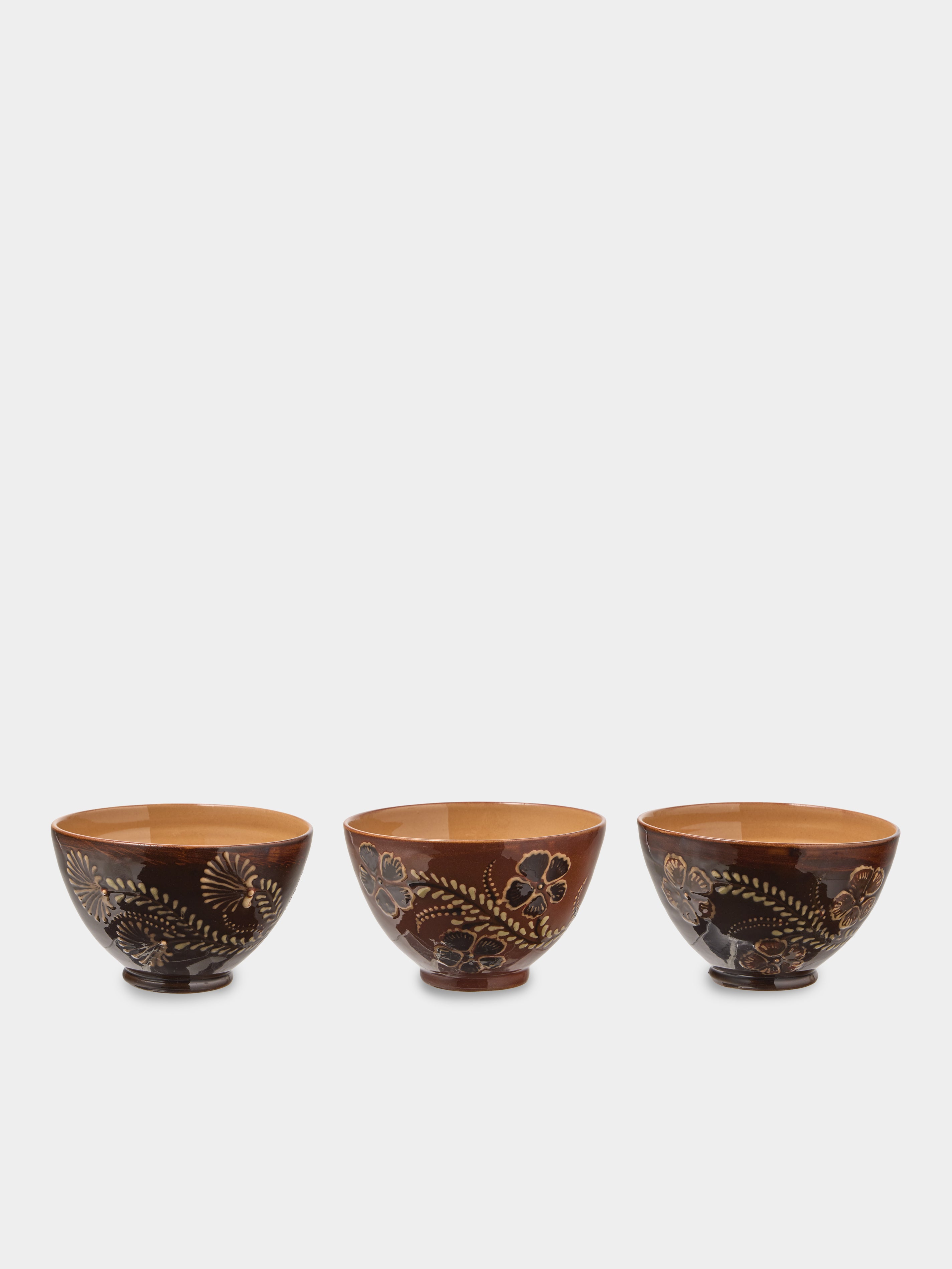Poterie d’Évires Flowers Hand-Painted Ceramic Bowls (Set of 3)