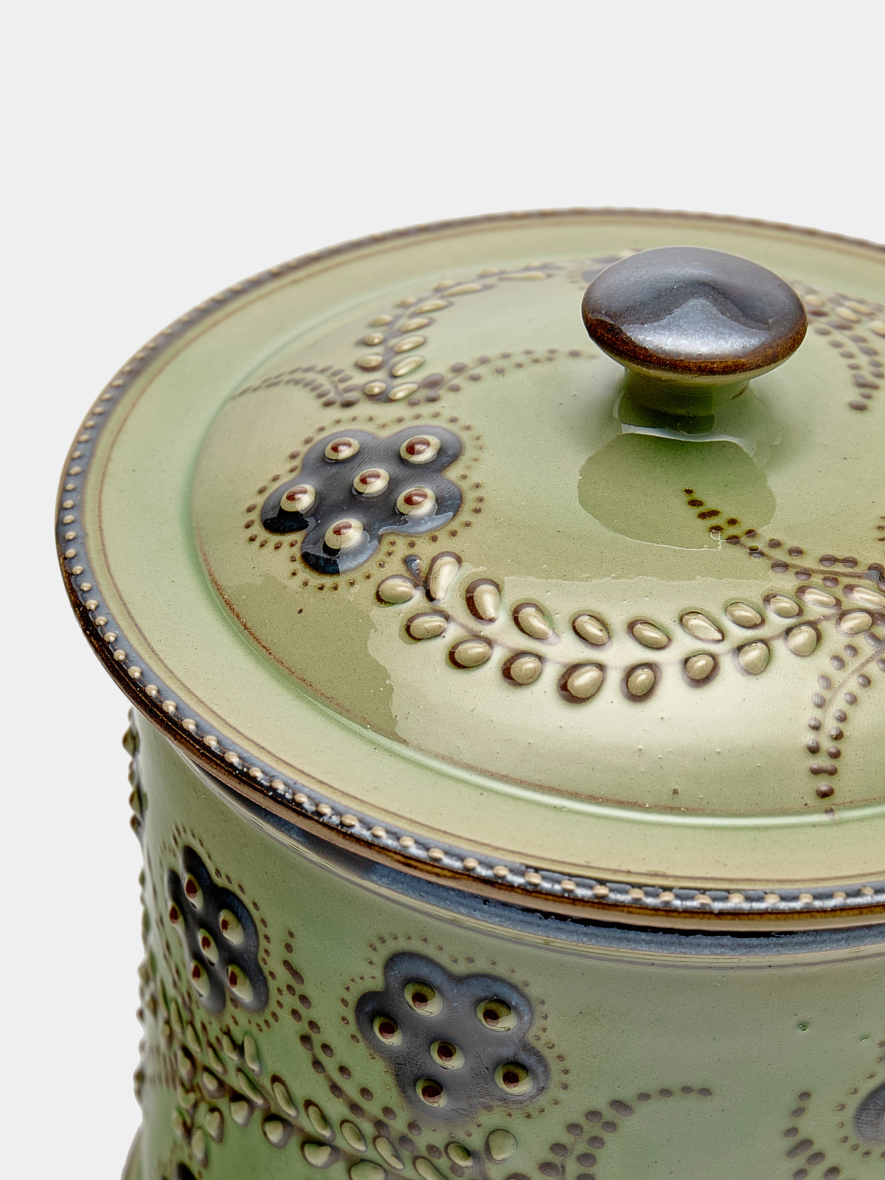 Poterie d’Évires Flowers Hand-Painted Ceramic Medium Lidded Pot