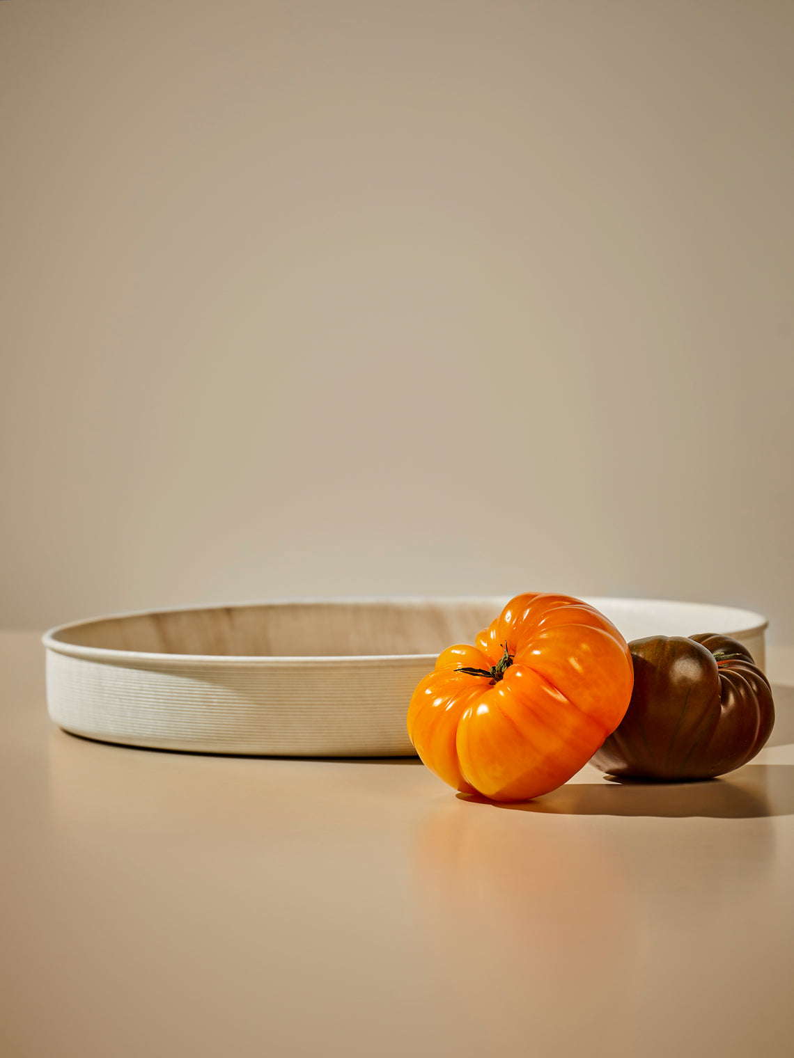 Abigail Castañeda Wood Rolled-Edge Round Tray (16in/41cm)