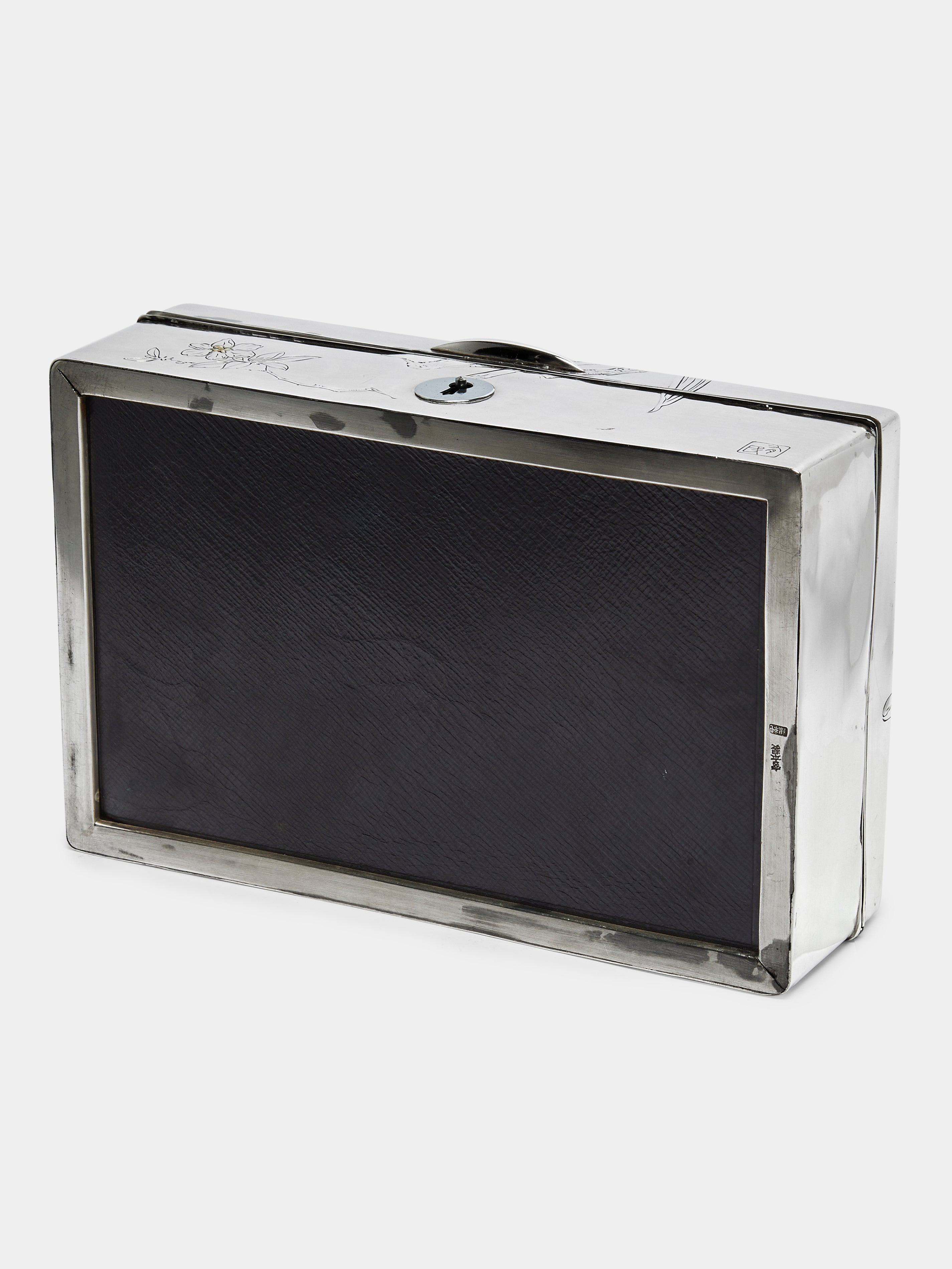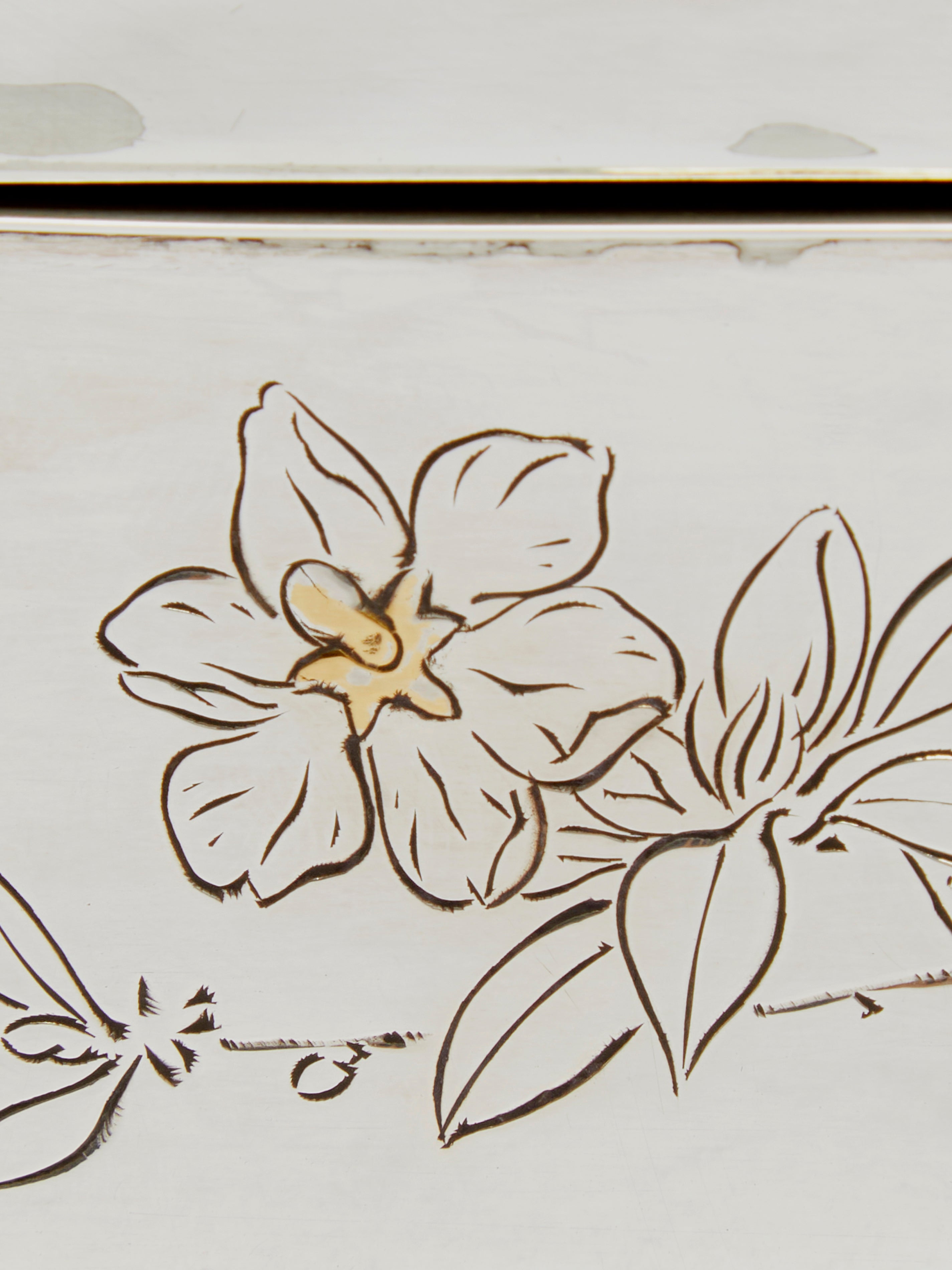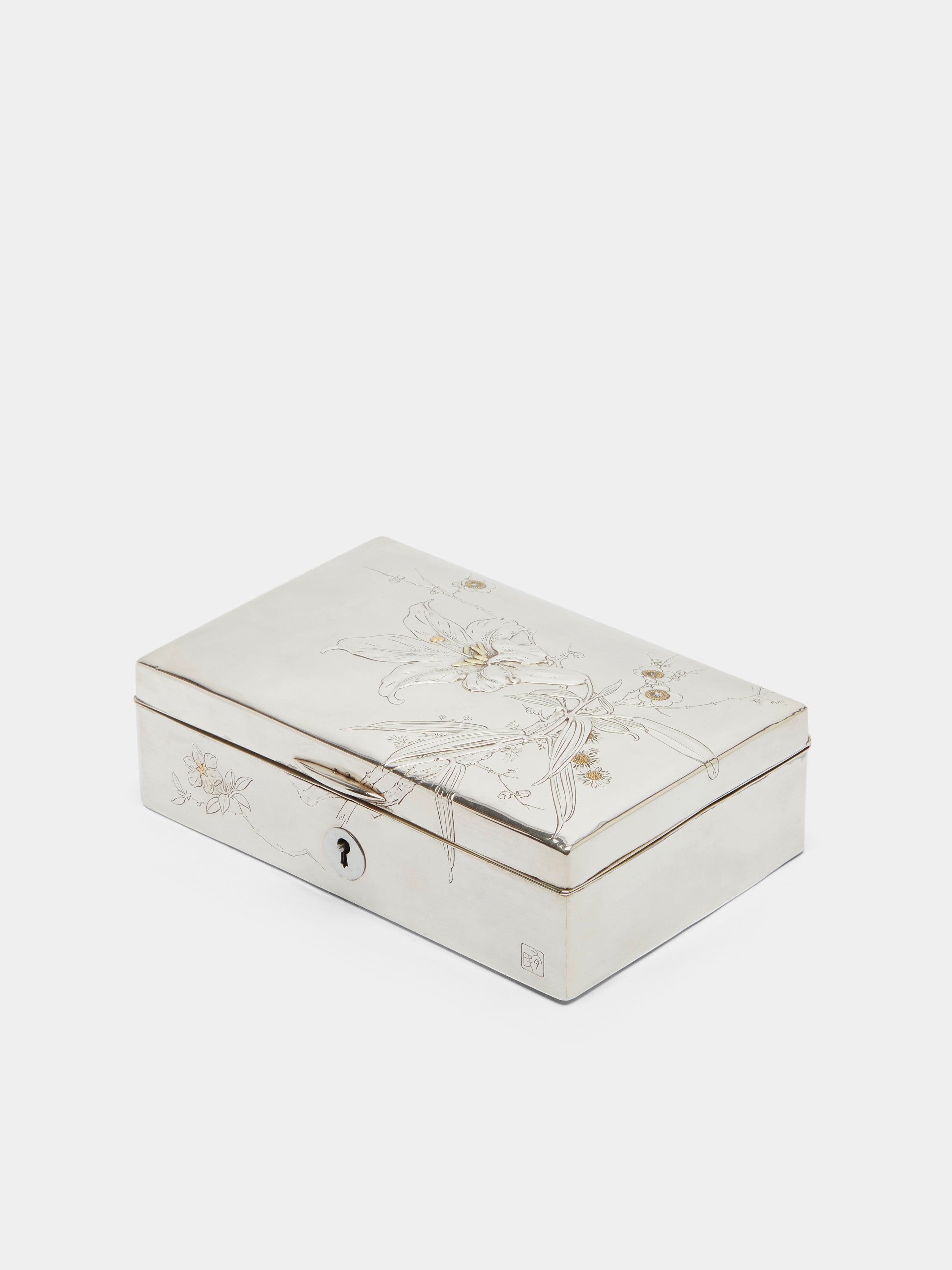 Antique and Vintage Mid-Century Japanese Sterling Silver and Gold Embossed Cigar Box