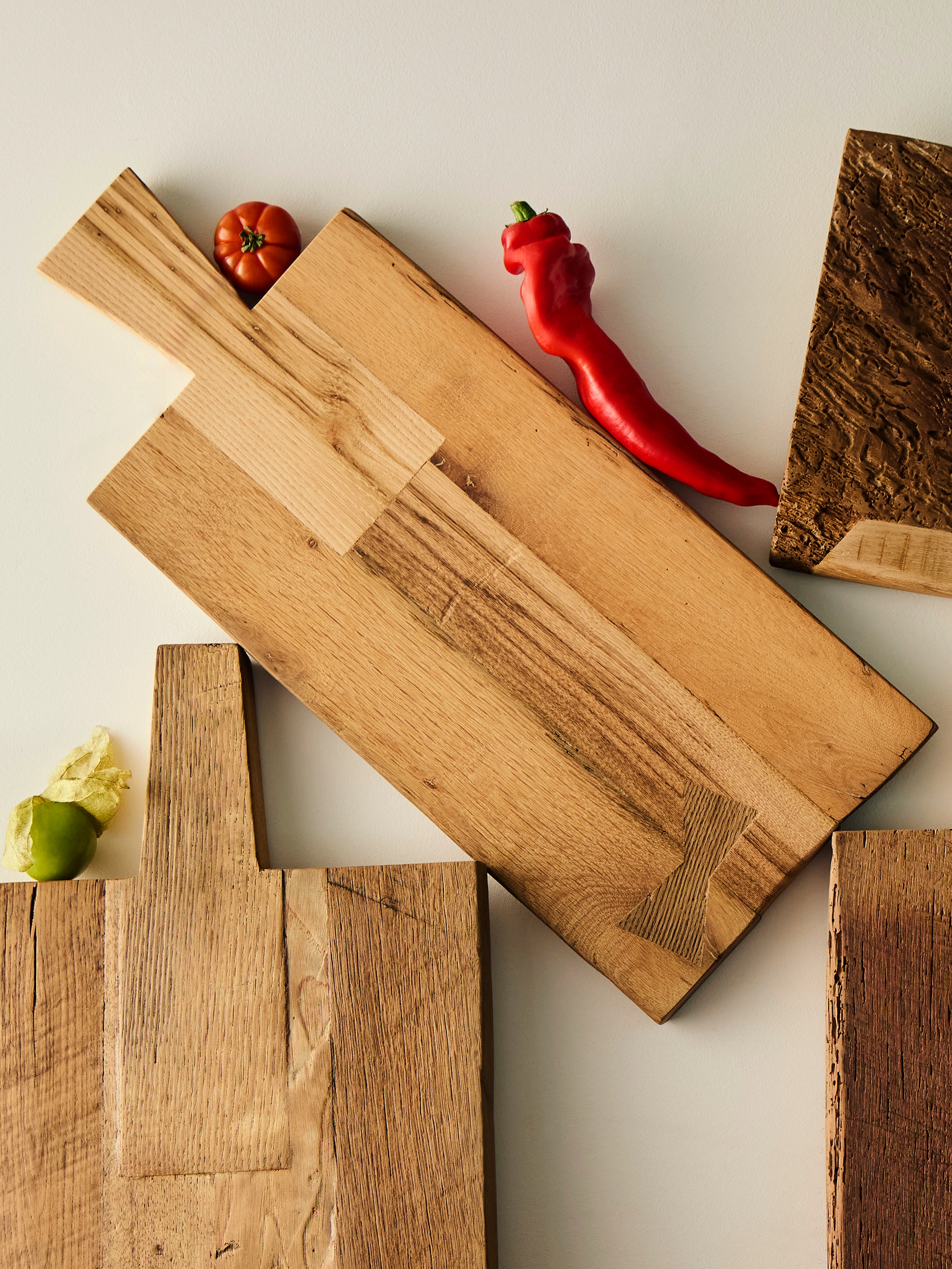 Art Brugi Hand-Carved Antique Oak and Chestnut Serving Board (22in/56cm)