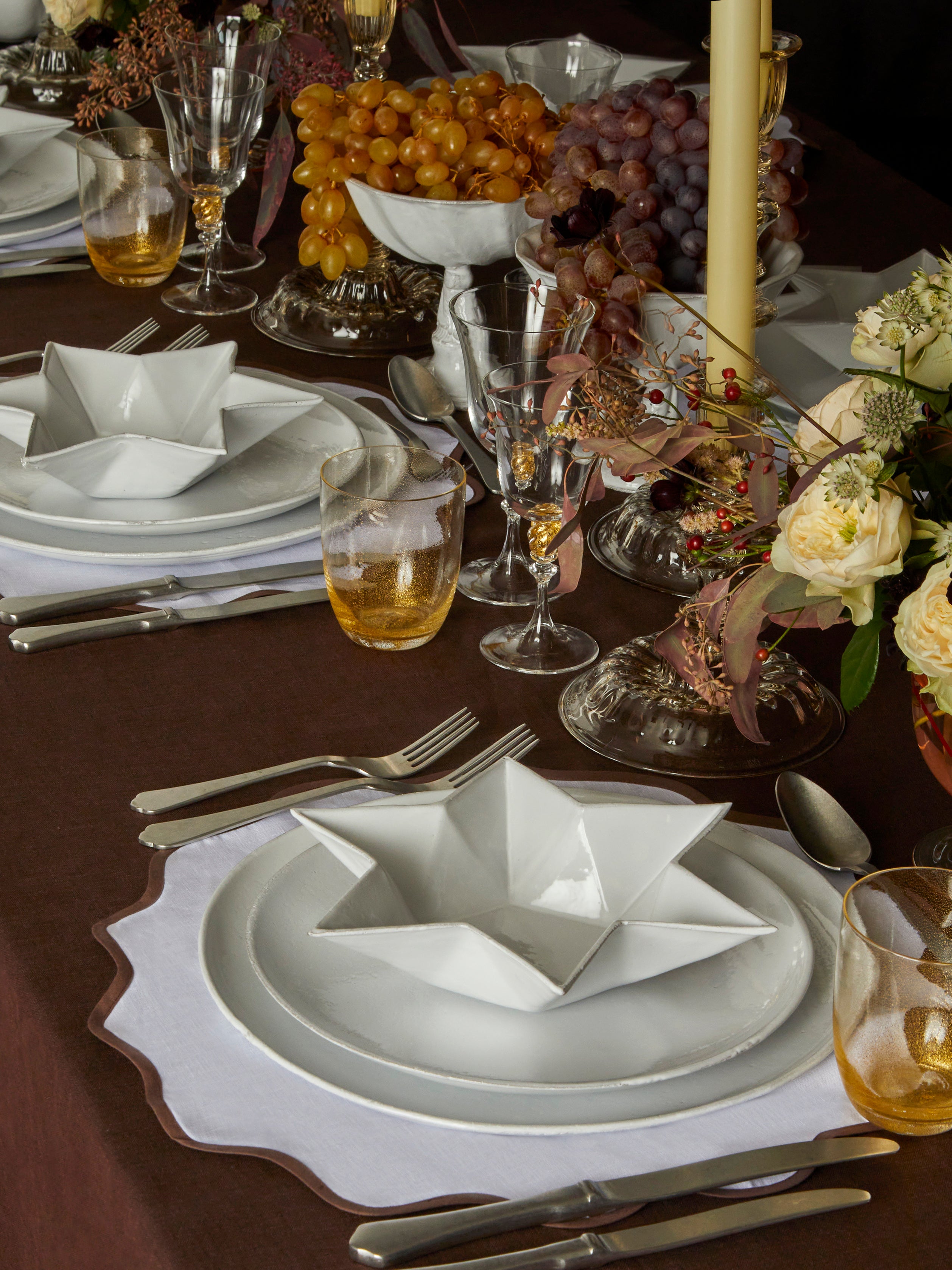 Old friends Ivan Pericoli and Benoît Astier de Villatte met at the prestigious École des Beaux-Arts in Paris, leading to the launch of Astier de Villatte in 1996. Since the beginning, they’ve been charmed with ideas of the imperfect, finding beauty in uneven glazes, dark pockmarks, and subtle ripples. But these details only emphasize the craft tale behind each piece—stories that start with a single sheet of black terracotta clay extracted from Parisian quarries. They follow traditional Roman methods to bring each "dream object" to life, shaping and inscribing each one with the potter’s initials and finishing with a high-shine white porcelain glaze.