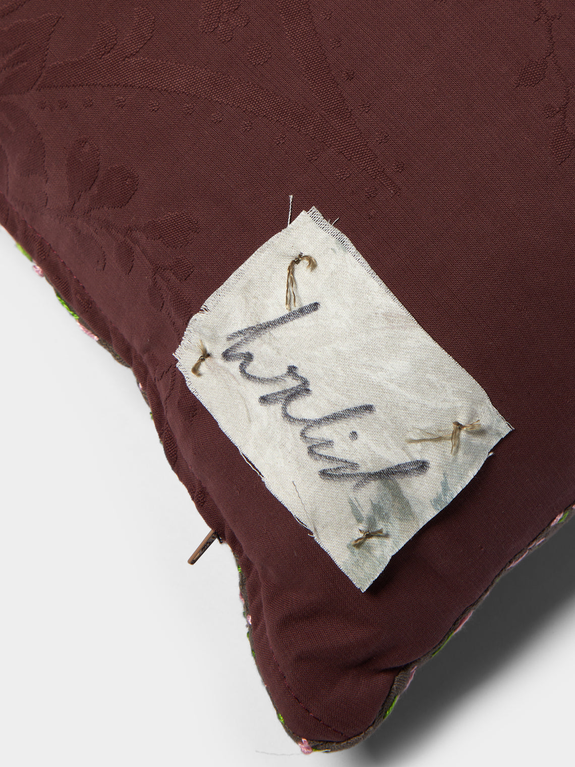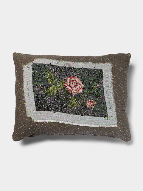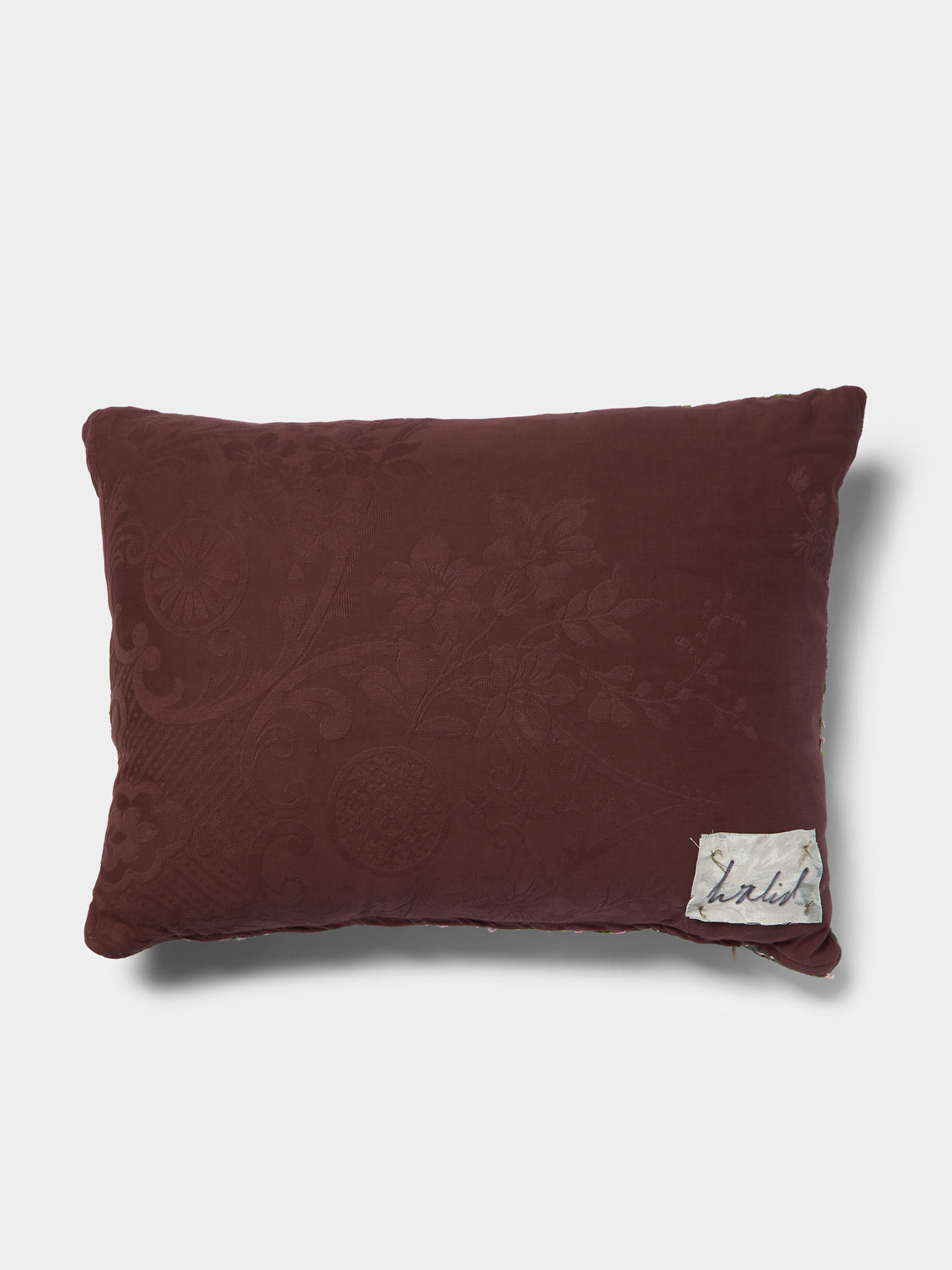 By Walid 1920s Needlepoint Damask Linen Cushion (21.5in/55cm)
