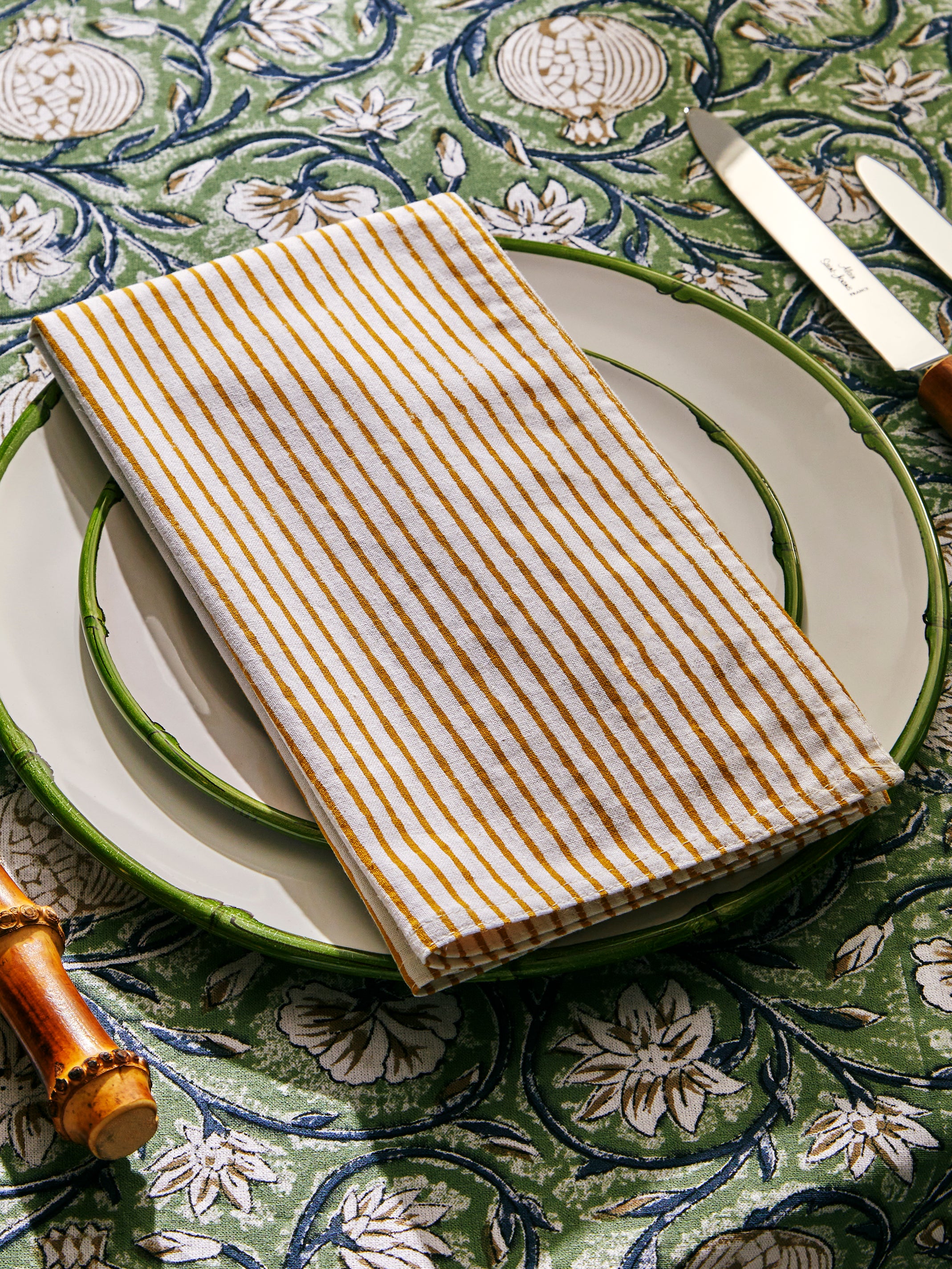 Chamois Stripe Block-Printed Cotton Napkins (Set of 8)