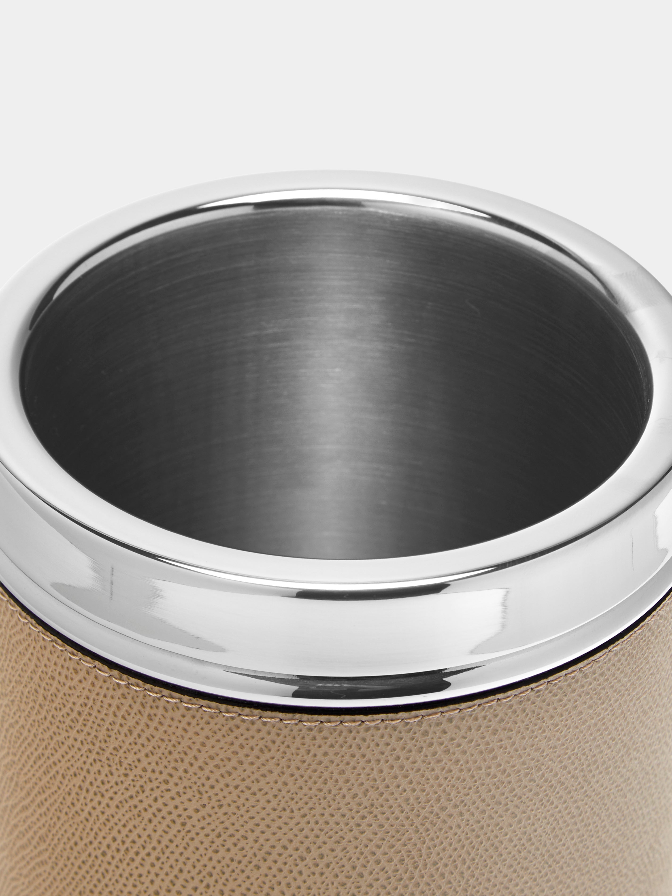 Ocean Leather and Steel Ice Bucket25.5cm (h) x 25cm (d) / 10.0" (h) x 9.8" (d)