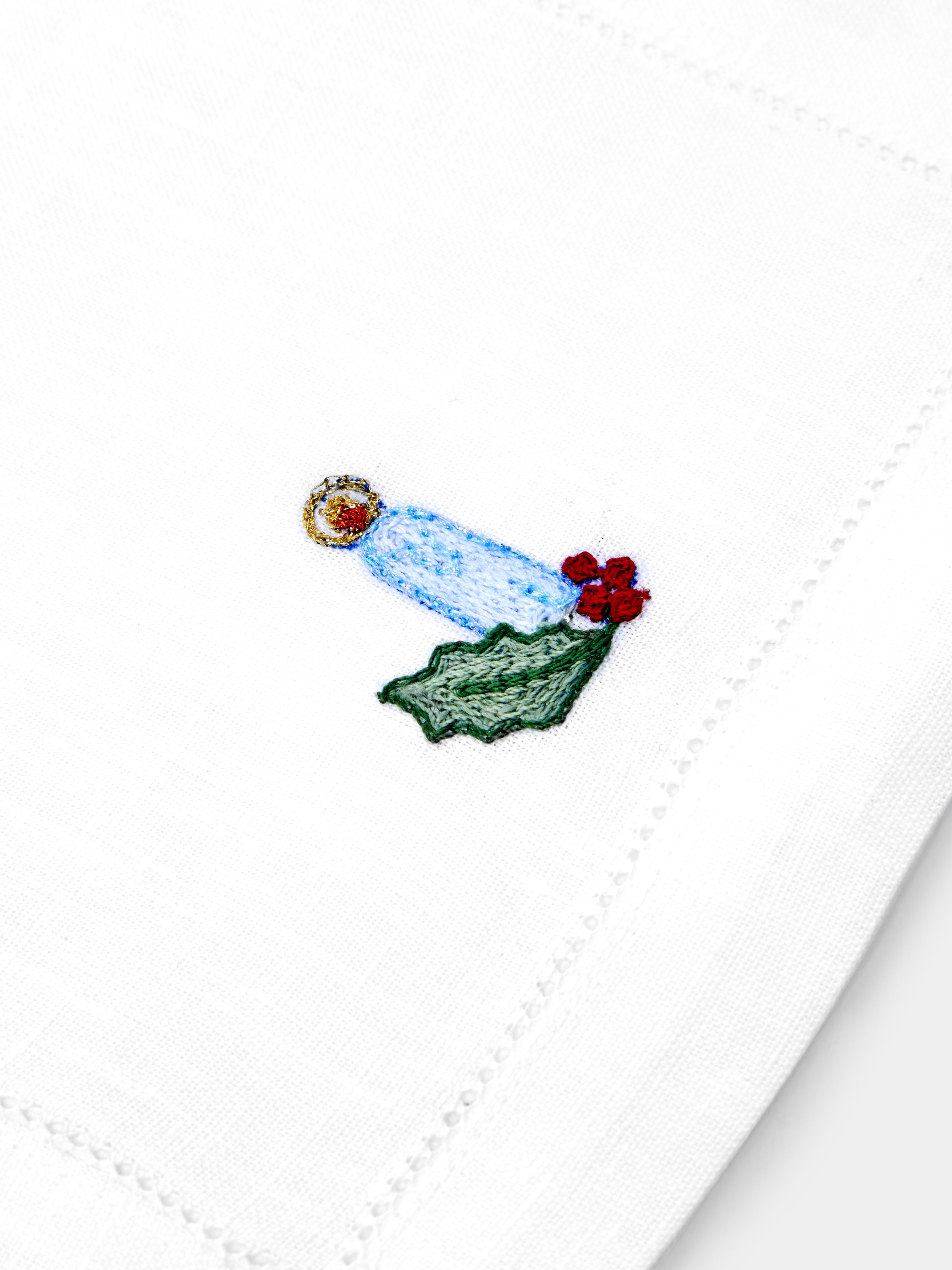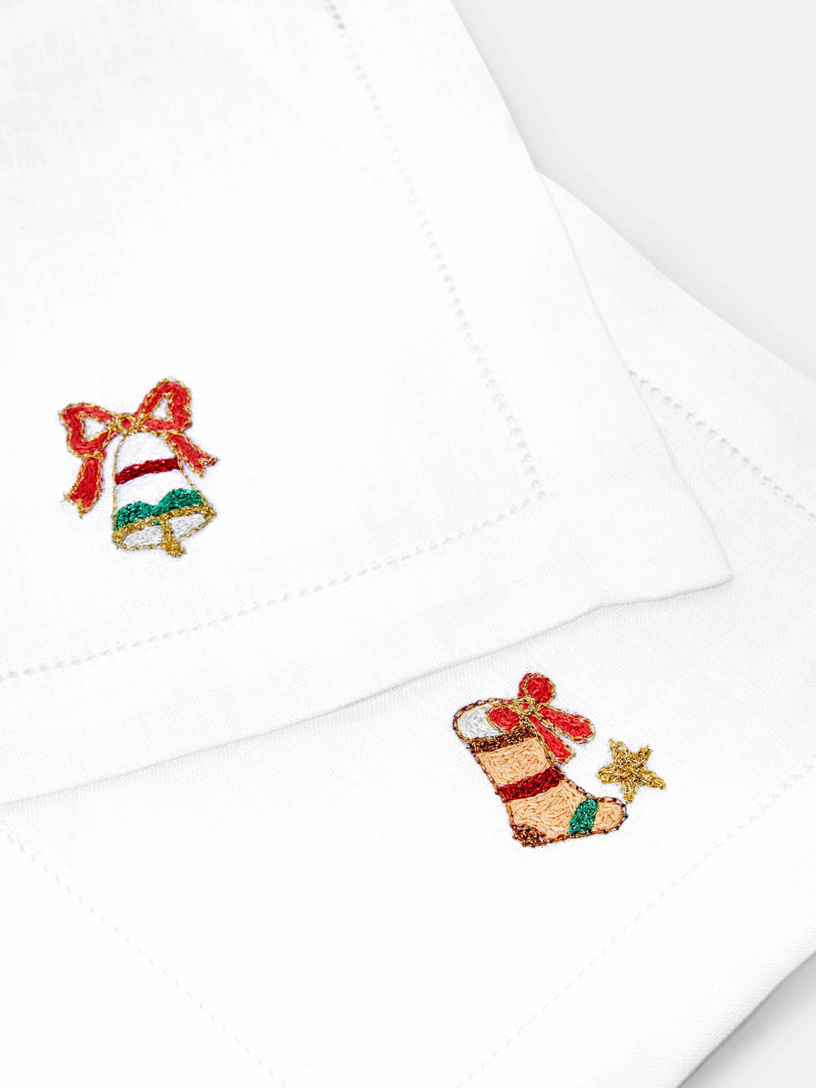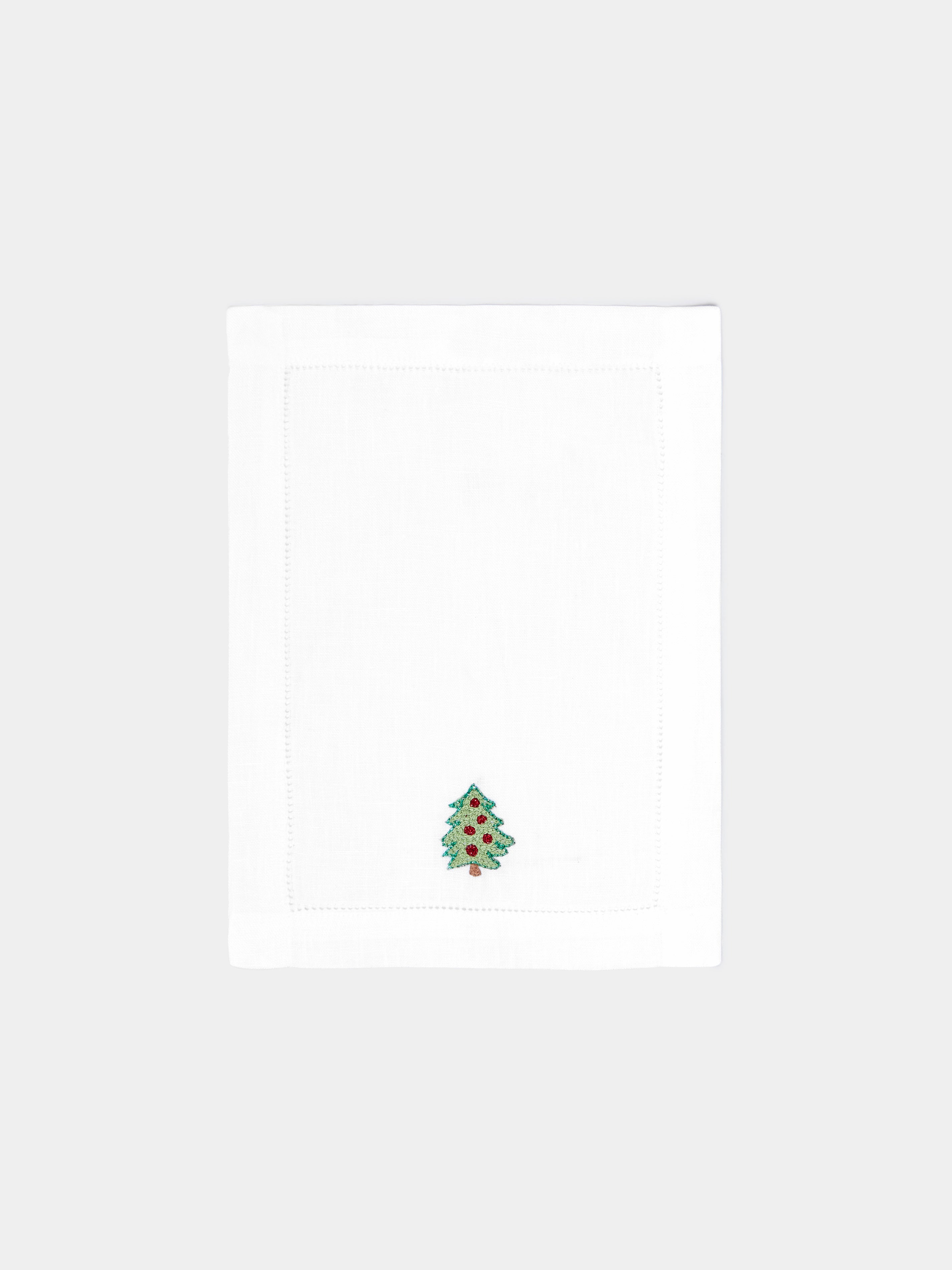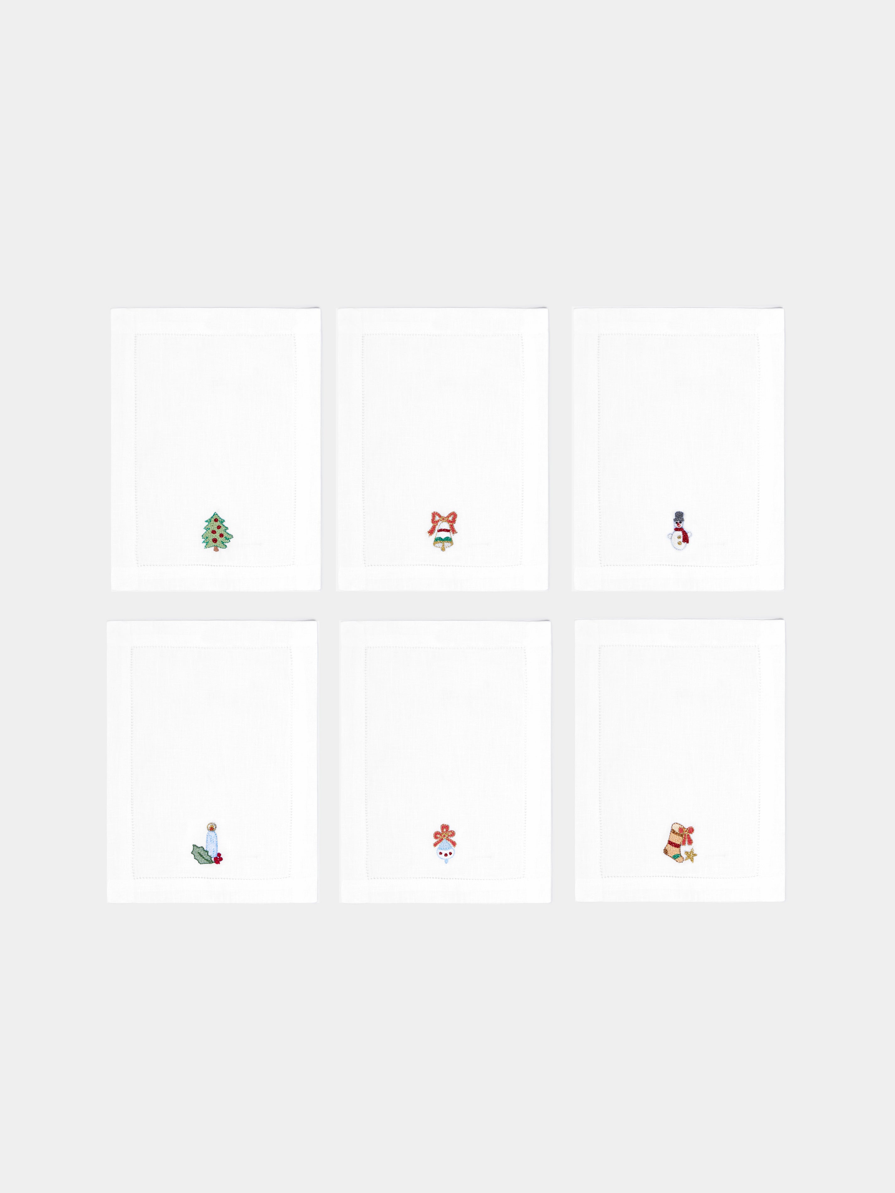 Loretta Caponi Christmas Hand-Embroidered Linen Cocktail Napkins (Set of 6)