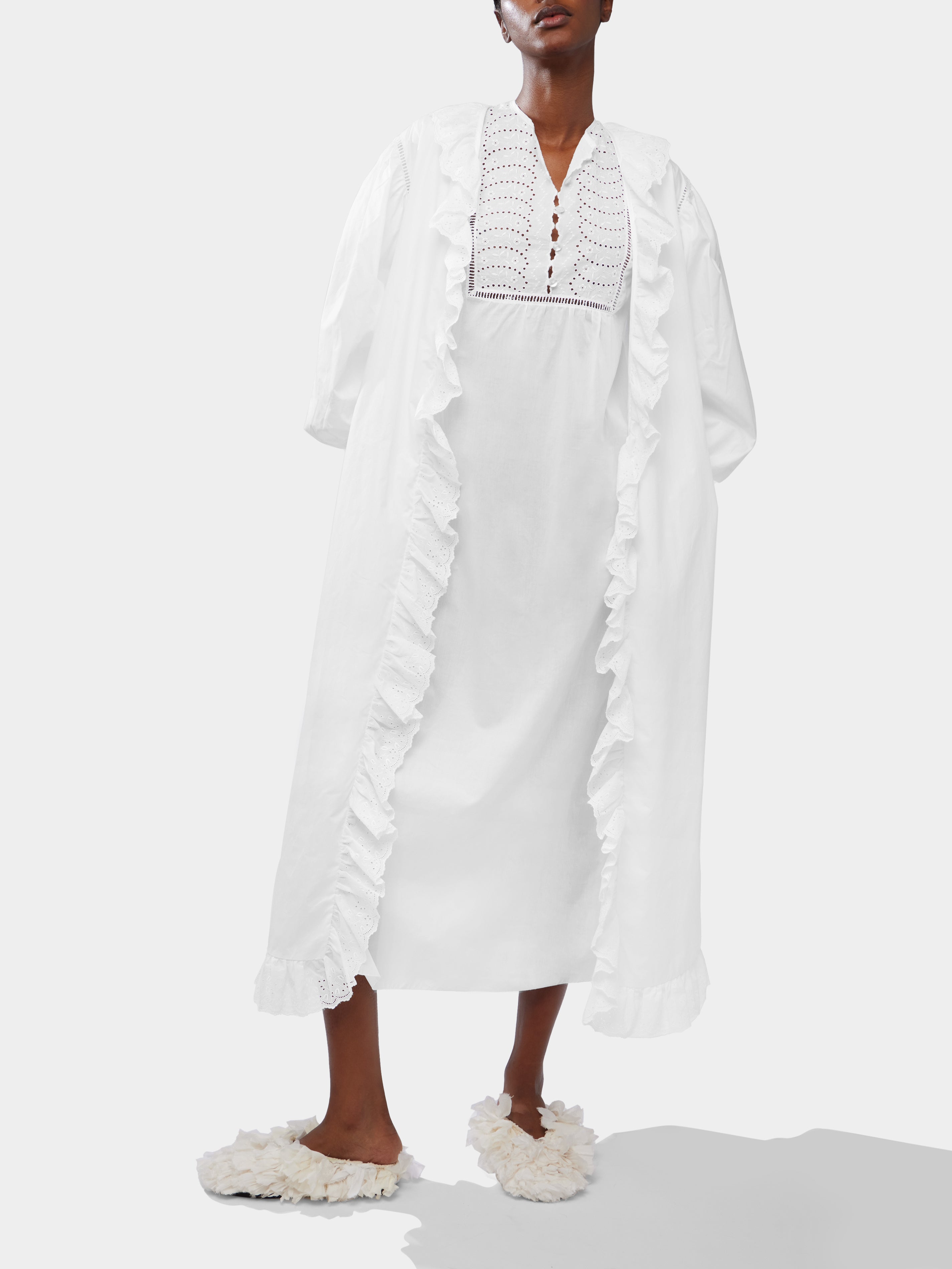 Loretta Caponi’s introduction of nightwear in the late 1960s signalled a welcome departure from the synthetic materials that dominated the period, as hers were realised in the highest quality cottons, linens and silks. Since, the Florentine atelier has continued to honour this reputation for the finest make, host to a vast fabric assortment and an ever-growing embroidery archive of 20,000+ designs – some of which date back to the 1800s. Today, her daughter and grandson – Lucia and Guido – keep this historic and highly skilled needlework alive by working with a network of artisans all within 90km of central Florence. Not only does this provide job opportunities to an ageing population, but also encourages them to tutor new seamstresses and enjoy a slower rhythm of production.