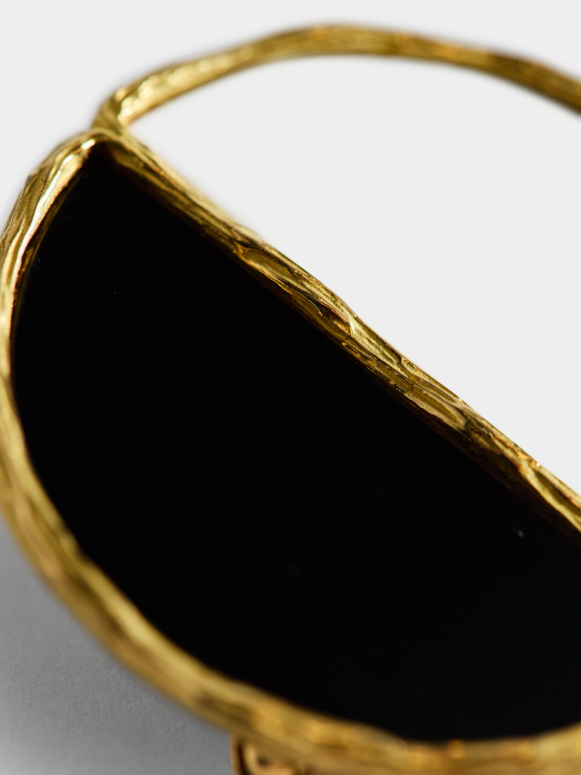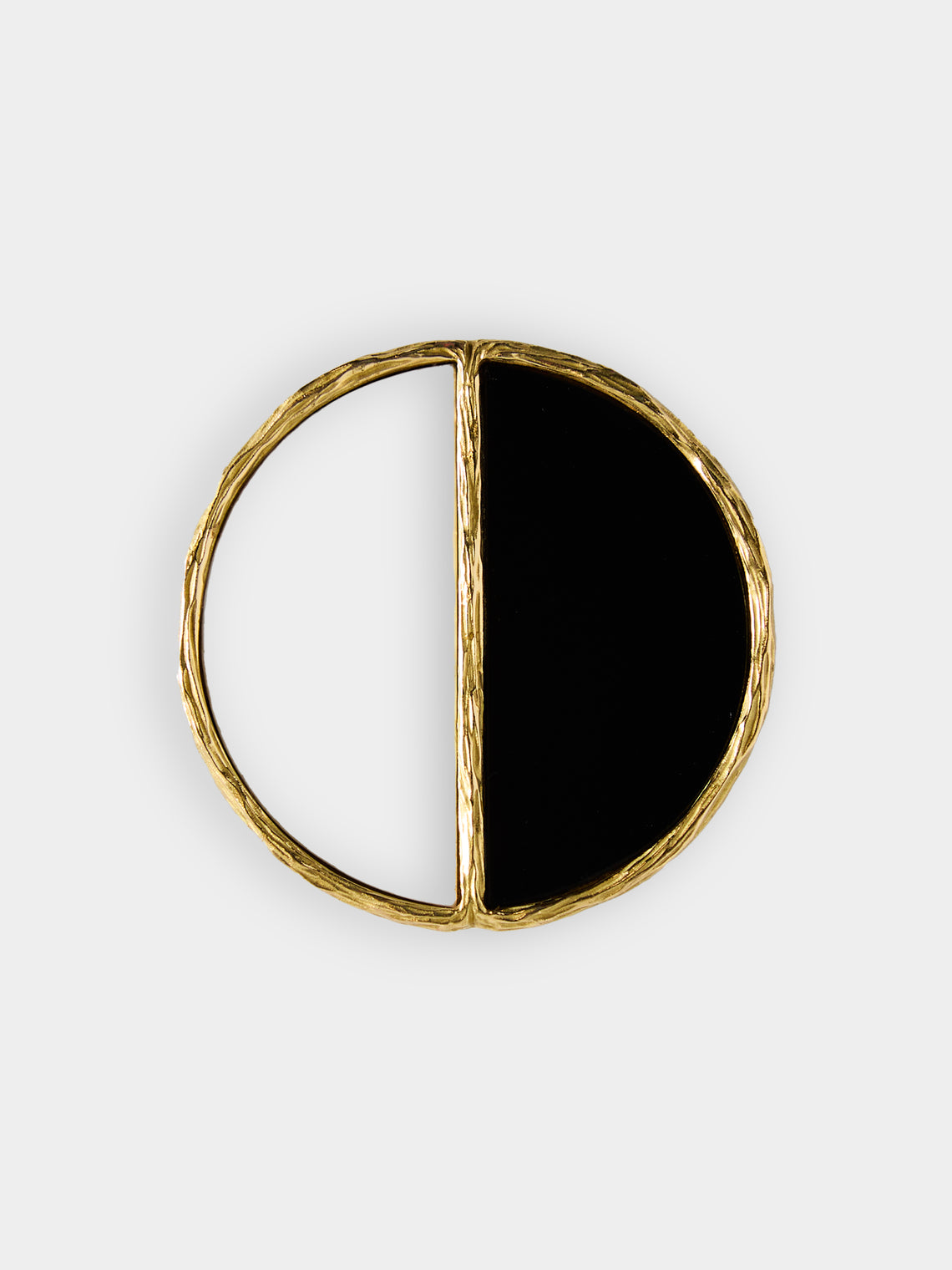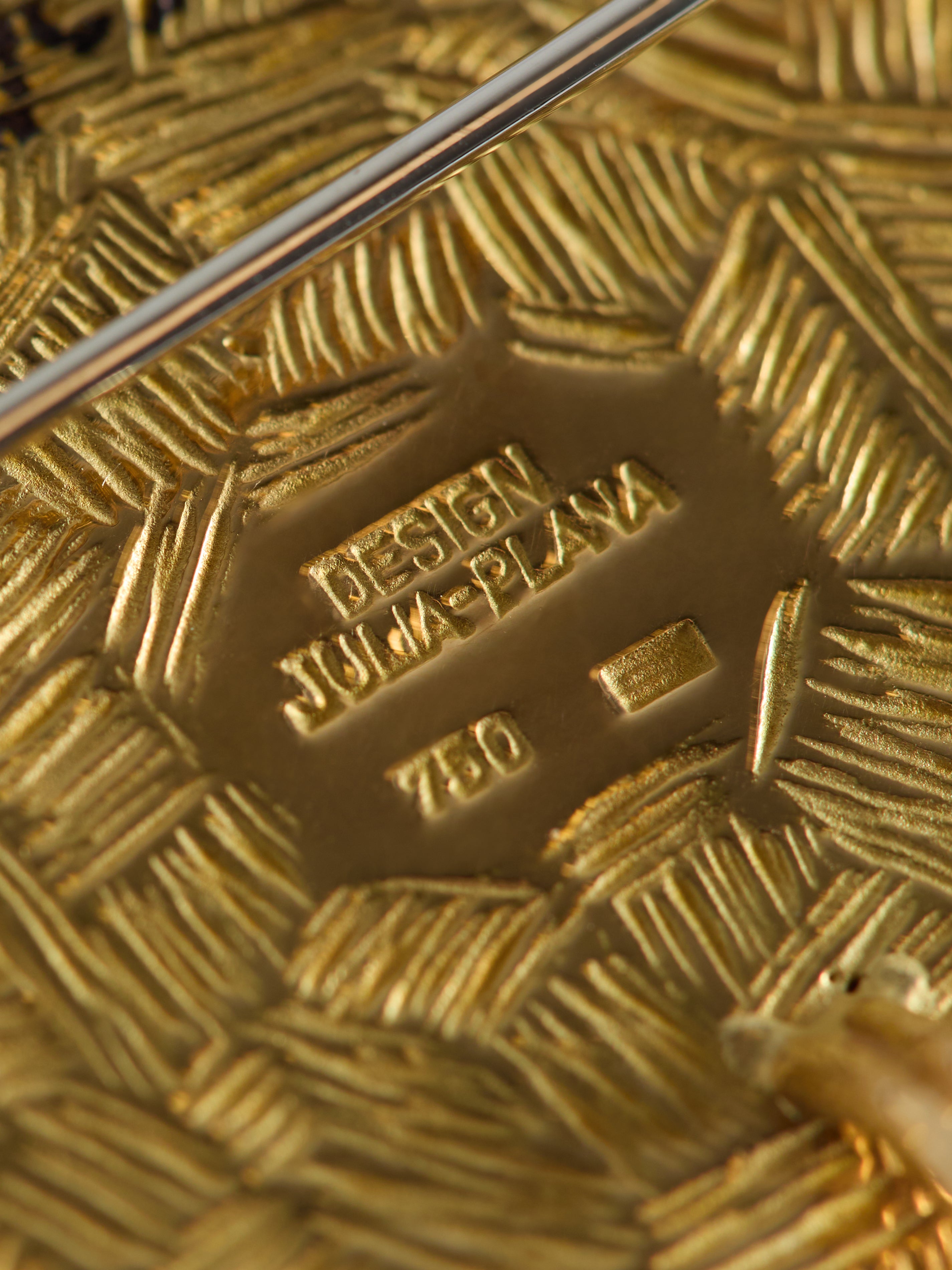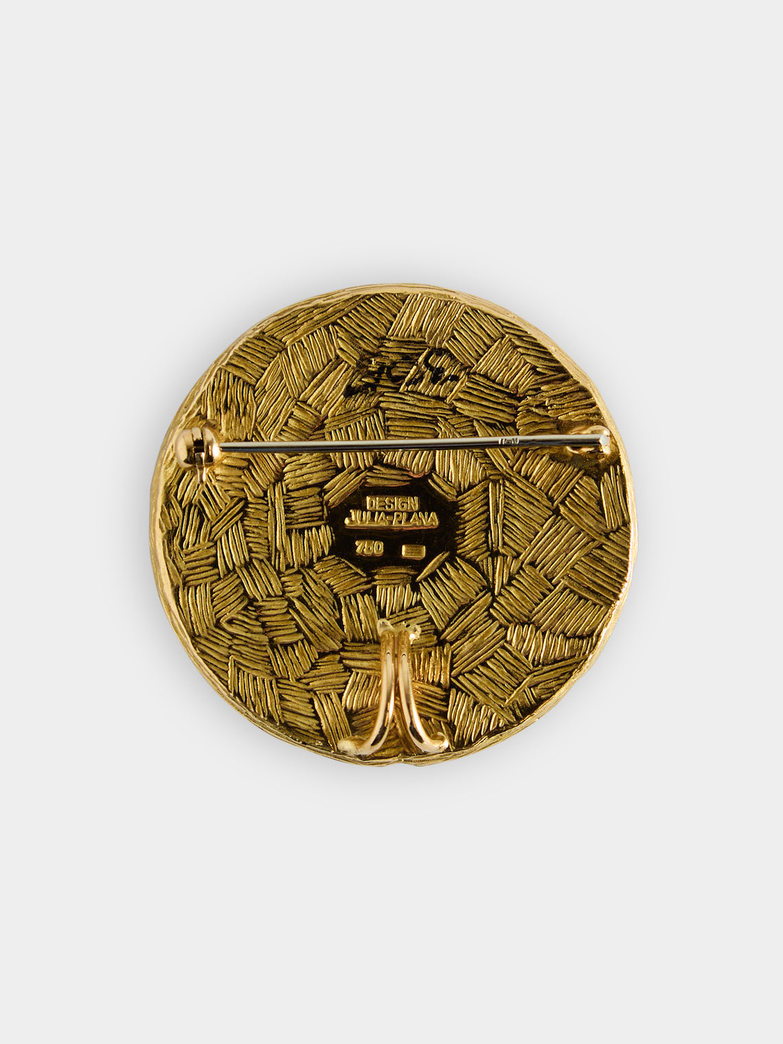 Mahnaz Collection Vintage 1970 Augustin Julia-Plana 18-Karat Yellow Gold, White Agate and Onyx Brooch