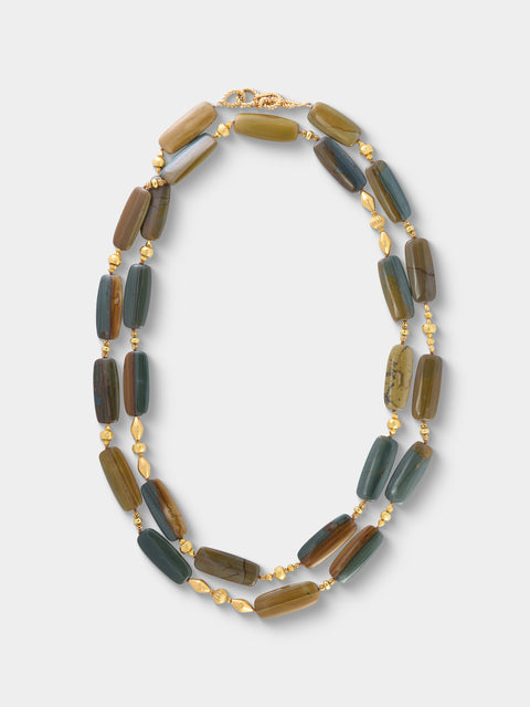 Mahnaz Collection Vintage 1990s Verdura 18-Karat Gold and Agate Beaded Necklace