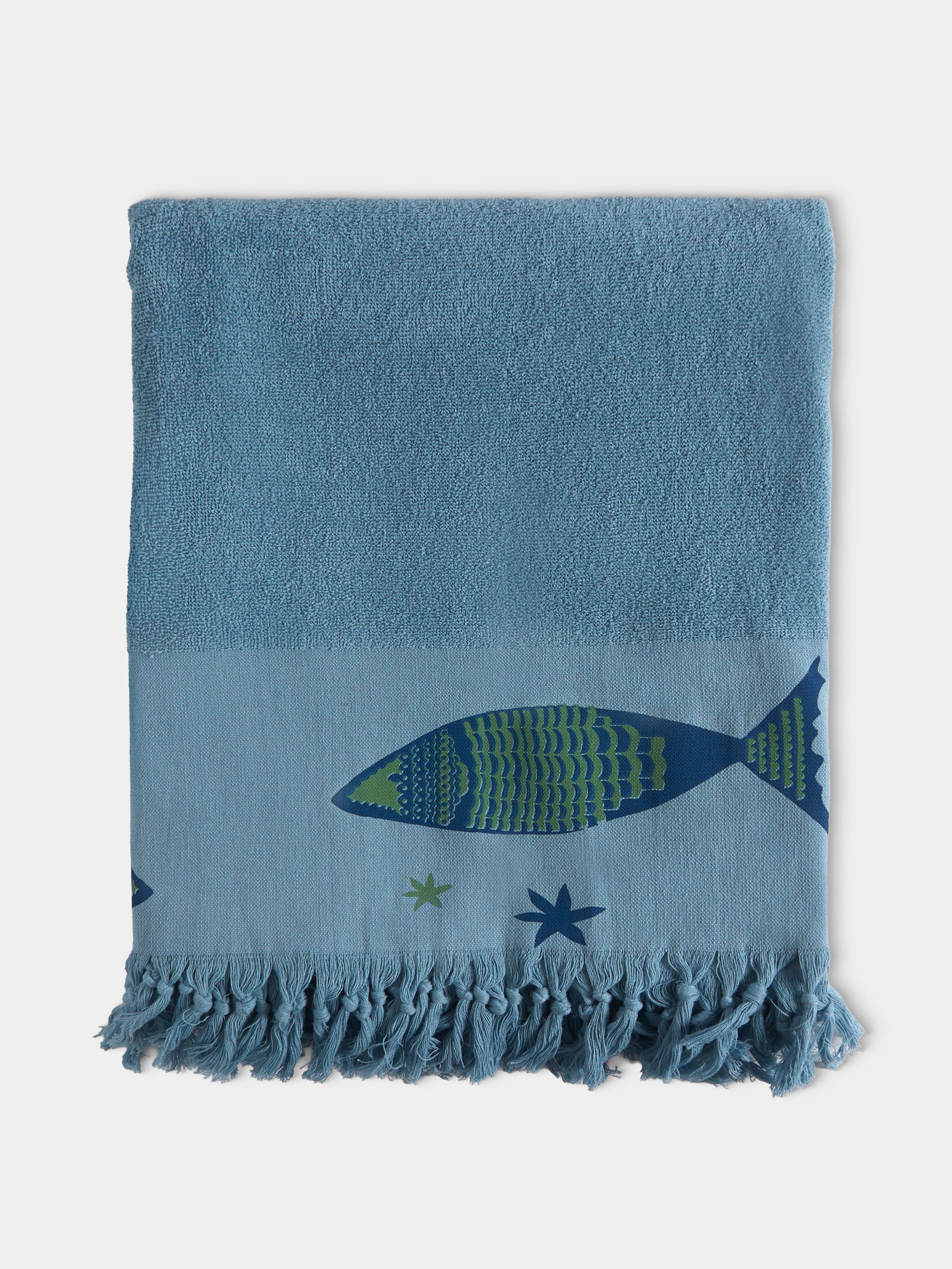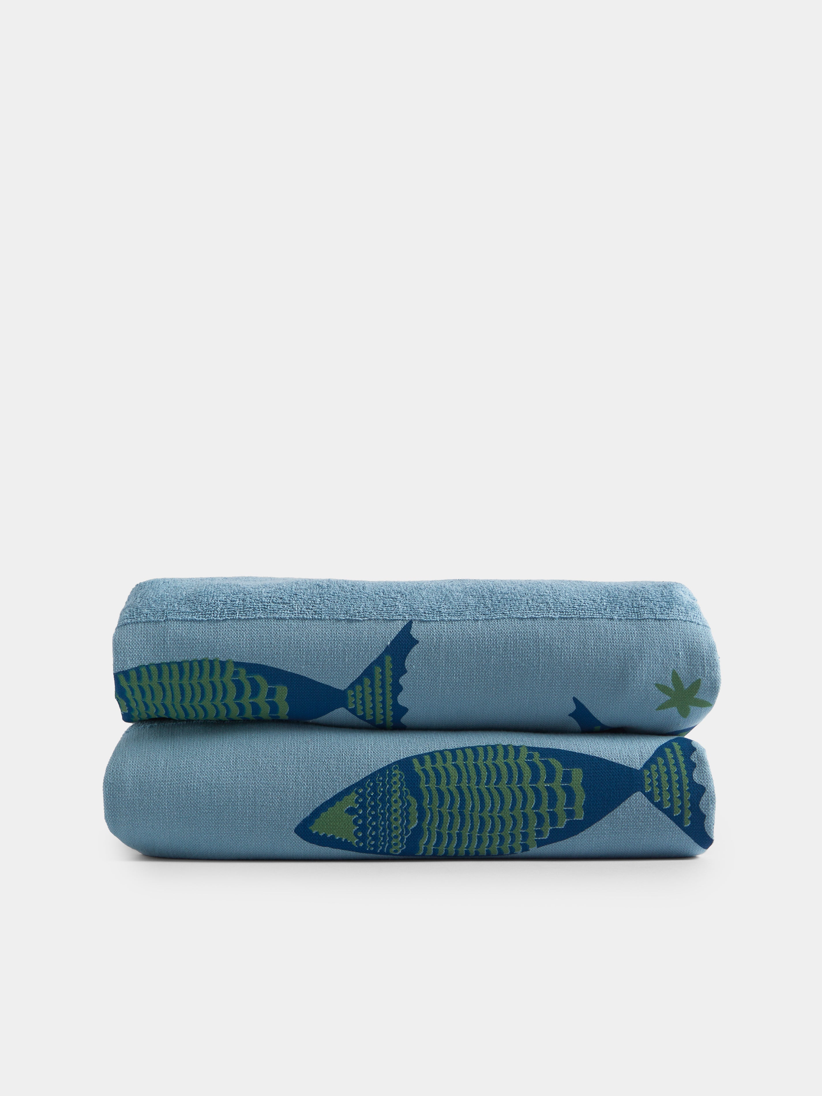 Anut Cairo Big Fish Hand-Printed Cotton Beach Towels (Set of 2)