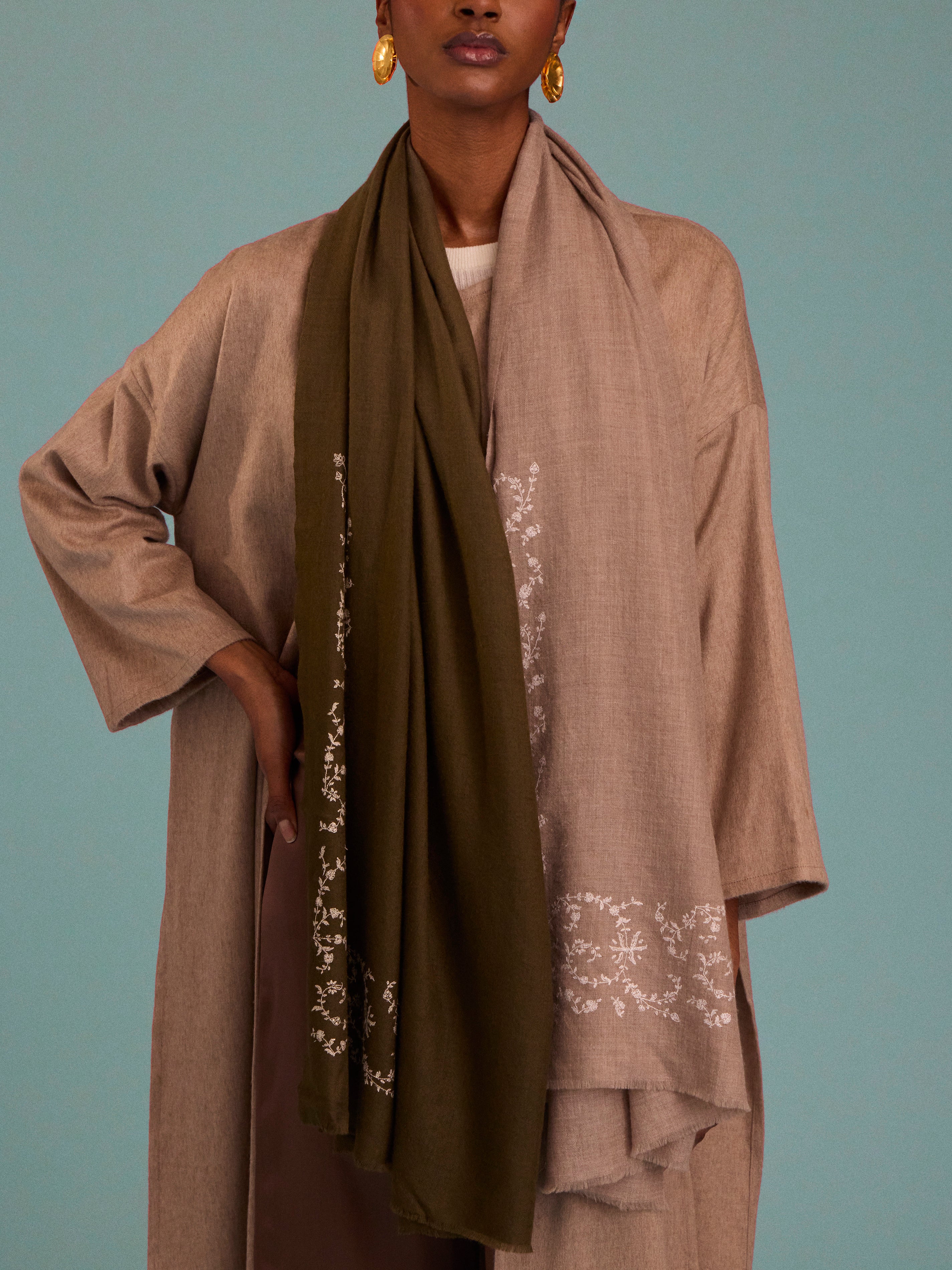 Cousins Mujtaba Kadri and Rauf Shaw established Me & K in 2008 to highlight the ancient art of Kashmir shawl-making. Their shared love of pashmina has been woven into their family dynamic for as long as they can remember, as four generations before them spent their lives dedicated to buying, selling and making. Scarves and shawls are their speciality, made using quality cashmere from goats in the Changthang region of the Himalayas – the intense cold here causes a thick undercoat that can be harvested to produce cashmere of the finest grade. Traditional techniques enrich each craft tale, such as spinning, weaving and embroidering, which are passed down through generations and carried out entirely by hand.
