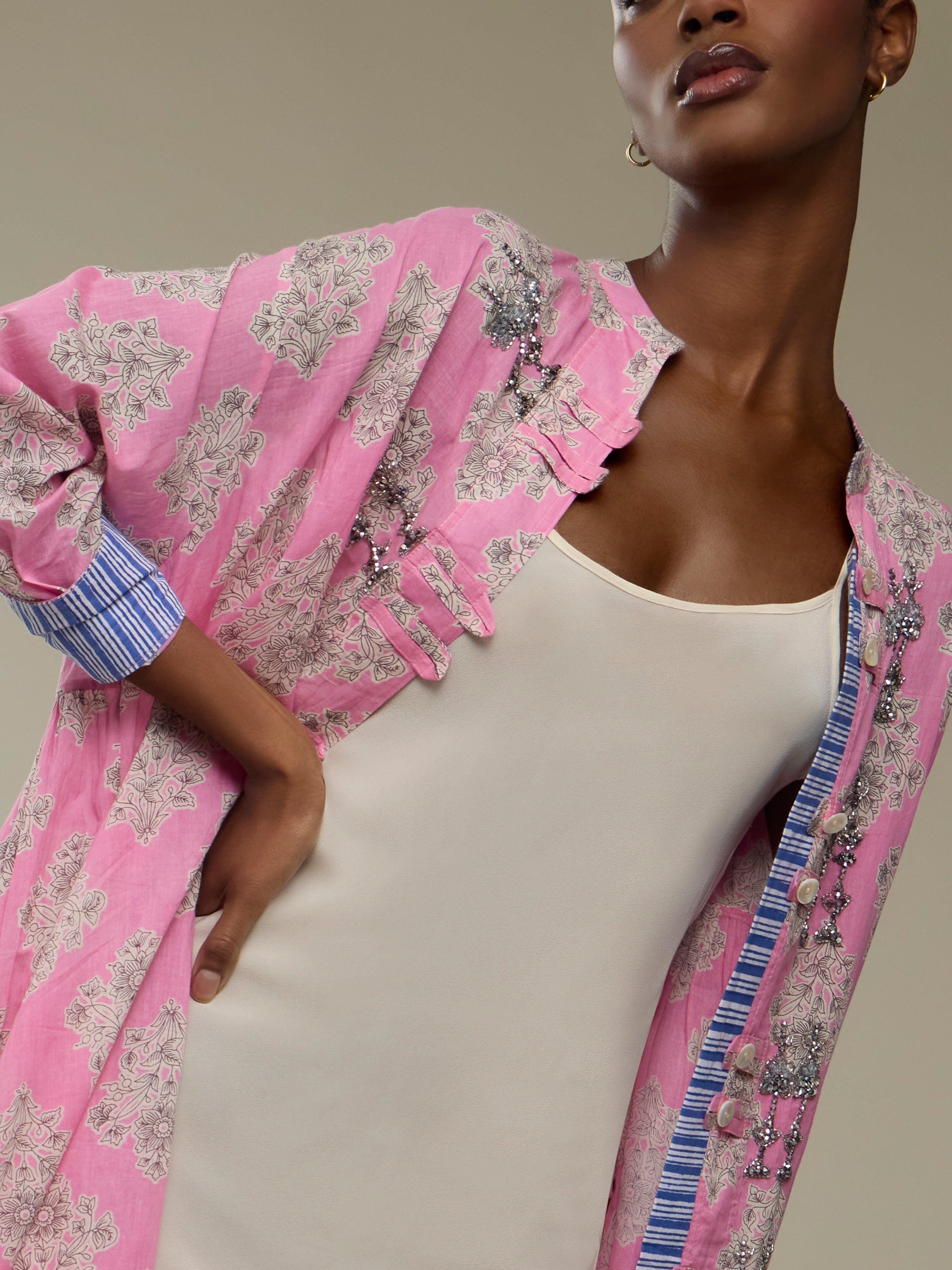 Nazzy Beglari Hand-Blocked Cotton Shirt Dress | One Size