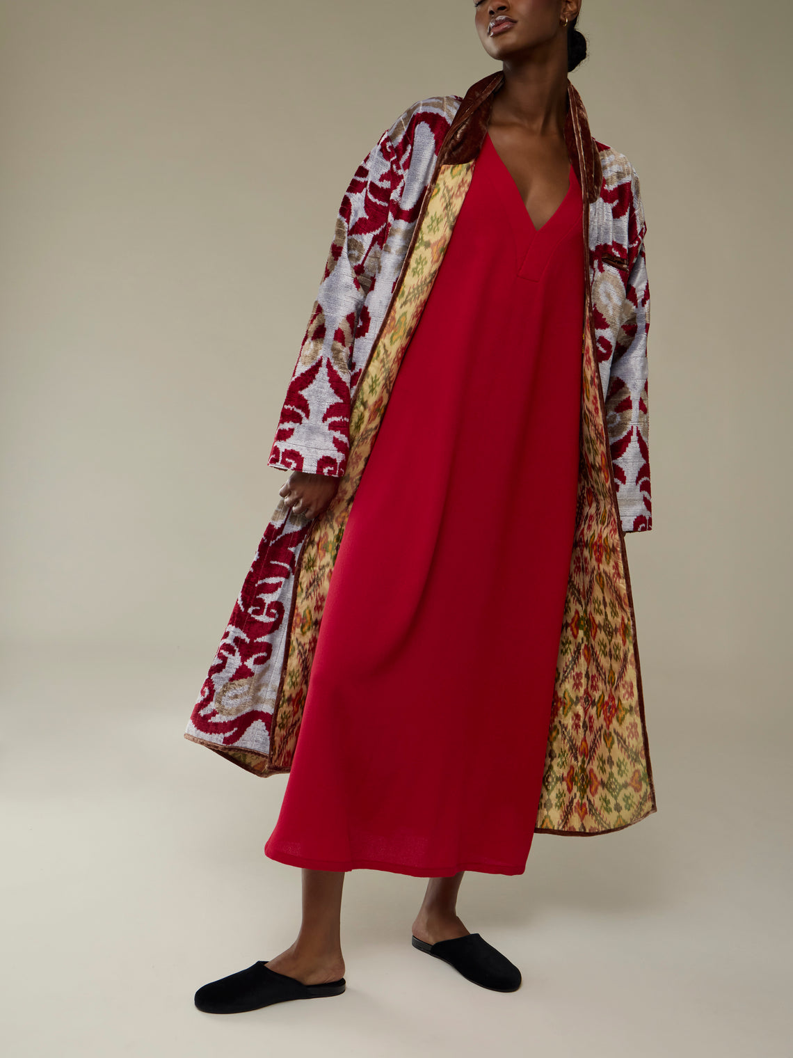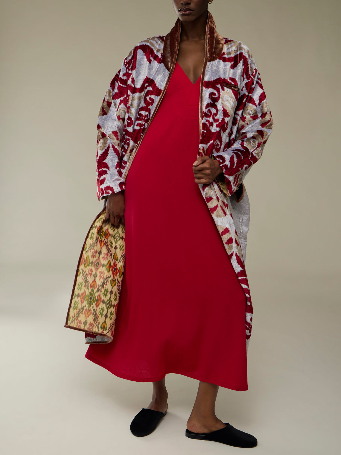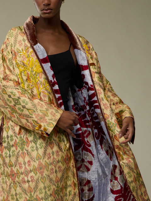 Nazzy Beglari Hand-Loomed Ikat Silk and Cotton Reversible Robe | One Size