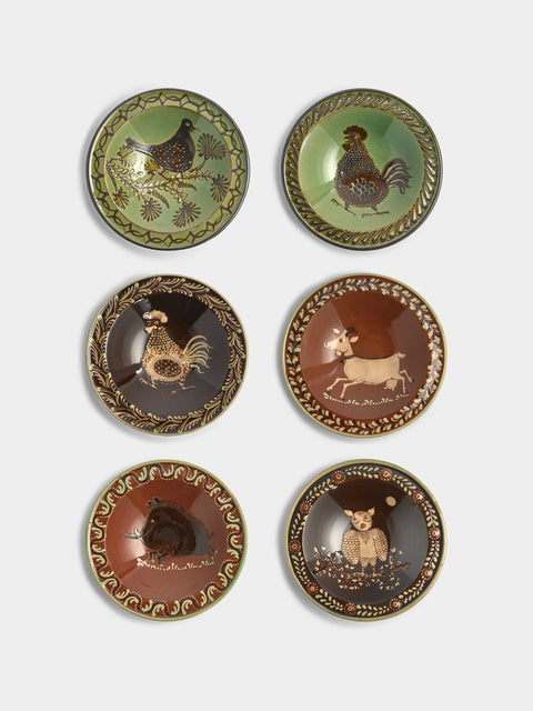 Poterie d’Évires Animals Hand-Painted Ceramic Breakfast Bowls (Set of 6)