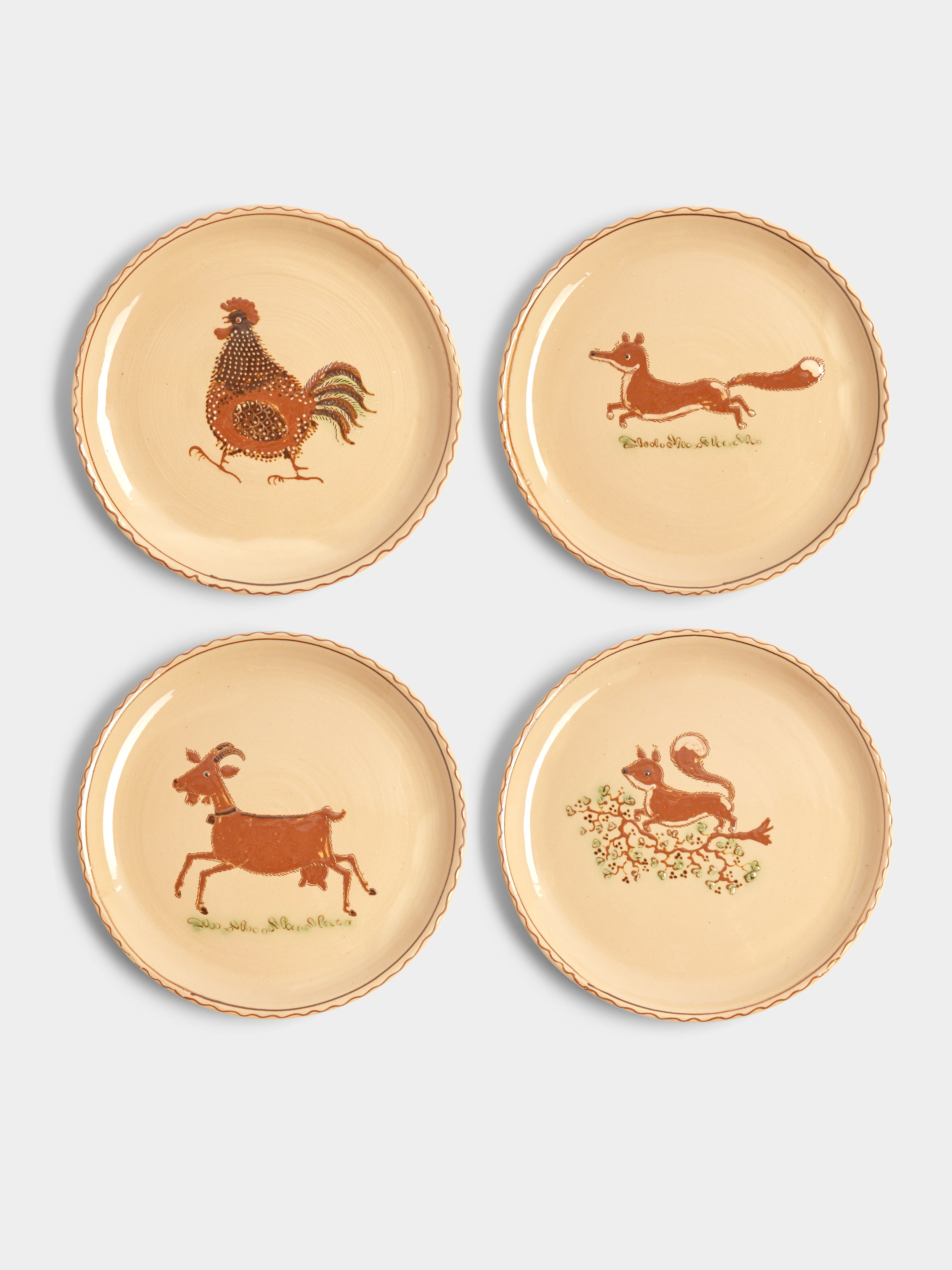 Poterie d’Évires Animals Hand-Painted Ceramic Dinner Plates – 9.5in/24cm (Set of 4)
