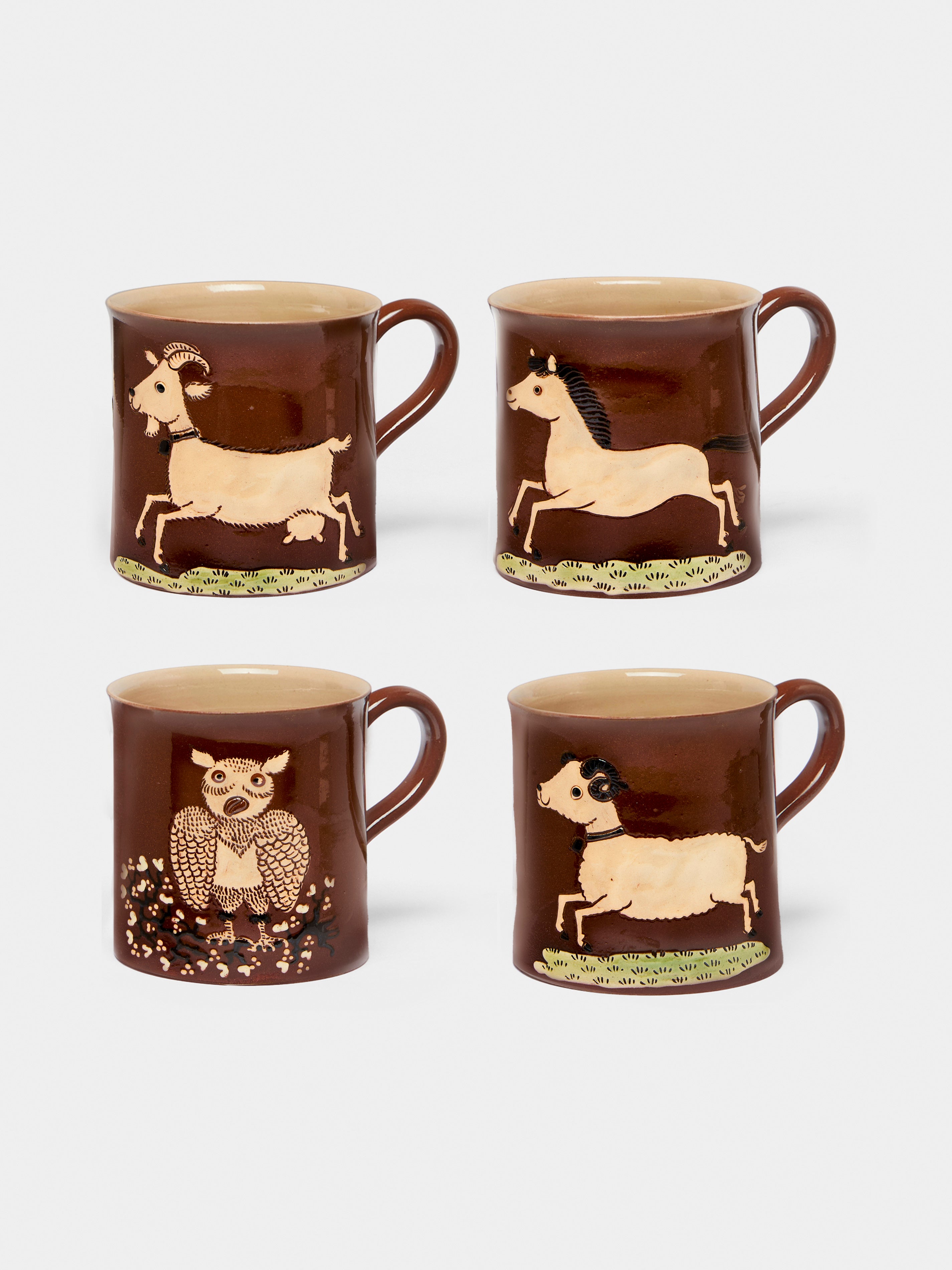 Poterie d’Évires Animals Hand-Painted Ceramic Mugs (Set of 4)
