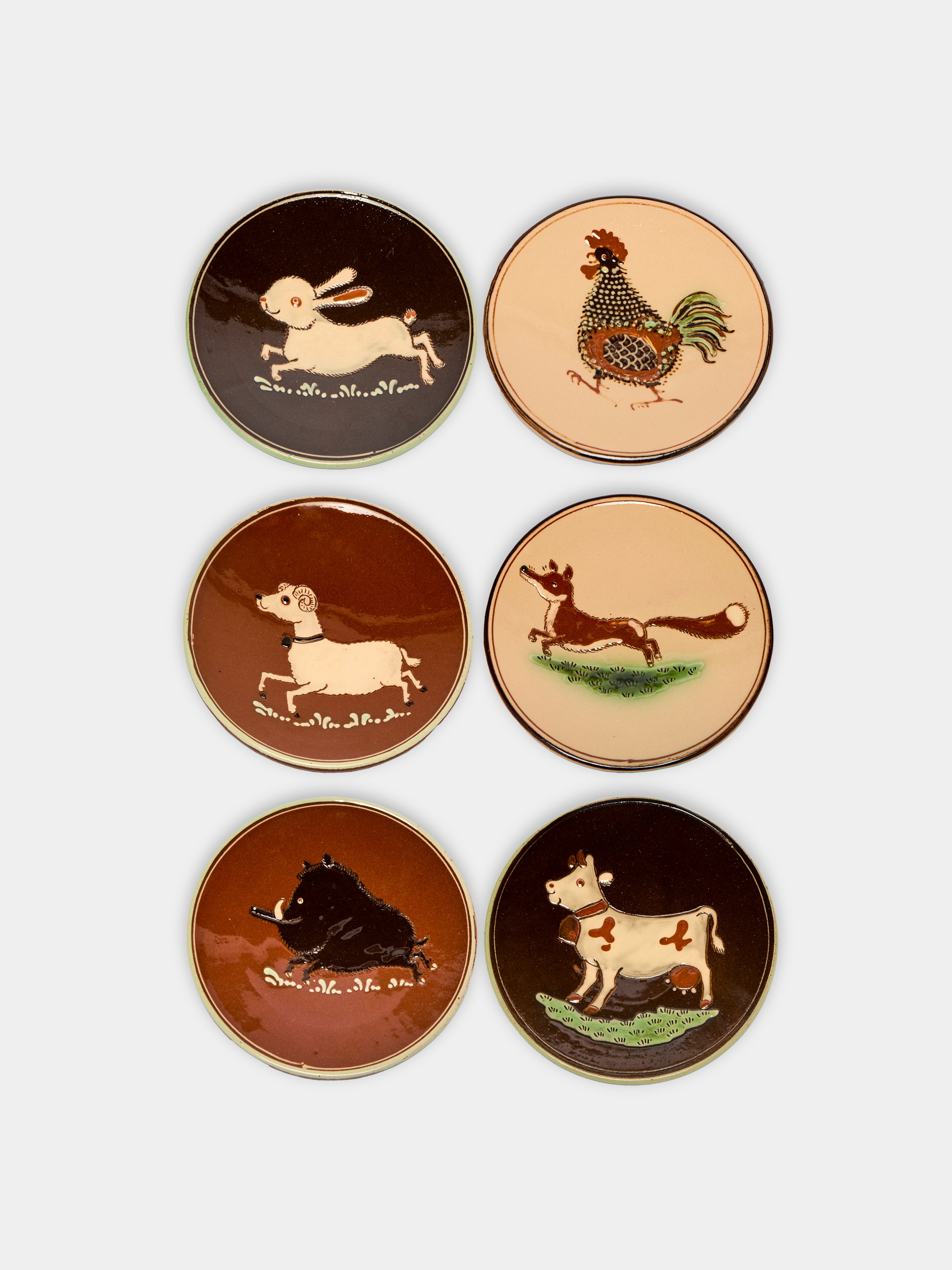 Poterie d’Évires Animals Hand-Painted Ceramic Plates – 5.5in/14cm (Set of 6)