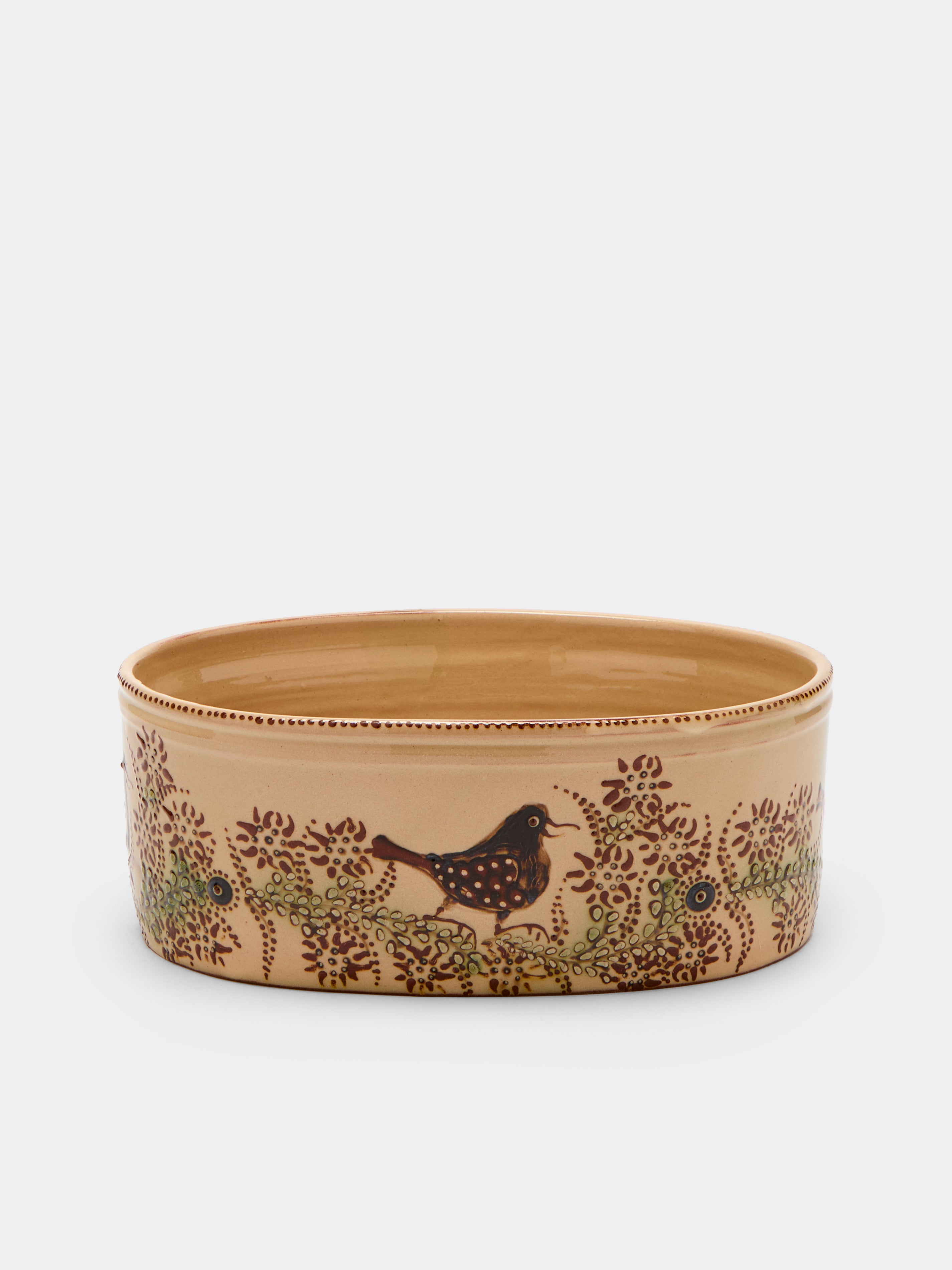 Poterie d’Évires Birds Hand-Painted Ceramic Oval Serving Dish