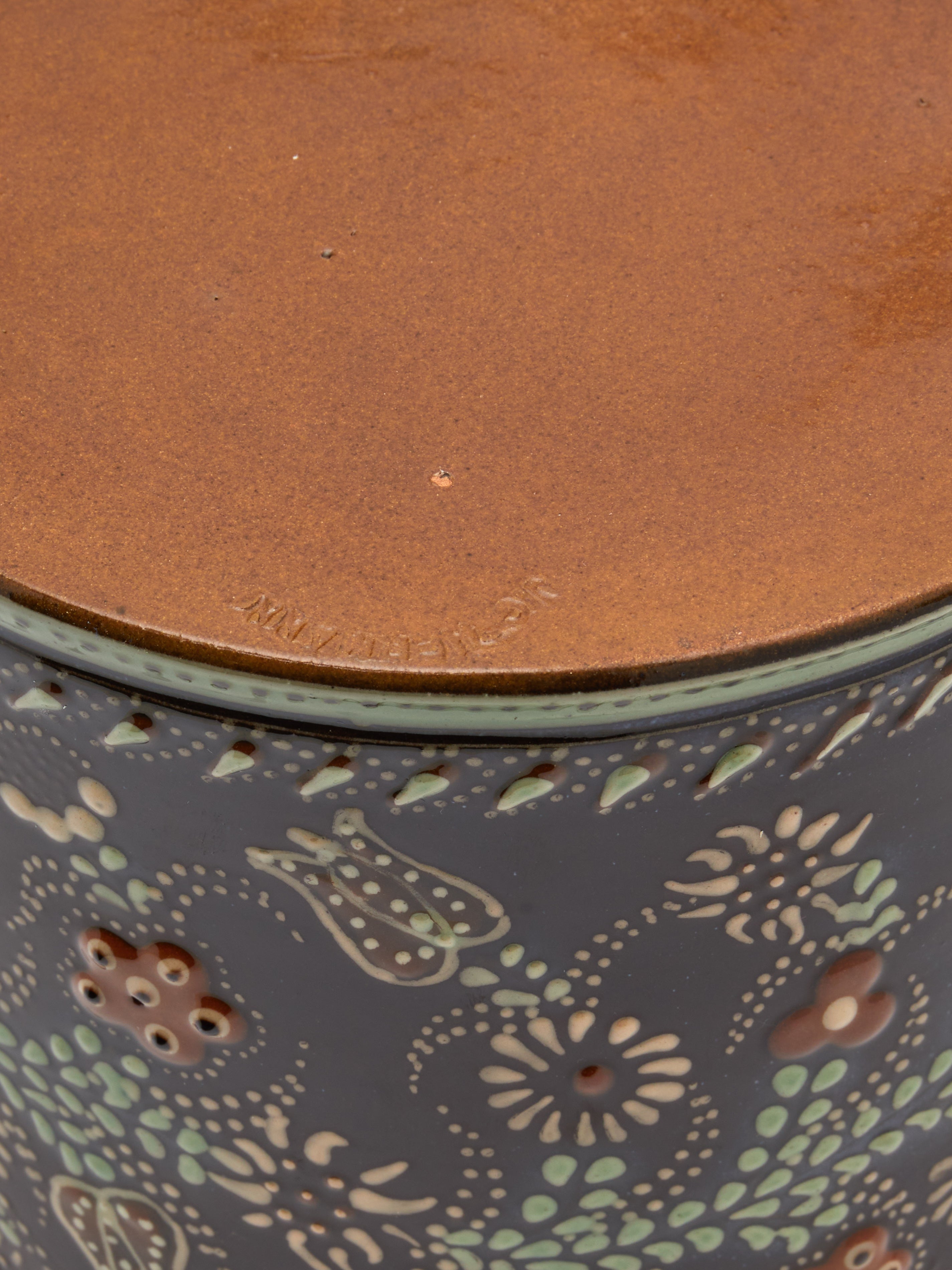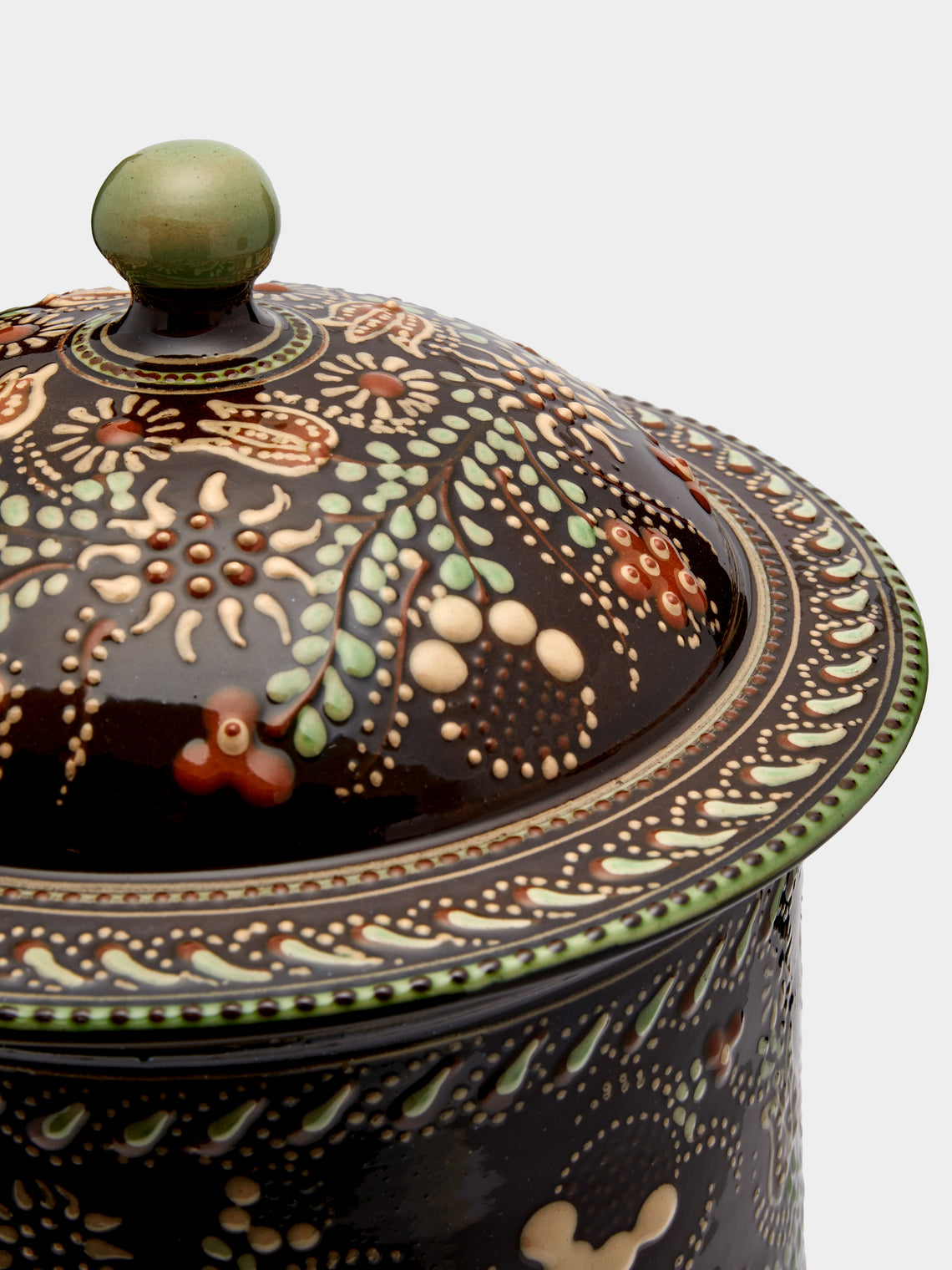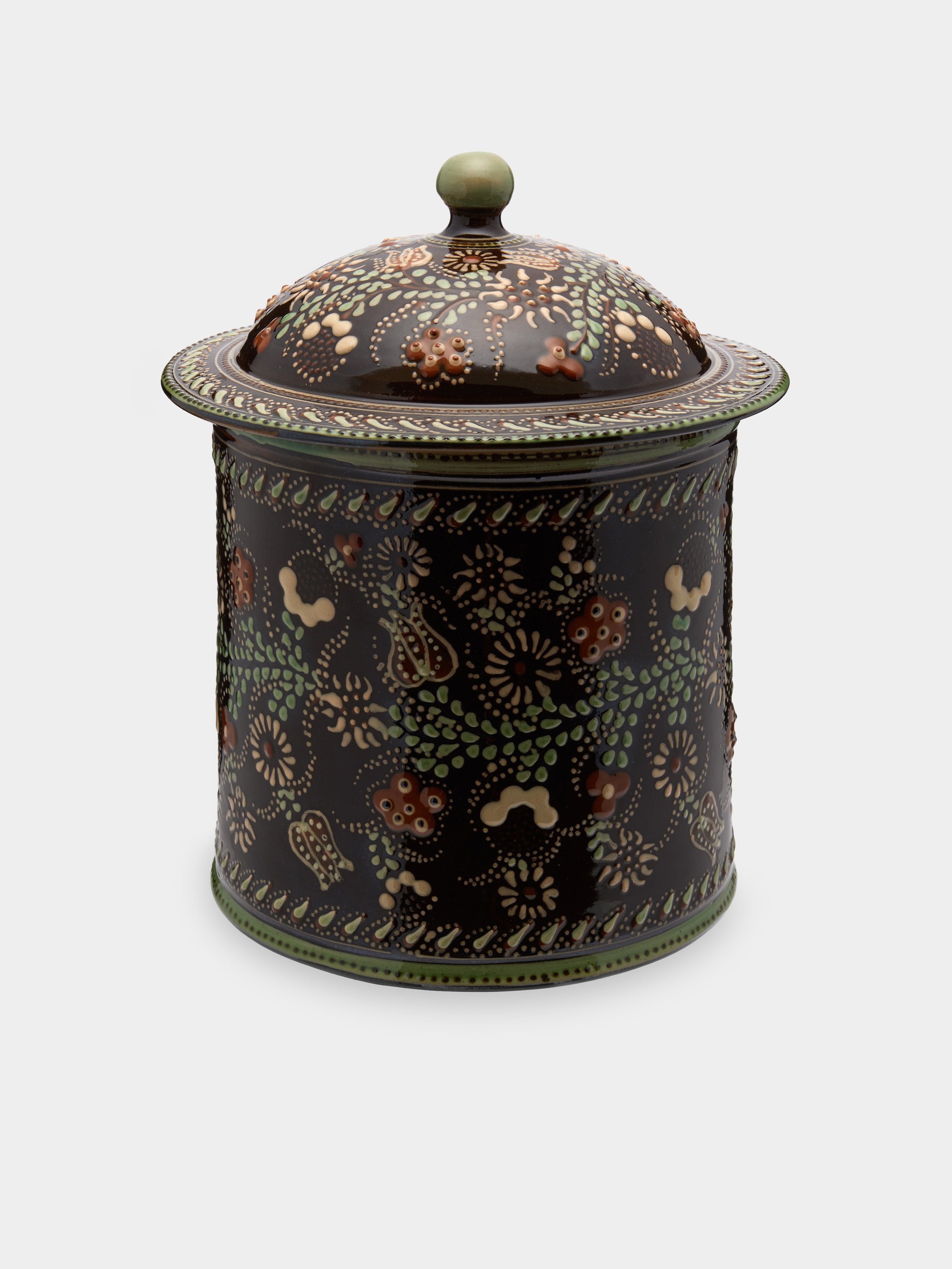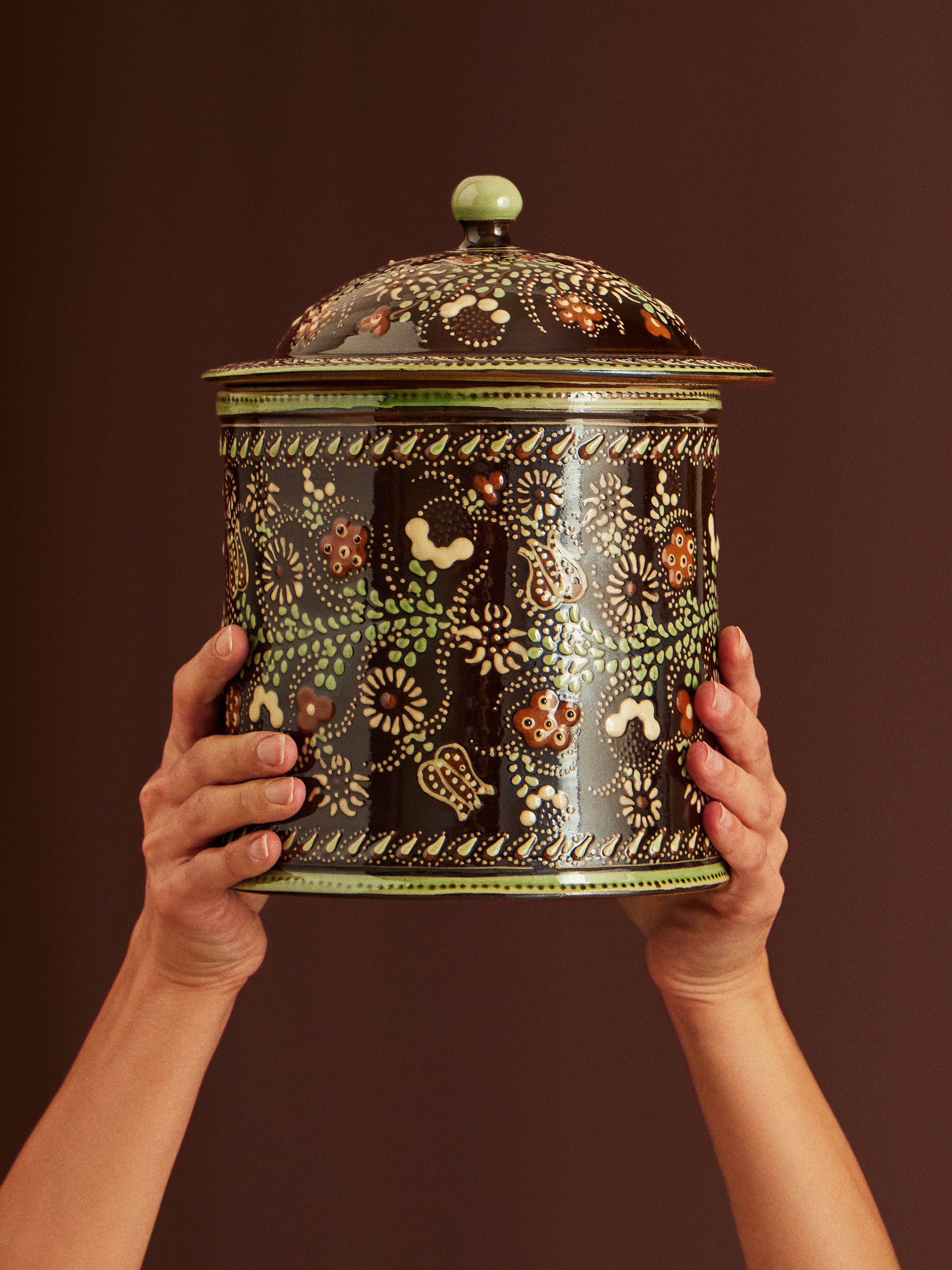 Poterie d’Évires Flowers Hand-Painted Ceramic Large Lidded Pot