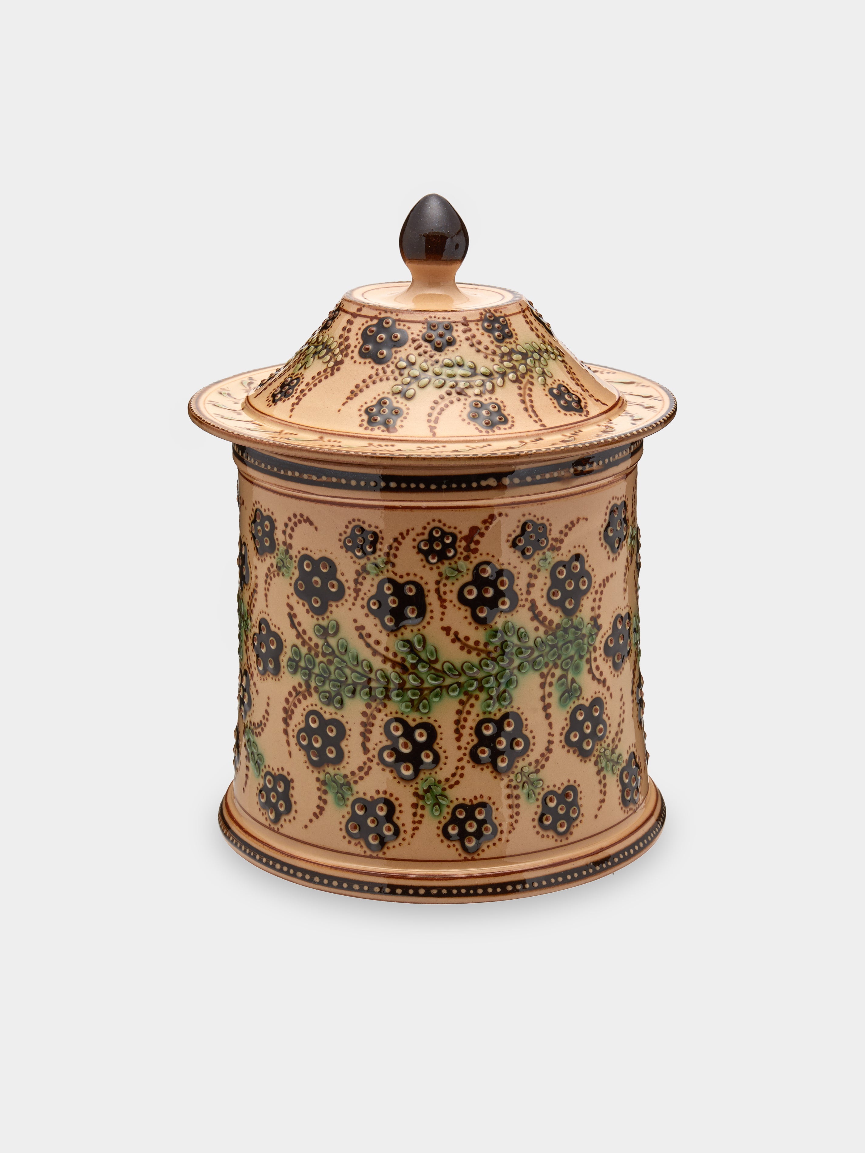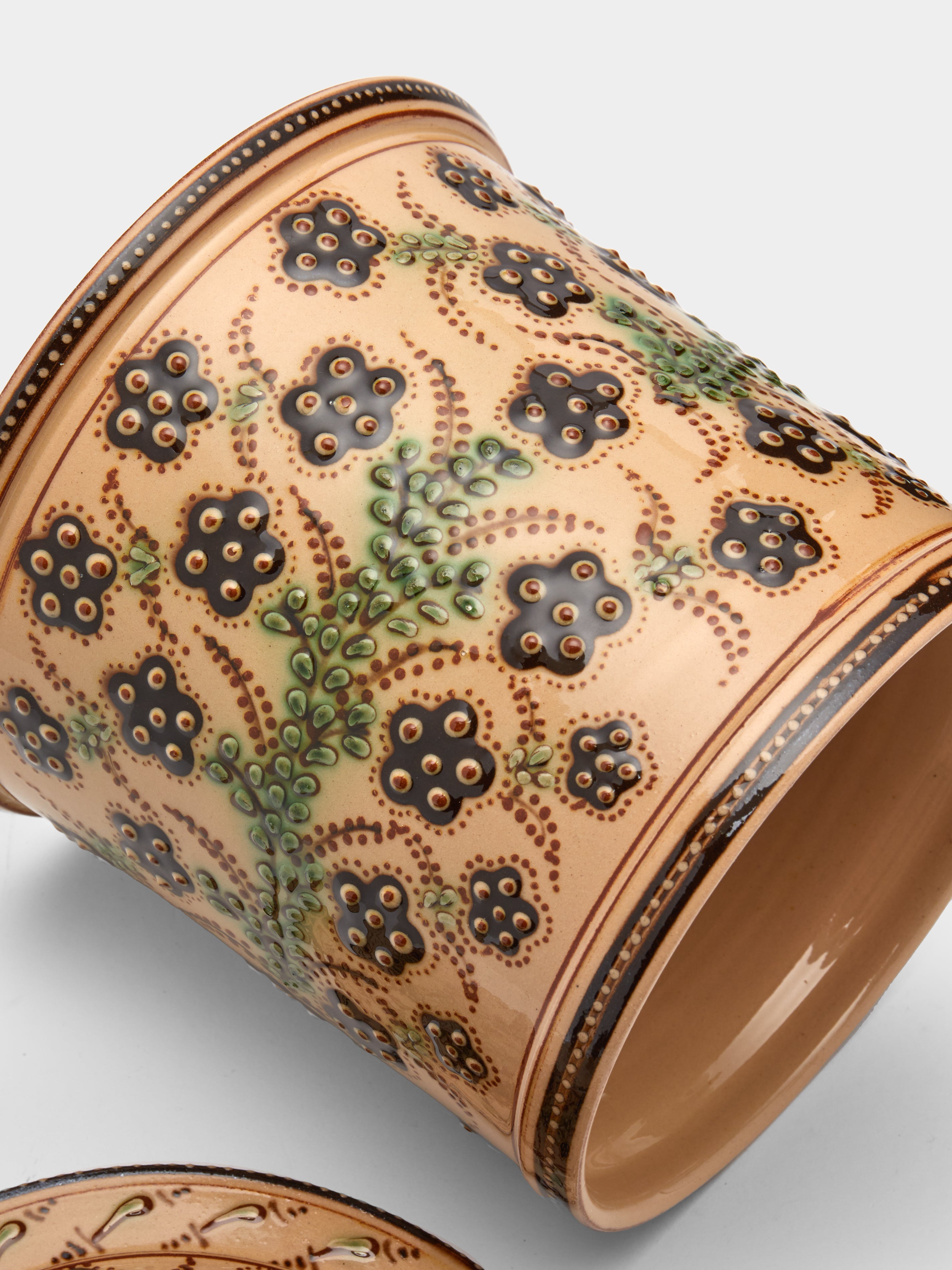 Poterie d’Évires Flowers Hand-Painted Ceramic Medium Lidded Pot