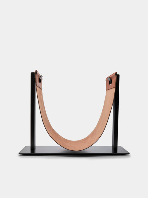 Milan-born leather specialist, Rabitti launched in 1969 and is widely recognised for its thick vegetable-tanned saddle leather. Because of its sturdy sensibilities, saddle leather requires zero reinforcement, enabling homeware objects such as baskets and trays to be entirely crafted from leather. Its characteristic look and softness are achieved by using chrome-free natural tannins in the dying process.