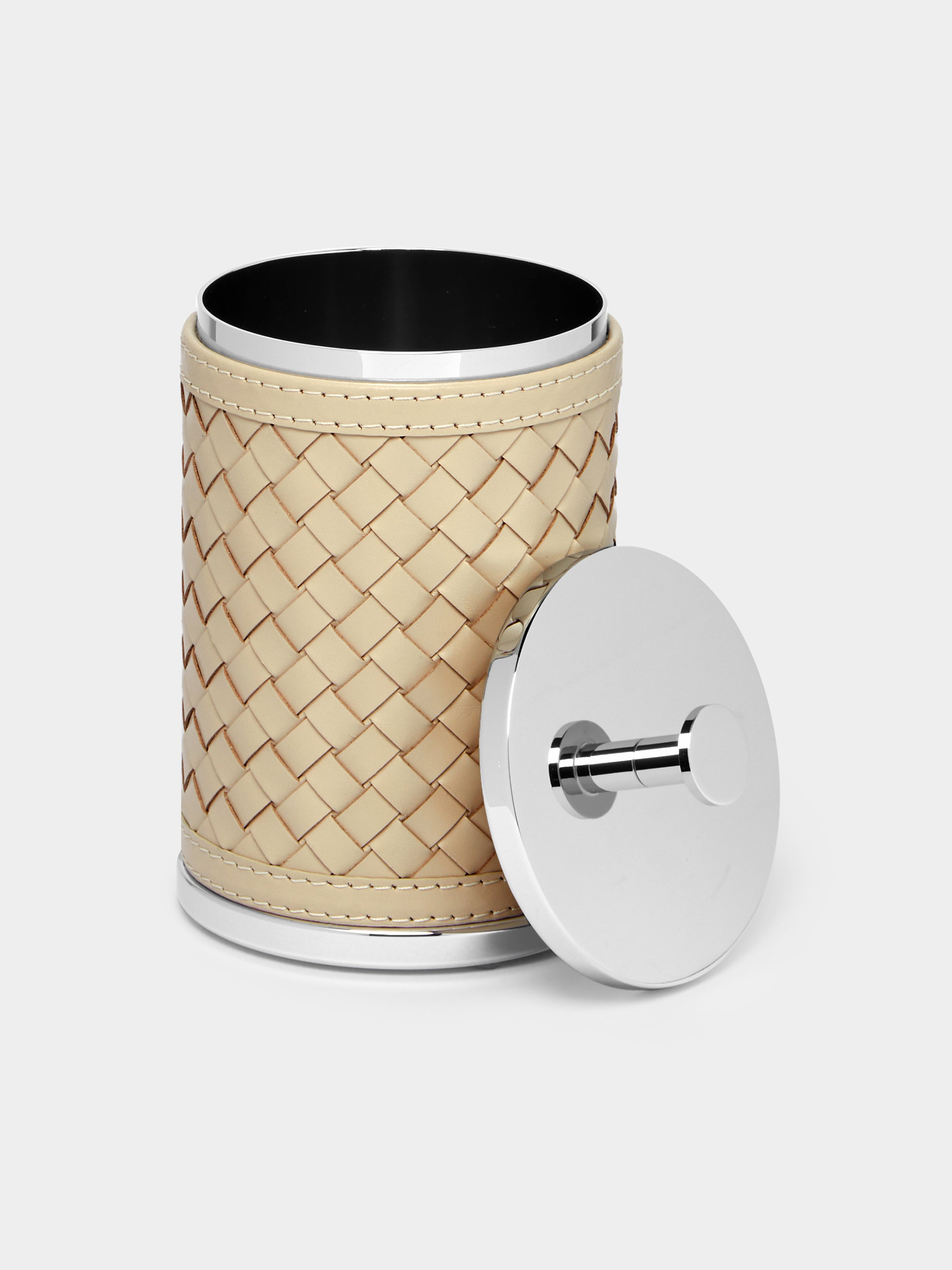 Woven Leather Lidded Box11cm (l) x 9cm (d) / 4.3" (l) x 3.5" (d)