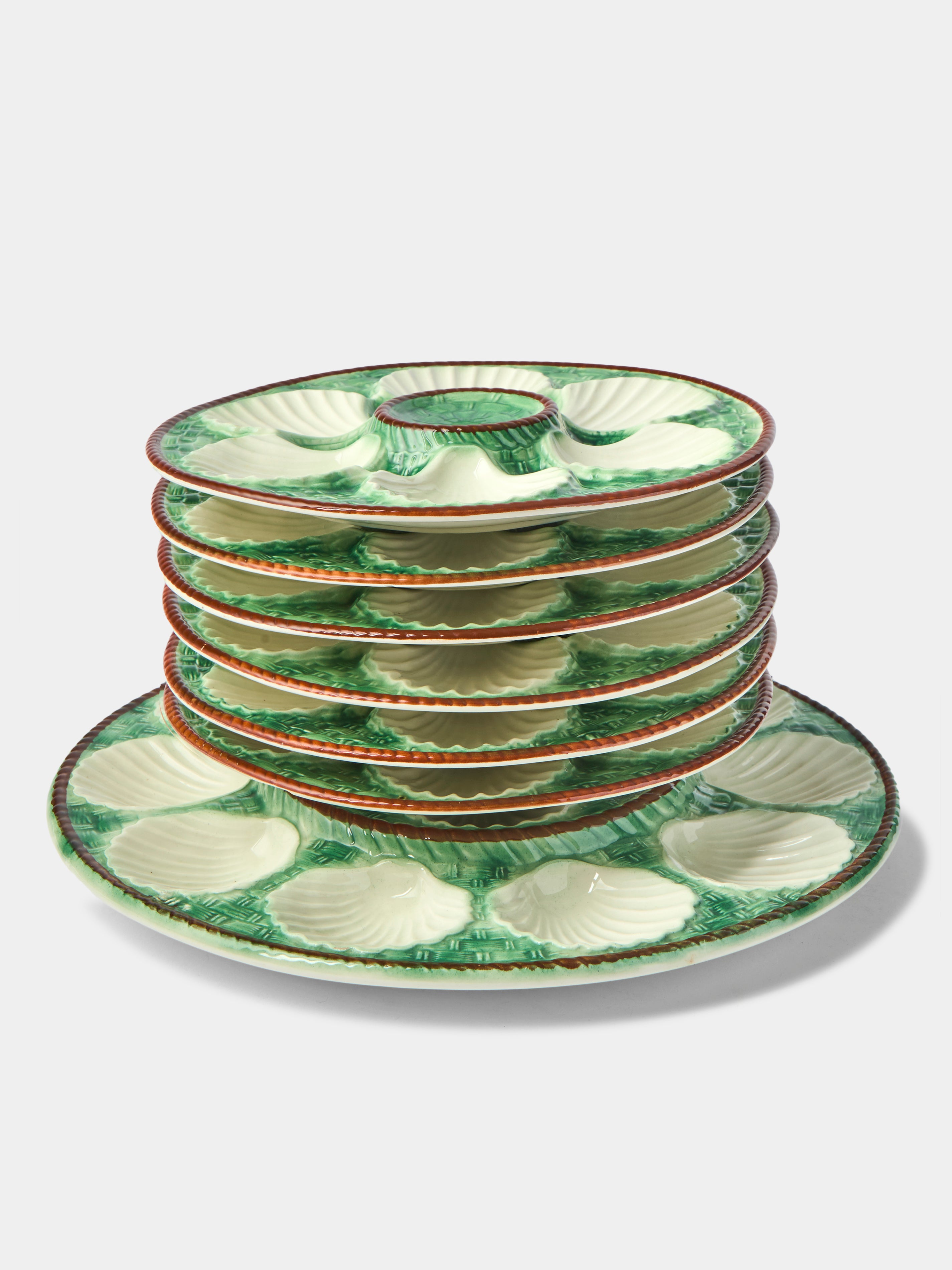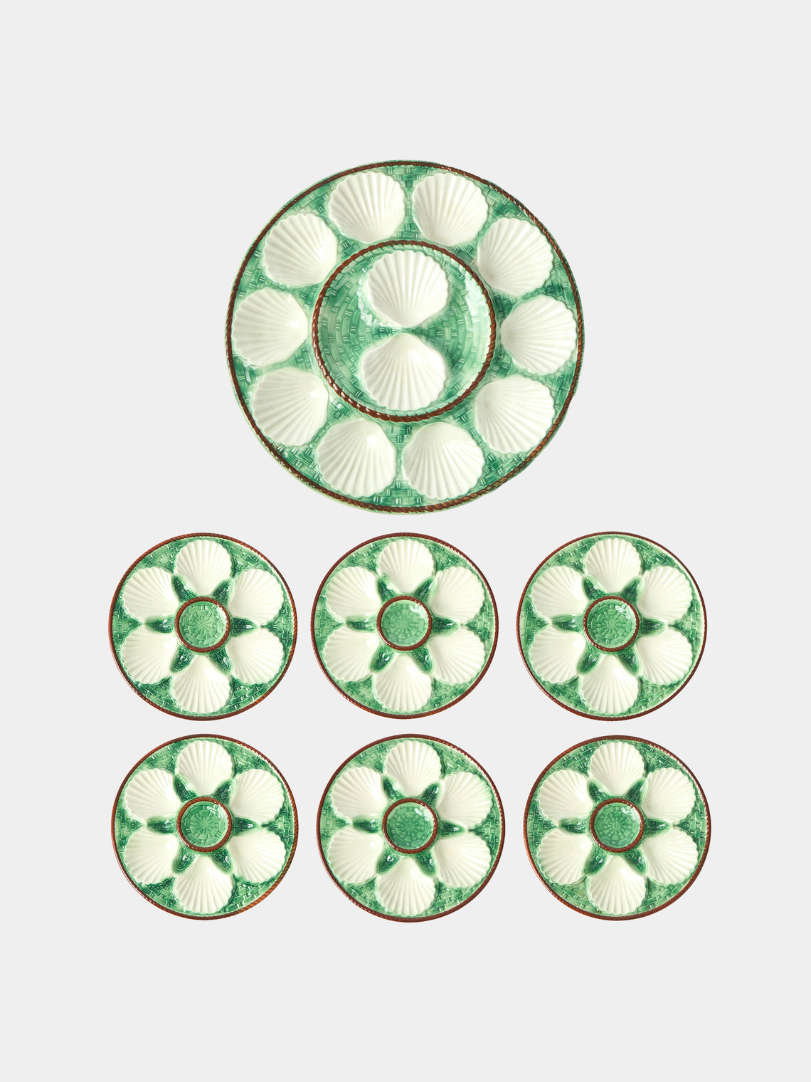 Antique and Vintage 1950s Ceramic Oyster Serving Platter with Plates (Set of 7)
