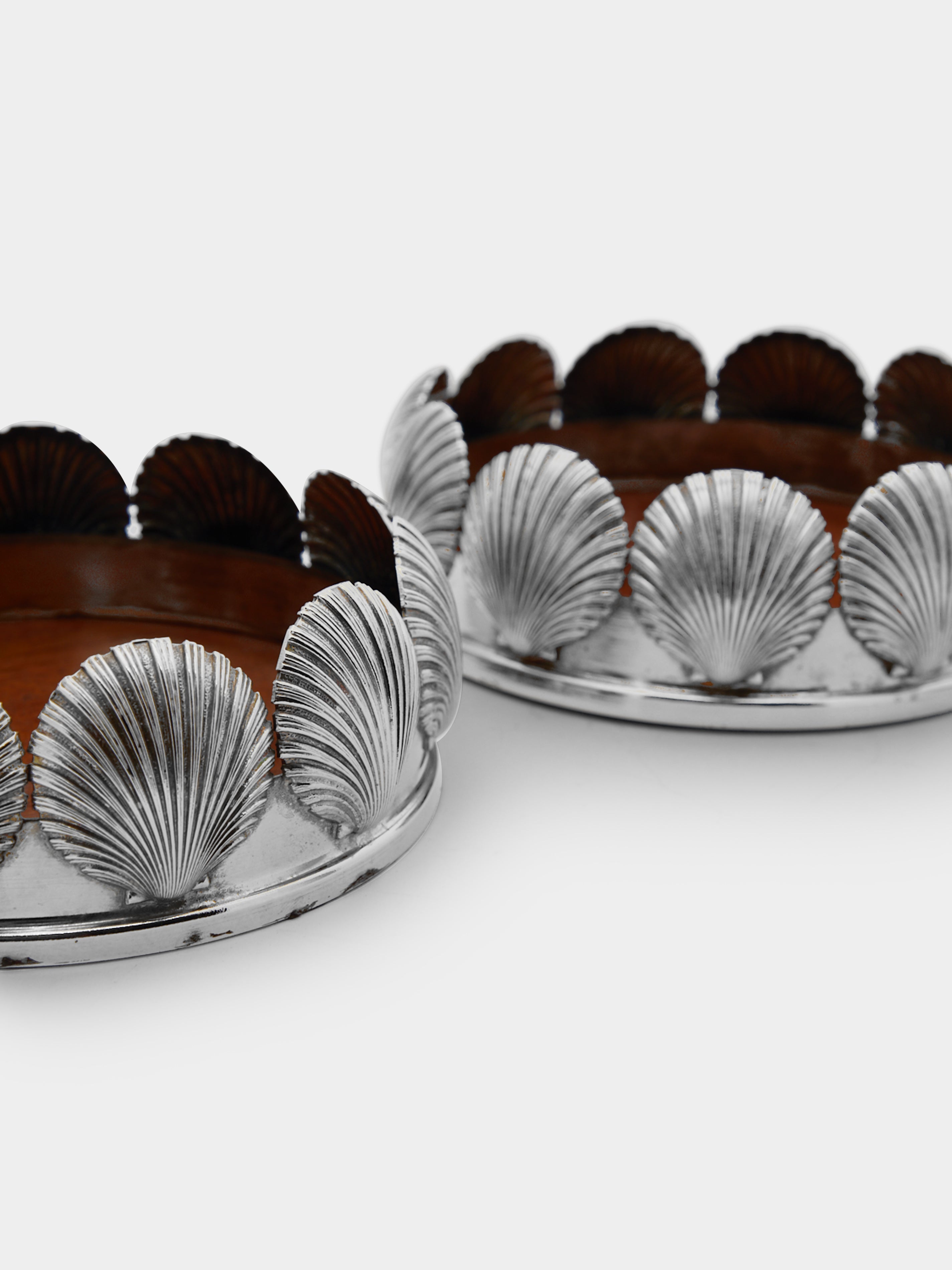 Antique and Vintage 1970s Silver-Plated and Wood Shell Bottle Stands (Set of 2)