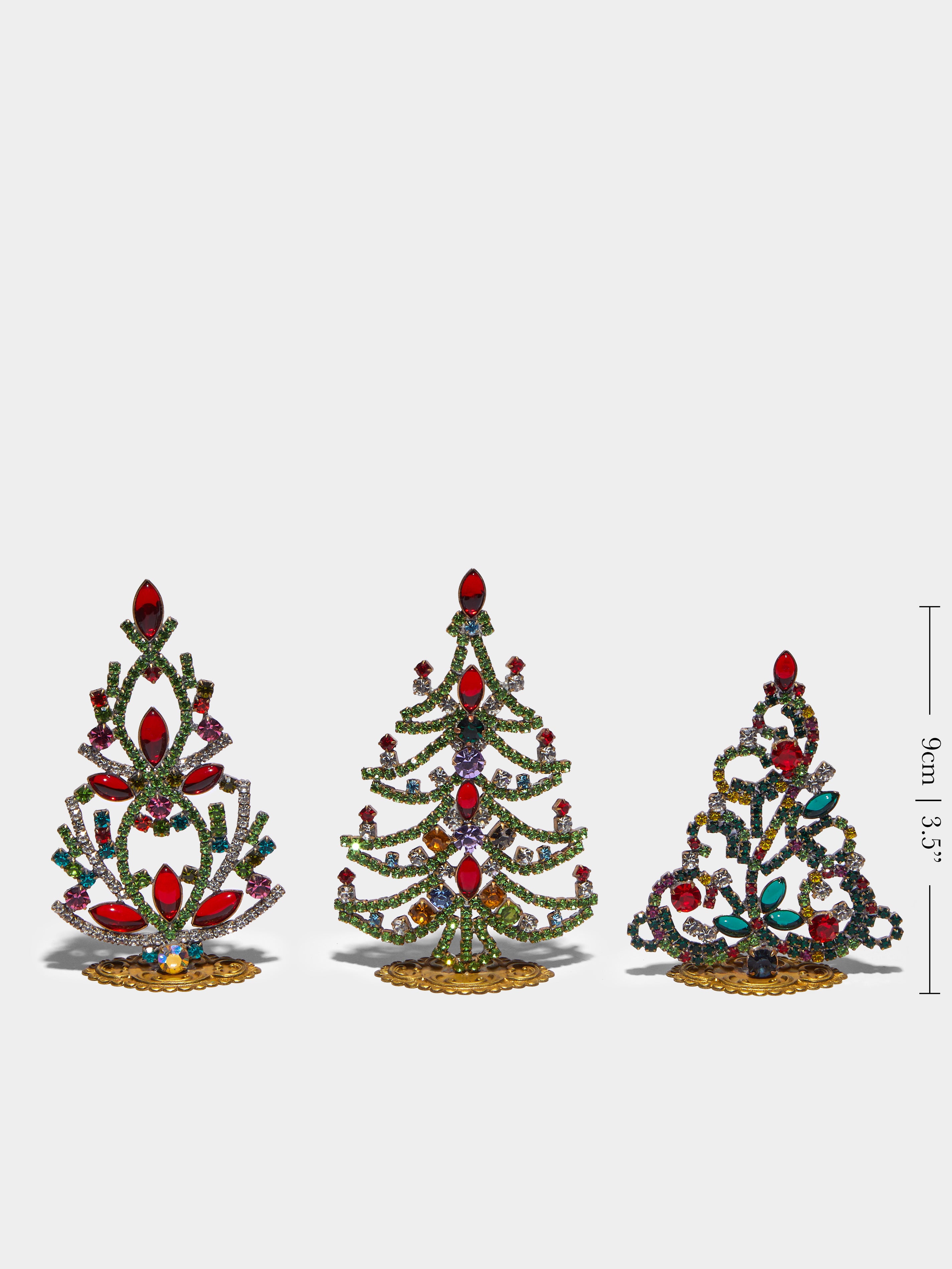 1930s Czech Jeweled Extra Small Christmas Trees (Set of 3)9cm (h) / 4" (h)