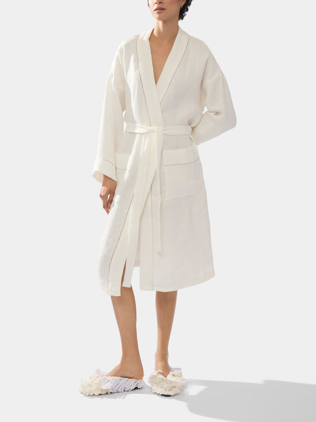 Theresa Tollemache...Theresa Tollemache founded Volga Linen in 1995 with a focus on heirloom-quality linen, and while the creative direction may have changed – sitting today with Claire Fouché – this sentiment has remained the same ever since. Each collection will acquaint linen-lovers with something special, whether that’s classic sheets realised through a purist lens, hand-drawn thread fabrics that speak to the fine craftsmanship behind the scenes, or small details that nod to the folkloric traditions and sense of wanderlust at Volga’s core.Theresa Tollemache founded Volga Linen in 1995 with a focus on heirloom-quality linen, and while the creative direction may have changed – sitting today with Claire Fouché – this sentiment has remained the same ever since. Each collection will acquaint Theresa Tollemache founded Volga Linen in 1995 with a focus on heirloom-quality linen, and while the creative direction may have changed – sitting today with Claire Fouché – this sentiment has remained the same ever since. Each collection will acquaint linen-lovers with something special, whether that’s classic sheets realised through a purist lens, hand-drawn thread fabrics that speak to the fine craftsmanship behind the scenes, or small details that nod to the folkloric traditions and sense of wanderlust at Volga’s core.