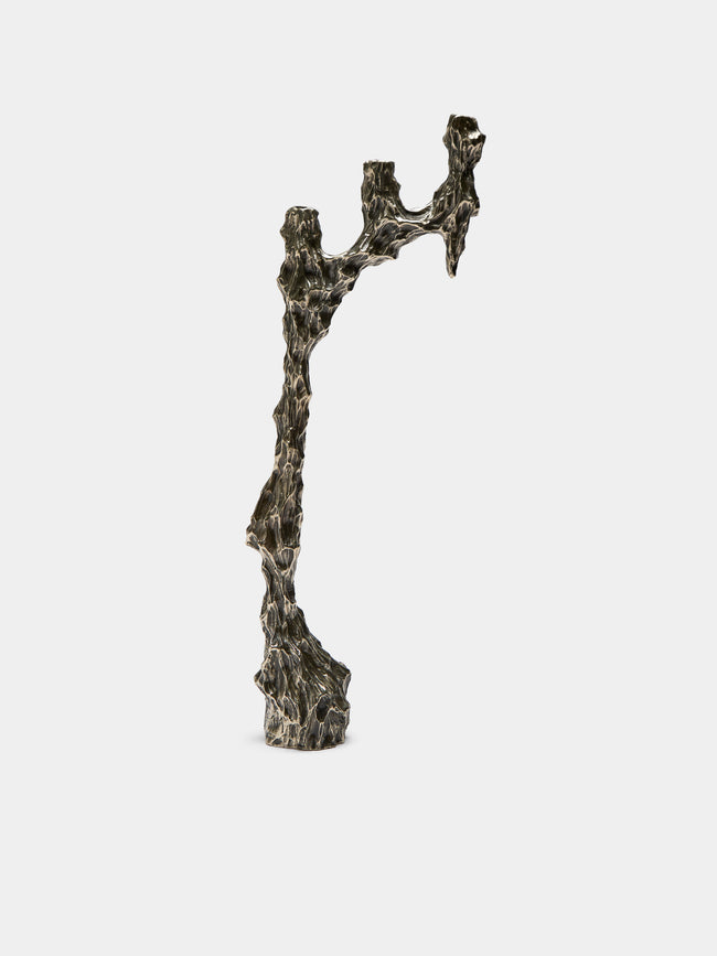 Bordeaux-based designer and art director William Guillon grasps at the surreal, the uncanny and the otherworldly through his creative experiments. Design objects like candlesticks and tableware are fated to bring a brooding glamour to your home, each one distinctive in its own way and inviting the collector to ruminate on the ephemerality of life relative to the permanence of the items we accumulate along the way. Guillon works with materials as diverse as burnt wood and discarded straps, but a favourite is cast bronze, his repertoire including the rare, silver-toned white bronze.