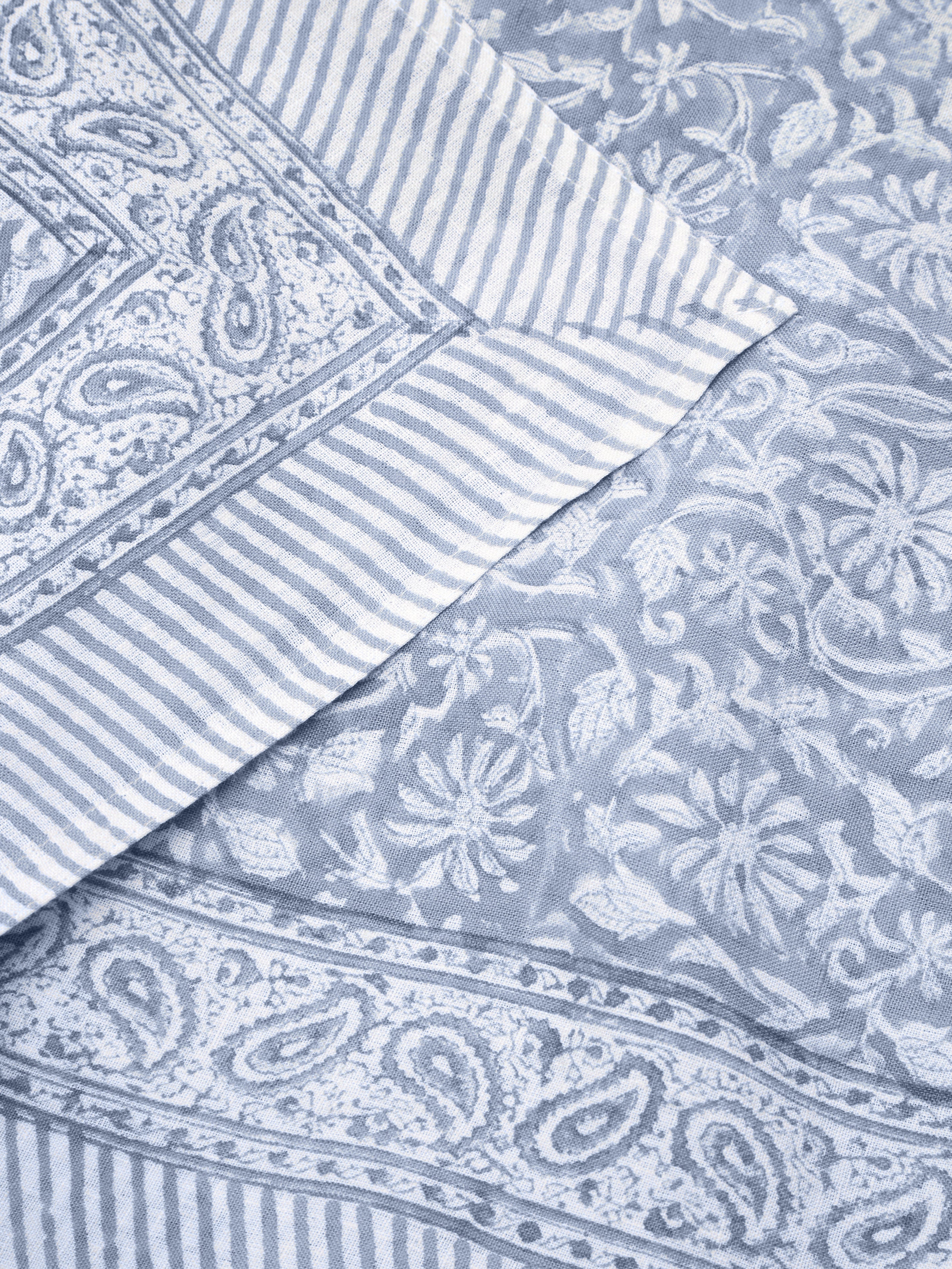 Chamois Margerita Block-Printed Linen Rectangular Tablecloth (138in/3.5m)