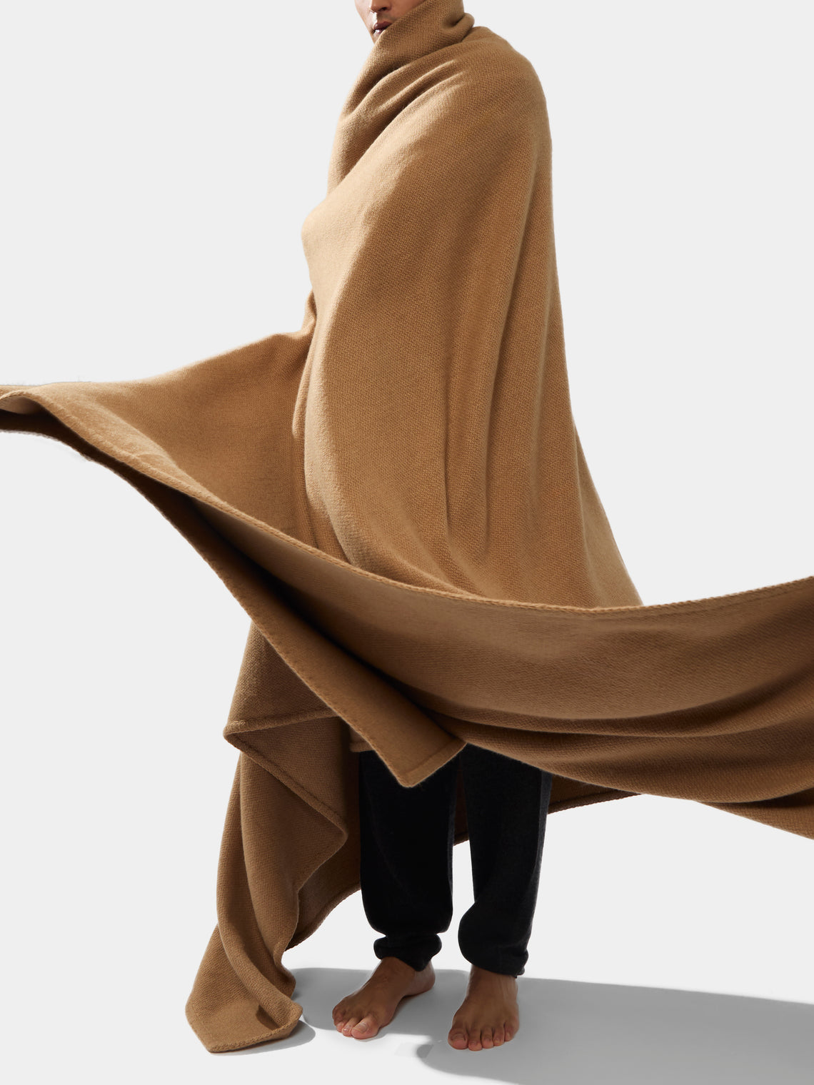 Denis Colomb Gobi Stitched-Edge Camel Wool King-Size Blanket (110in/2.8m)