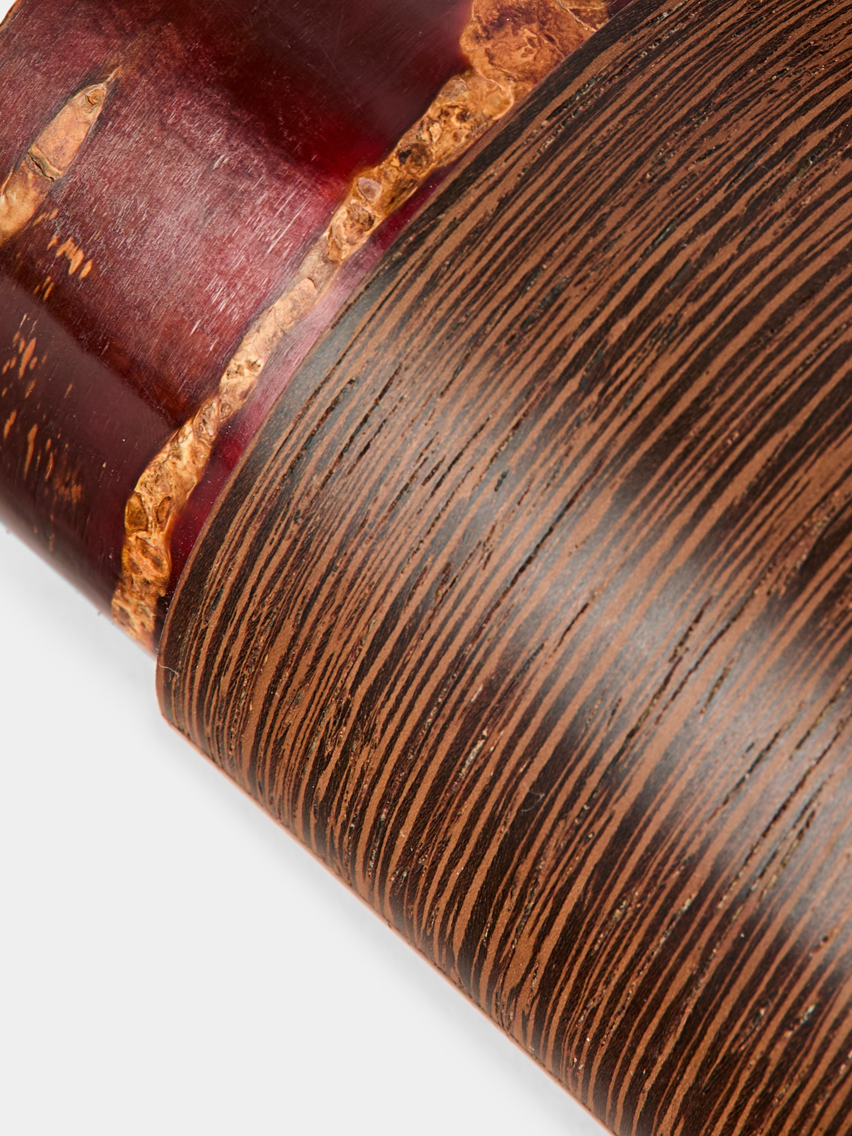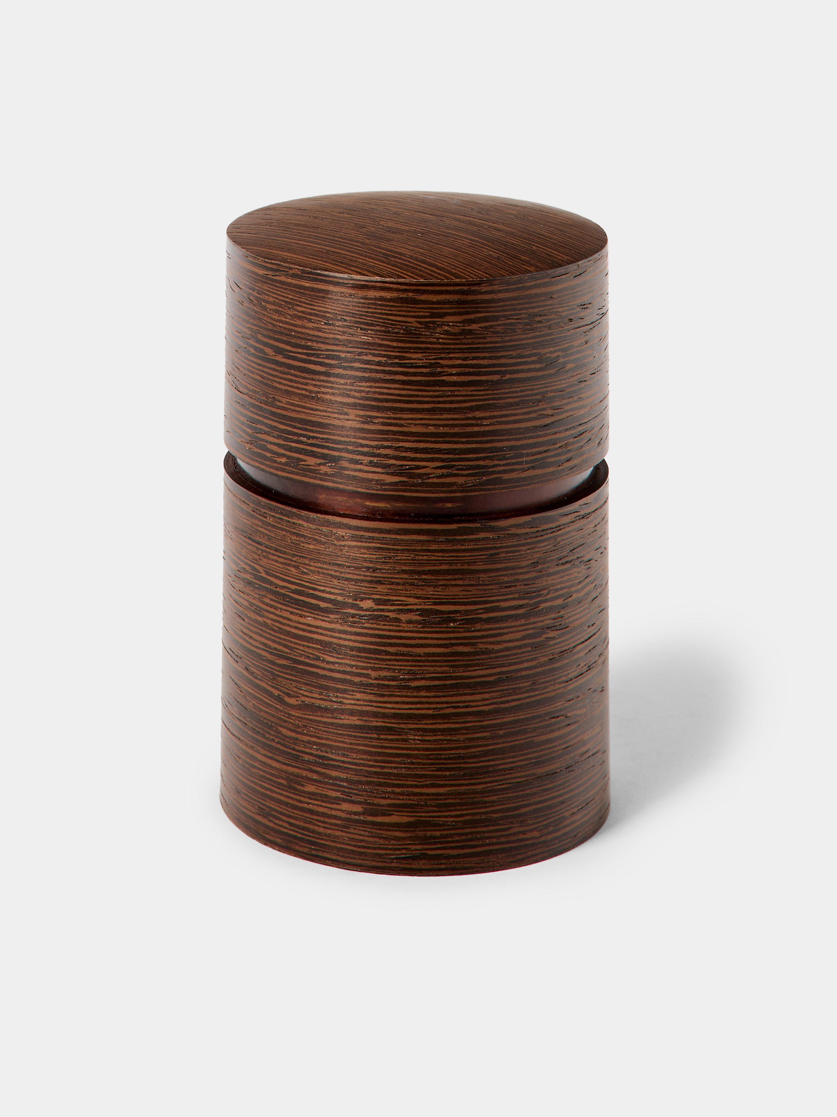 Teaware is at the heart of Denshiro’s craft—but not just any teaware. The Signature tea canister, designed by Kaichiro Yamada, is made from wild cherry bark sourced from Kakunodate, the brand’s historic hometown. Here, the wood features a fluid, ribbon-like pattern that's sealed with a beeswax-infused lacquer. Inside, a clever detail awaits: the lid, deliberately knob-free, is shaped to double as a tea scoop.
