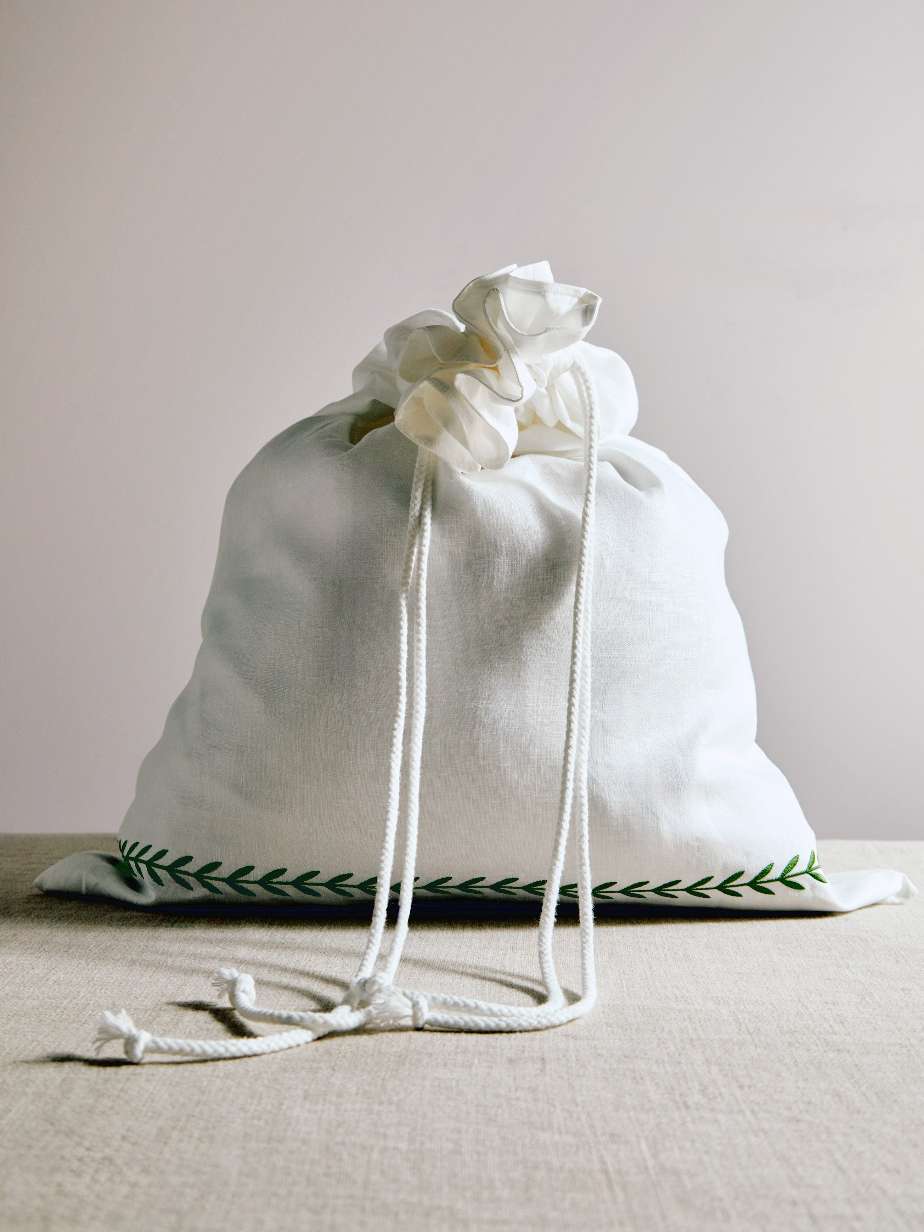 Heirlooms Laurel Leaf Embroidered Linen Laundry Bag