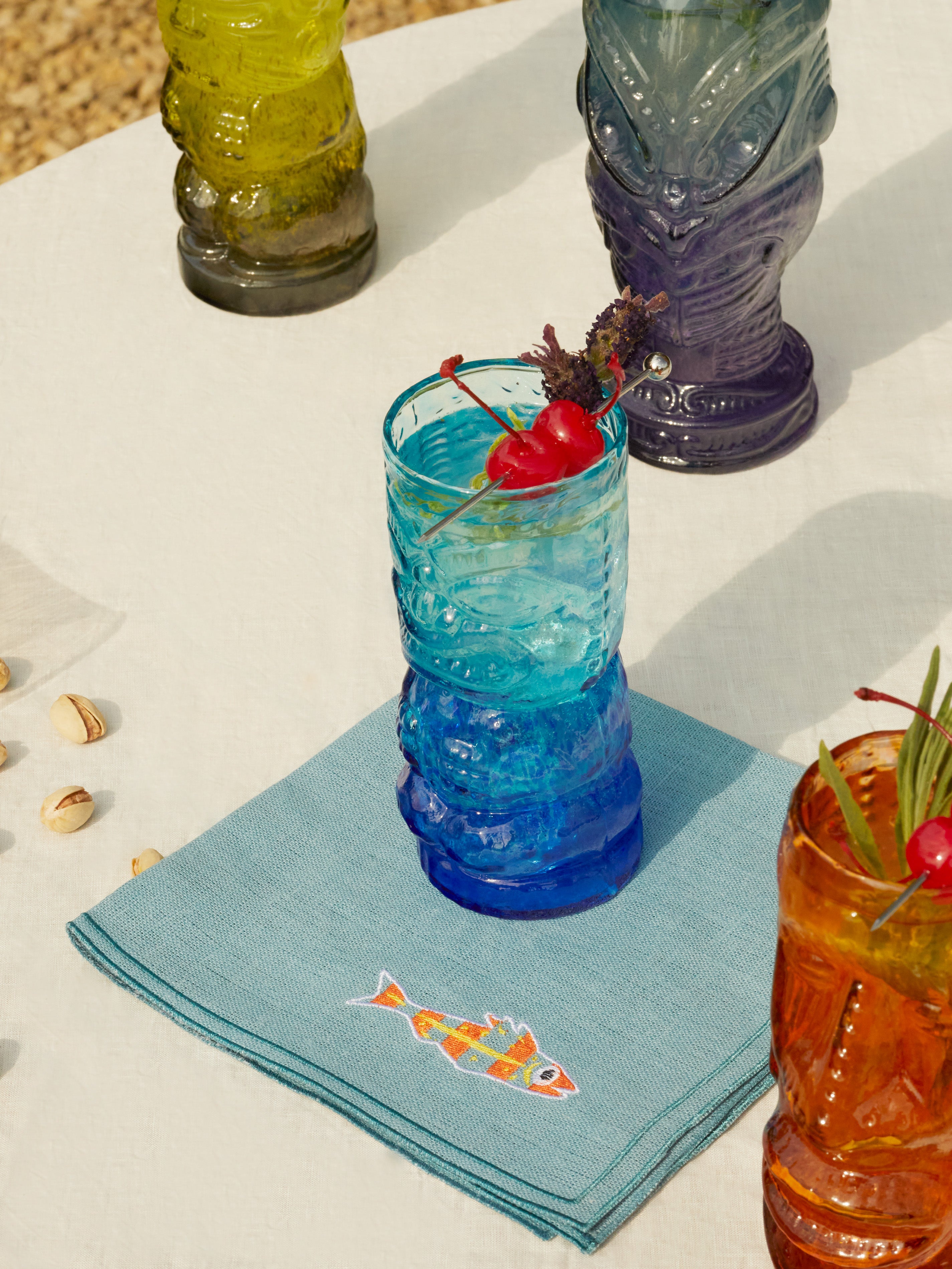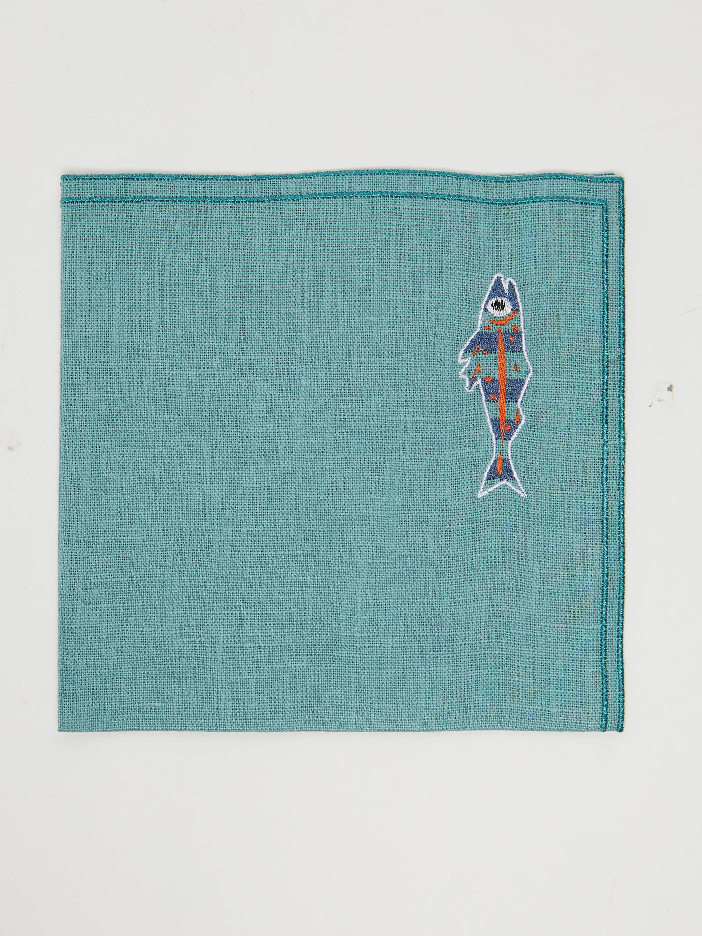 La Gallina Matta Sardines Embroidered Linen Napkins (Set of 4)