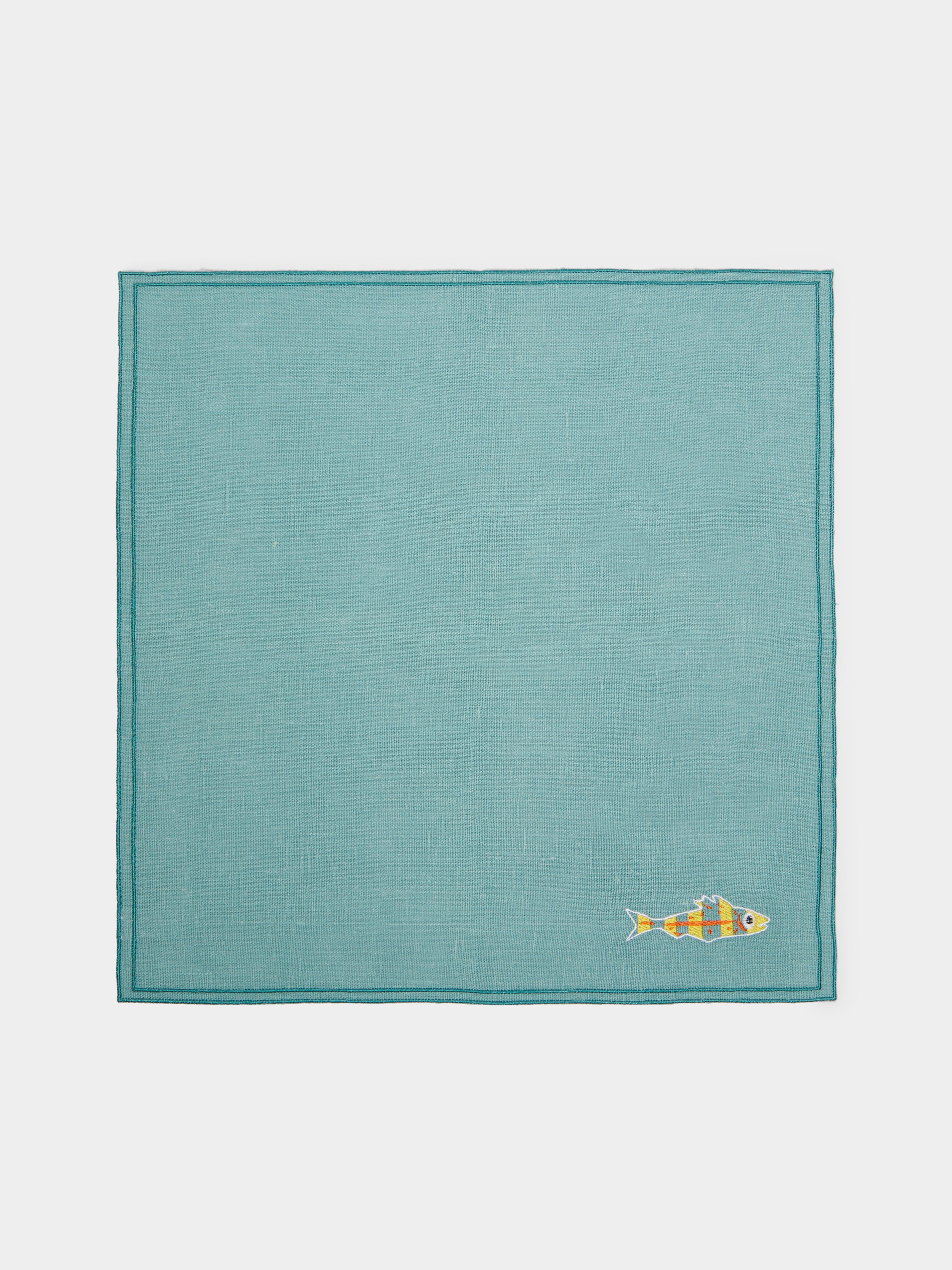 Sardines Embroidered Linen Napkins (Set of 4)43cm (l) x 43cm (w) / 16.8" (l) x 16.8" (w)