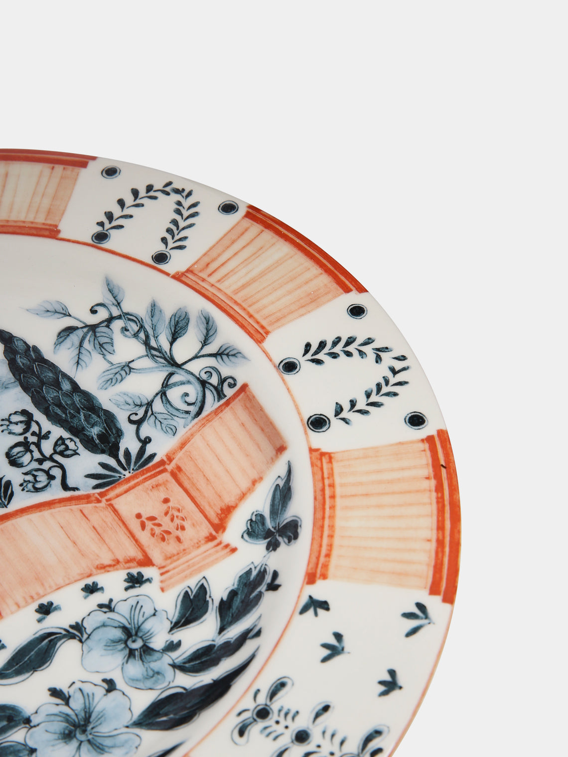Costanza Paravicini calls her Milan workshop a "wunderkammer" – a gallery of curiosities for connoisseurs of fine hand-painted design. Her ceramic plates are like storybooks with the designs, by her daughters Benedetta and Margherita, hand-painted or silk-screened to depict fantastical scenes of snakes, monkeys and hot air-balloons.