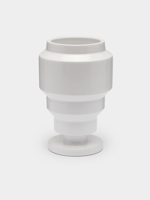 While growing up in 1930s Heimberg, Switzerland, Margrit Linck learned the craft of ceramics and developed a vision for unfussy pieces that could bridge both past and present. Later, stints in Berlin and Paris saw her rub shoulders with the doyens of the young, European art set, like Picasso, Giacometti and Braque, and helped her refine her aesthetic. An obsession with form as the pinnacle of purity led Margrit to eventually create only in white – no colour to distract from the clay’s sharp lines and curvatures. Margrit’s daughter-in-law continued her work after her death, and today, Linck Keramik is in its third generation under Annet Berger – the studio still in the original Bern location and accessories like vases and tableware still formed using a traditional wheel.