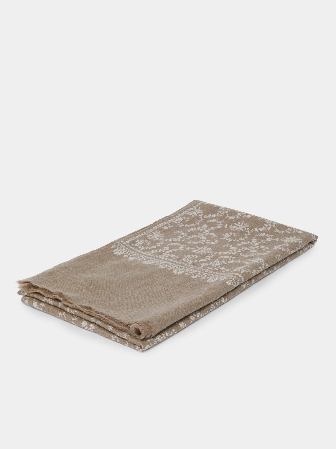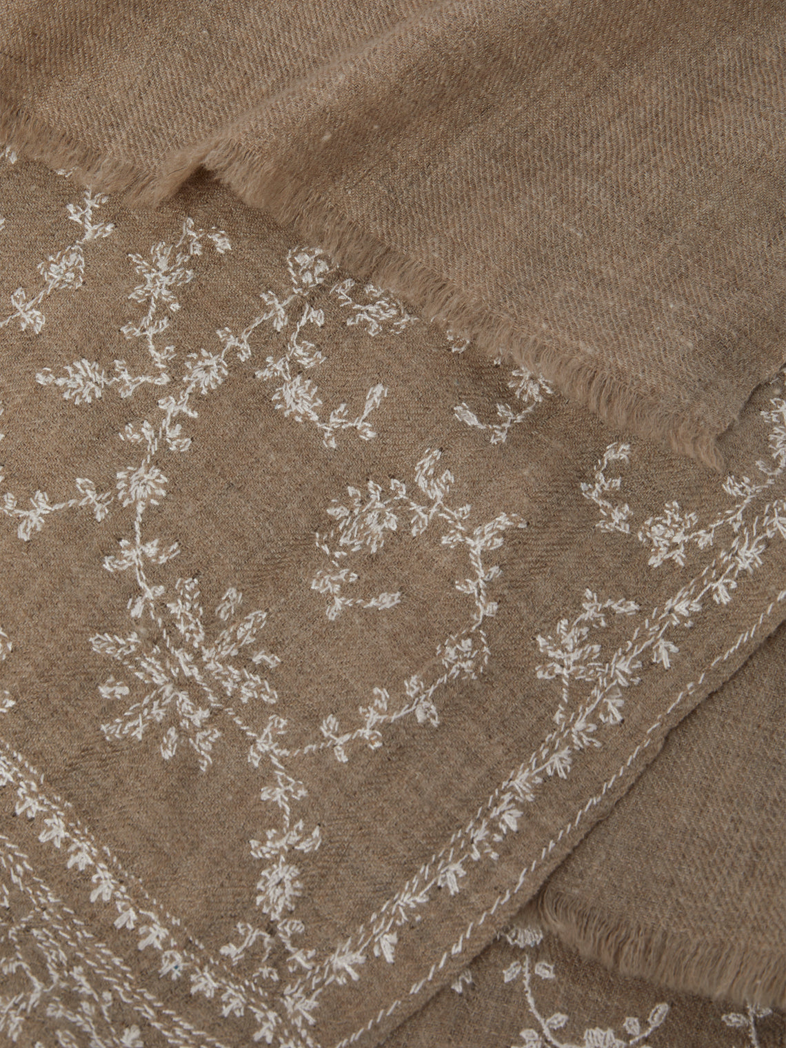 Cousins Mujtaba Kadri and Rauf Shaw established Me & K in 2008 to highlight the ancient art of Kashmir shawl-making. Their shared love of pashmina has been woven into their family dynamic for as long as they can remember, as four generations before them spent their lives dedicated to buying, selling and making. Scarves and shawls are their speciality, made using quality cashmere from goats in the Changthang region of the Himalayas – the intense cold here causes a thick undercoat that can be harvested to produce cashmere of the finest grade. Traditional techniques enrich each craft tale, such as spinning, weaving and embroidering, which are passed down through generations and carried out entirely by hand.