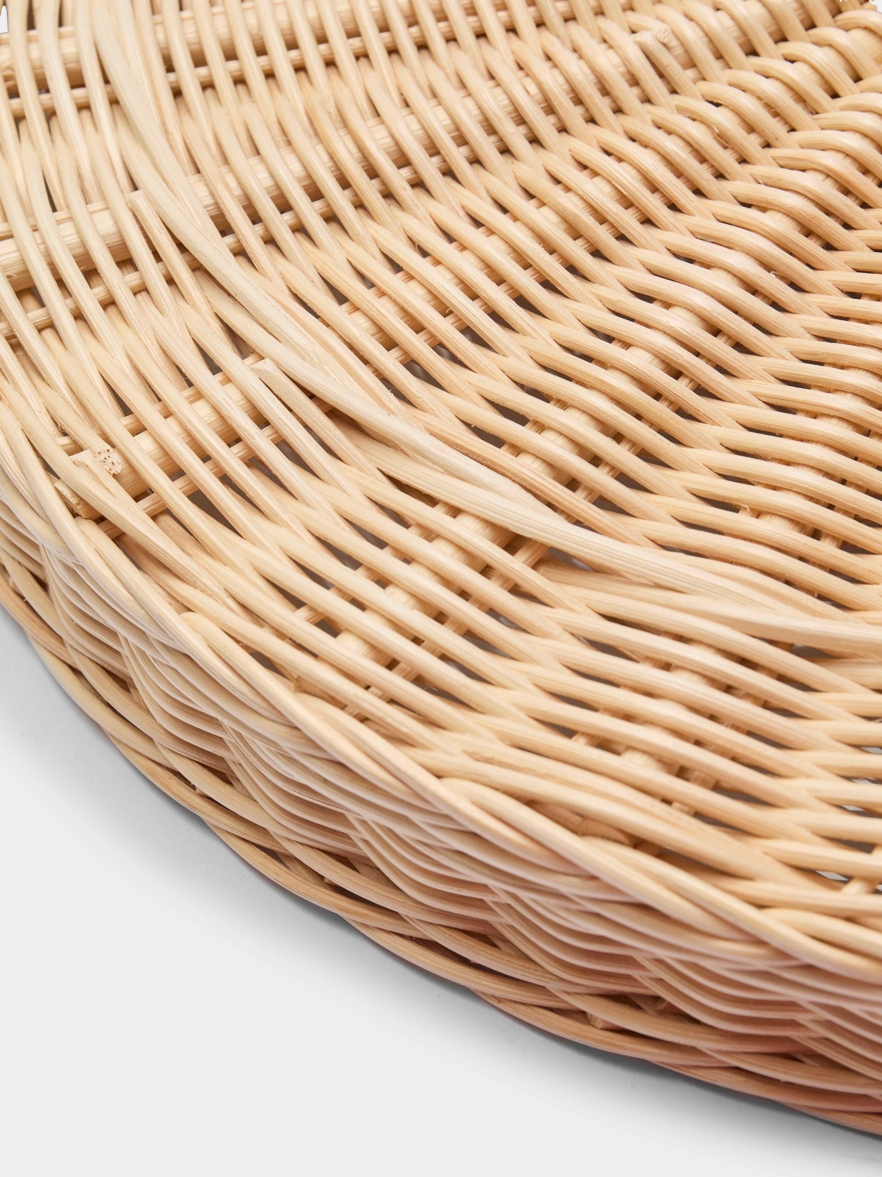 Mila Maurizi’s creations for the table are inspired by mise-en-place. They’re handwoven by skilled artisans in Mogliano, whose stories and expertise are felt in each intricate weft. The Peonia tray is made from wicker and removable, oven-proof glass, and its natural look is preserved thanks to a special water-based finish. Its versatile, hosting-friendly design transitions from kitchen counter to dining table with ease.