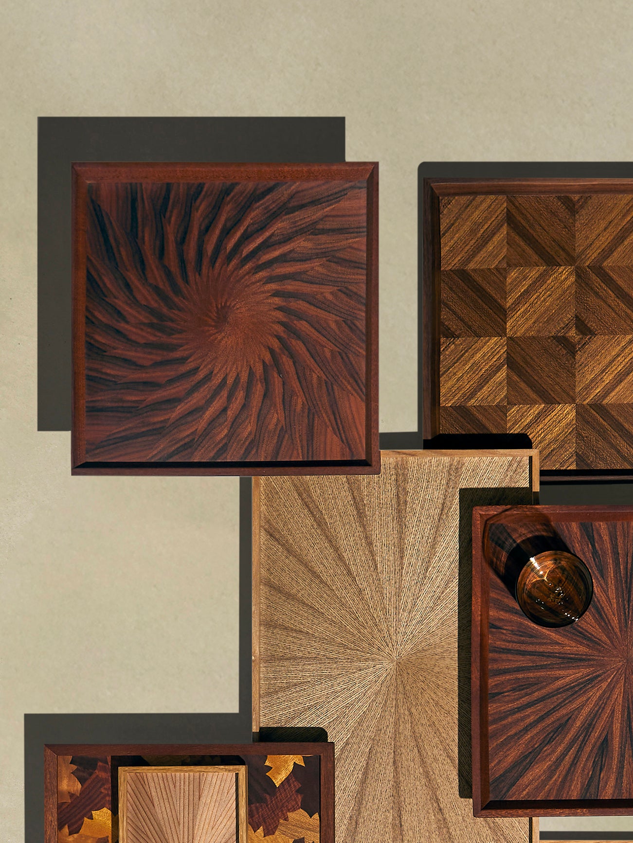 Since 1953, Tokushima-based Mori Kougei has been specialising in tsuki-ita, a highly complex technique in which paper-thin sheets of wood are sliced with sharp blades before being bonded together to form intricate surface patterns. This meticulous process has been refined and passed through the generations for more than 70 years. The result is a selection of functional trays highlighting the grain, colour and character of different wood species. Expect meticulously indigo-dyed pieces – a treasured Tokushima art – and subtle, contemporary scenes inspired by art, geometry and nature.