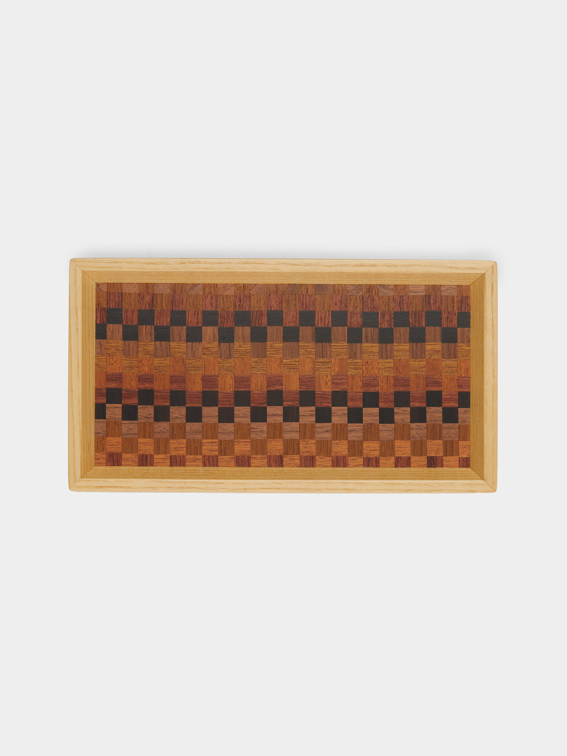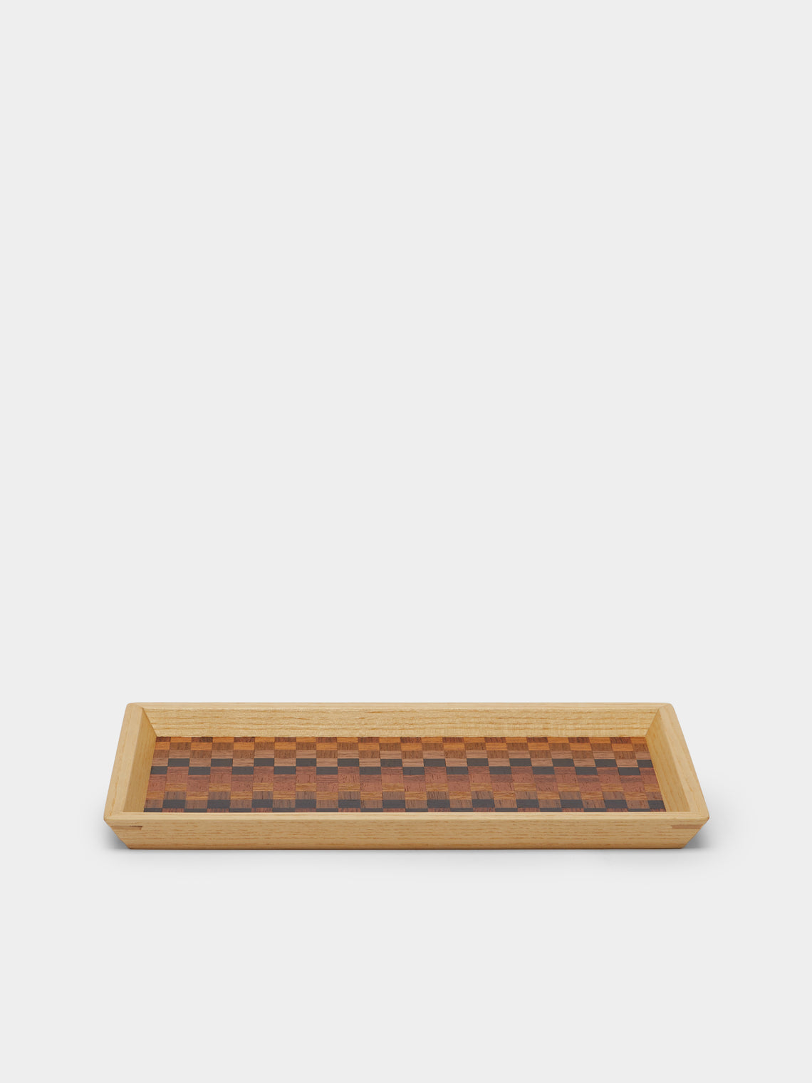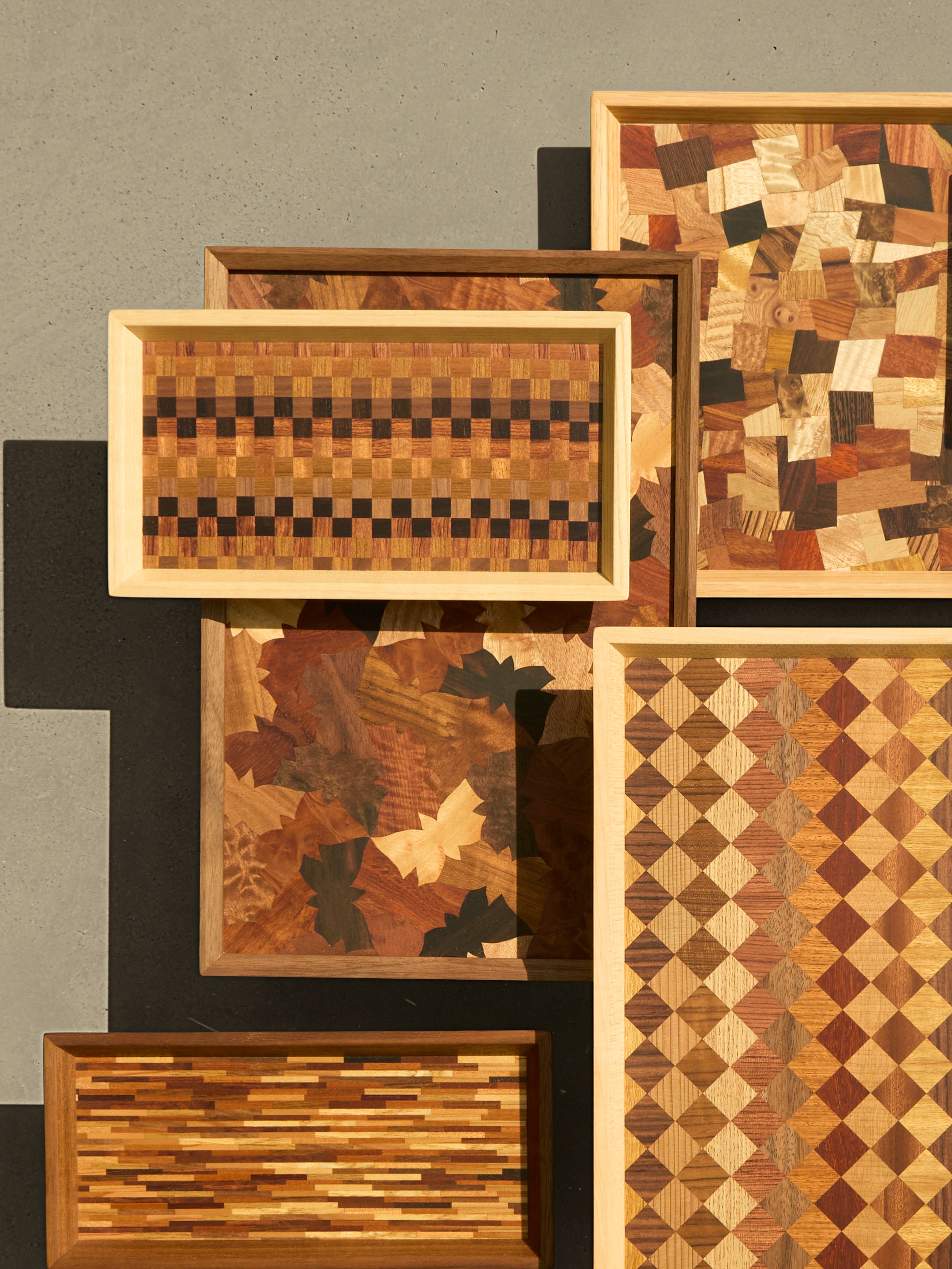 Since 1953, Tokushima-based Mori Kougei has been specialising in tsuki-ita, a highly complex technique in which paper-thin sheets of wood are sliced with sharp blades before being bonded together to form intricate surface patterns. This meticulous process has been refined and passed through the generations for more than 70 years. The result is a selection of functional trays highlighting the grain, colour and character of different wood species. Expect meticulously indigo-dyed pieces – a treasured Tokushima art – and subtle, contemporary scenes inspired by art, geometry and nature.